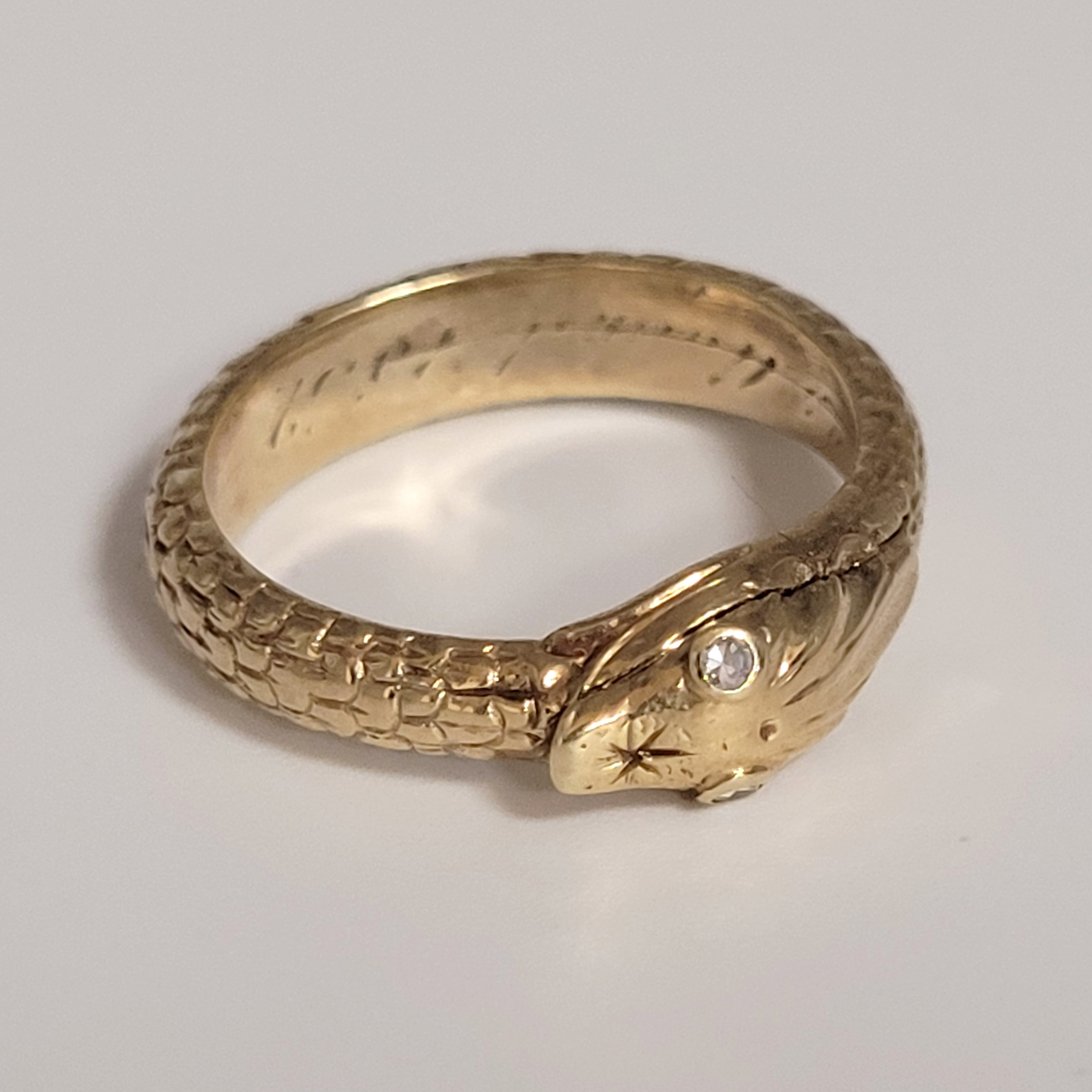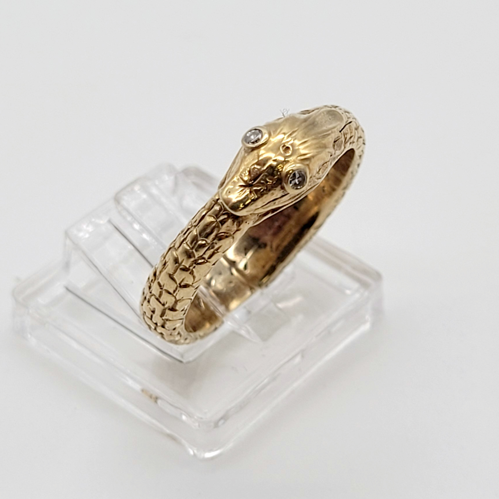 Ring in Form einer Schlange585er Gelbgold, Schiene aufklappbar, 2 kleine Diamanten, Ringgröße 55, Gewicht 6g