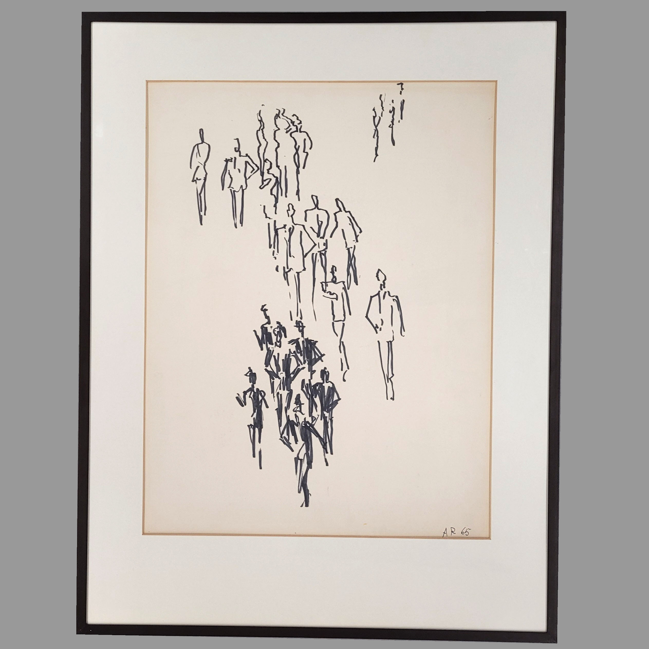 RÄDERSCHEIDT, Anton (1892-1970): FigurenTuschpinsel auf Papier, monogrammiert und datiert (19)65 in Bleistift, 62,5 x 48 cm, gerahmt unter Glas und Passepartout**) 2% für VG Bild wird gemäß §26 UrHG auf den Zugschlagpreis erhoben