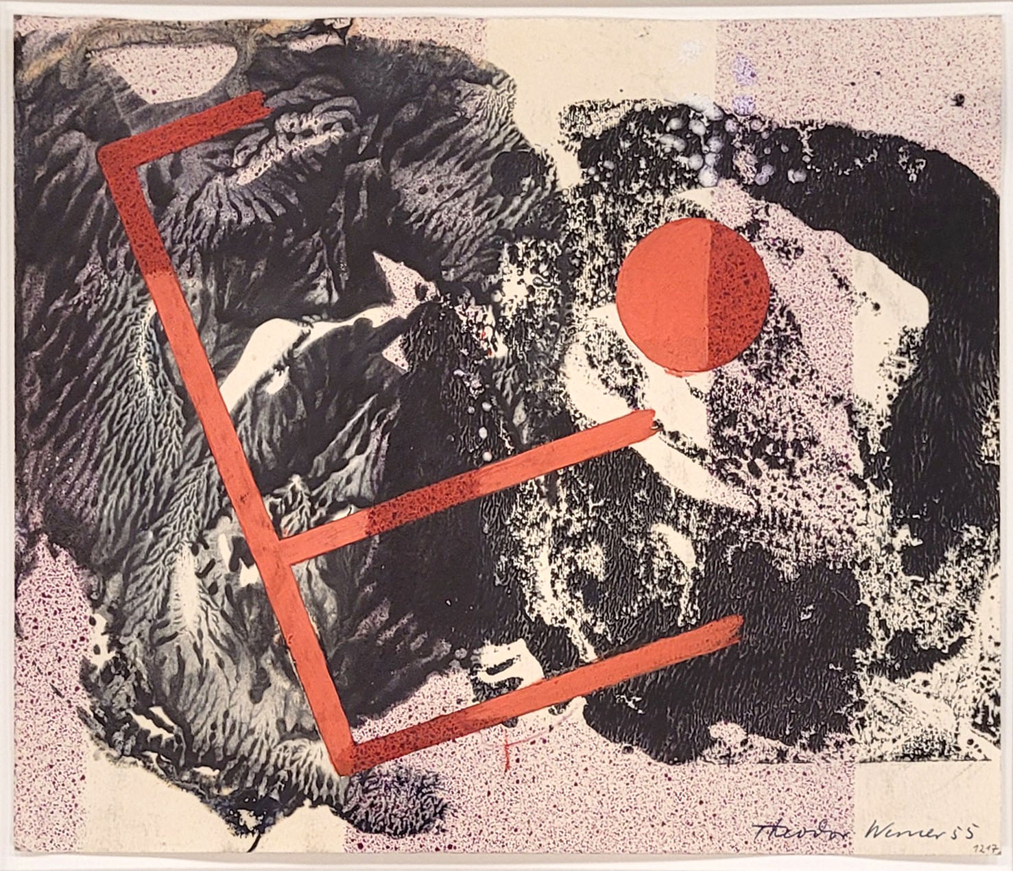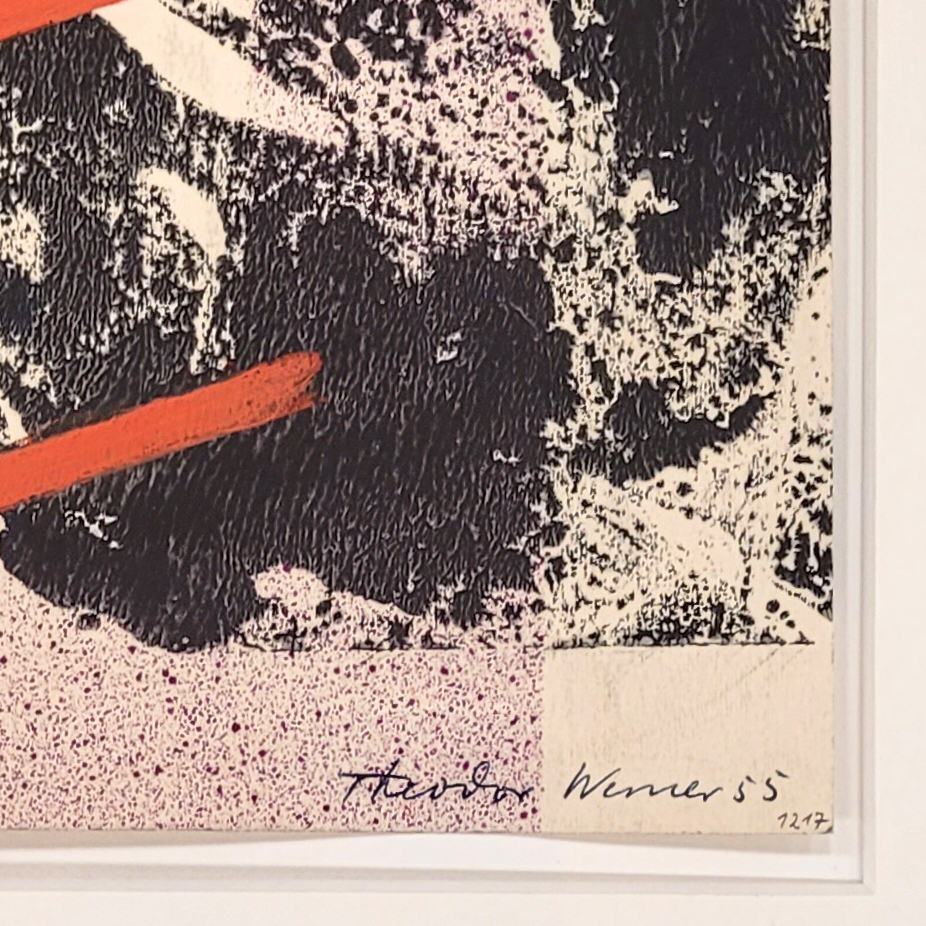 WERNER, Theodor (1886-1969): KompositionÖl/Gouache auf Papier, signiert und datiert (19)55 unten rechts, WZ-Nummer 1217 unten rechts, 21,5 x 25,5 cm, gerahmt unter Glas und Passepartout
