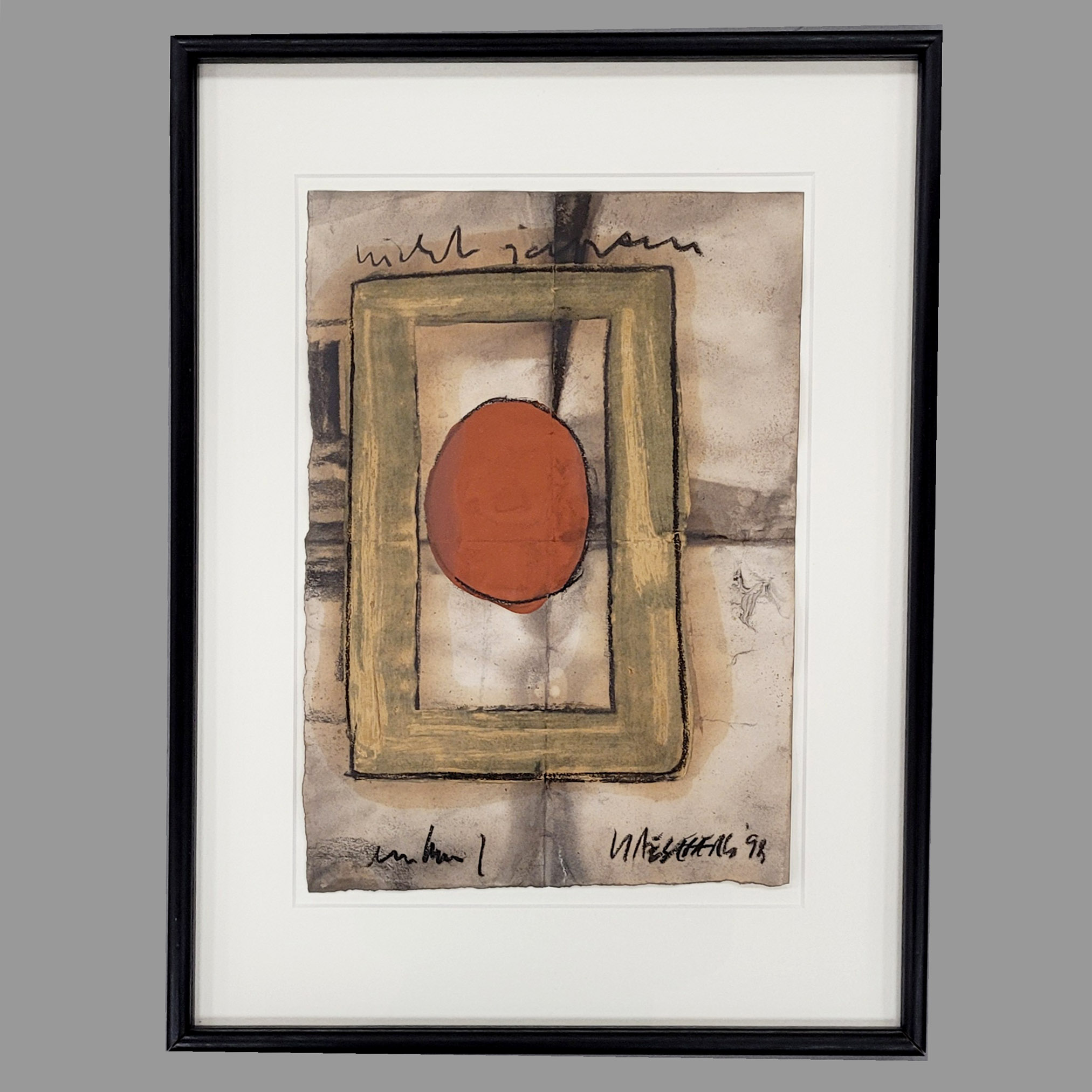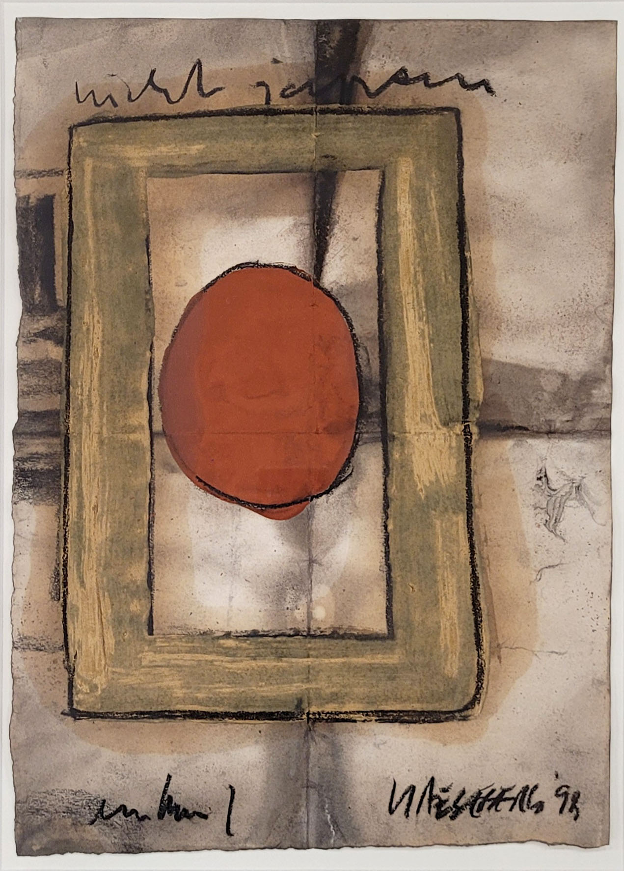 Mischtechnik auf Papier, signiert und datiert (19)98 unten rechts, betitelt oben, bezeichnet „unten“ unten links, 50 x 35 cm, gerahmt unter Glas und Passepartout (erworben 1999 in der Dogenhaus Galerie, Leipzig)