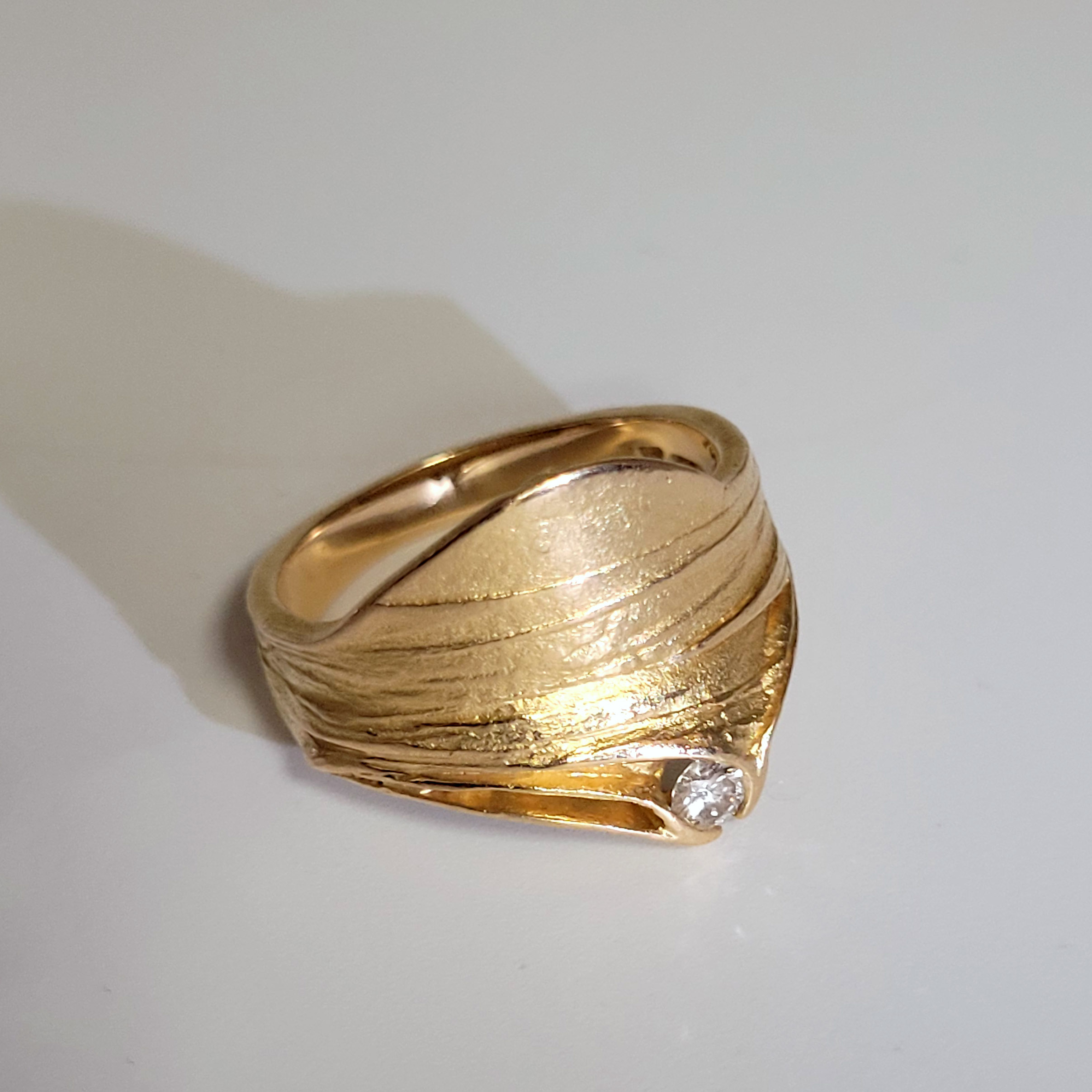 Damenring750er Gelbgold, Brillant (ca. 0,13 ct F-G/vs), Becker & Reister, Ringgröße 57, Gewicht ca. 6g