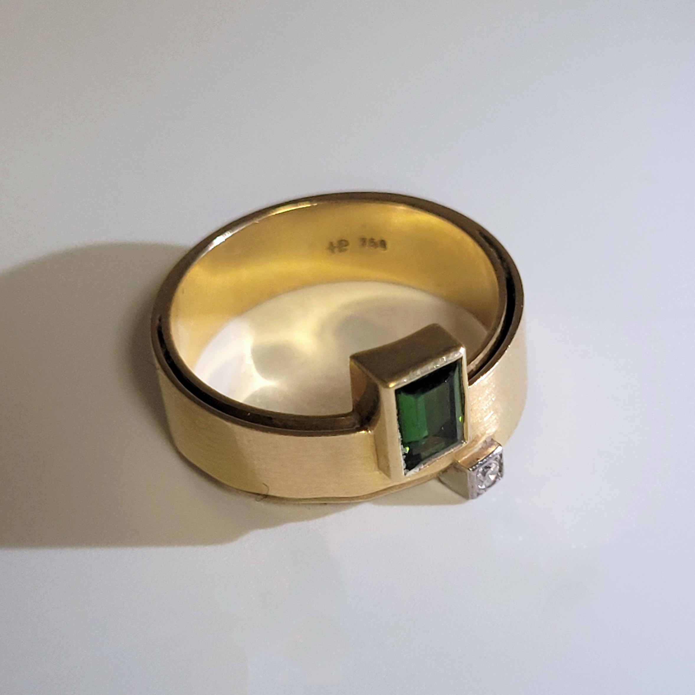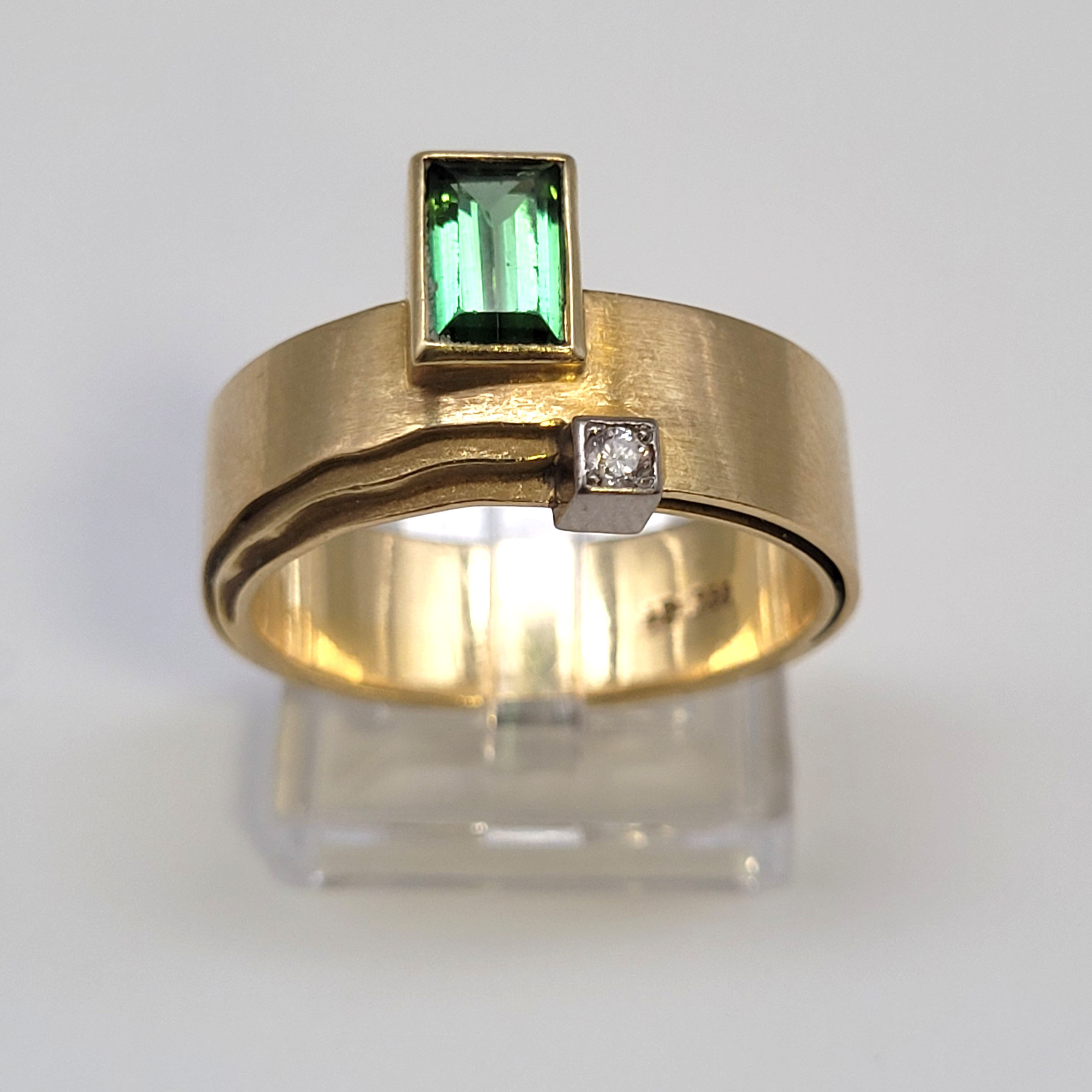 Damenring750er Gelbgold, Turmalin, Brillant (ca. 0,04 ct), Ringgröße 67, Gewicht ca. 12,5g