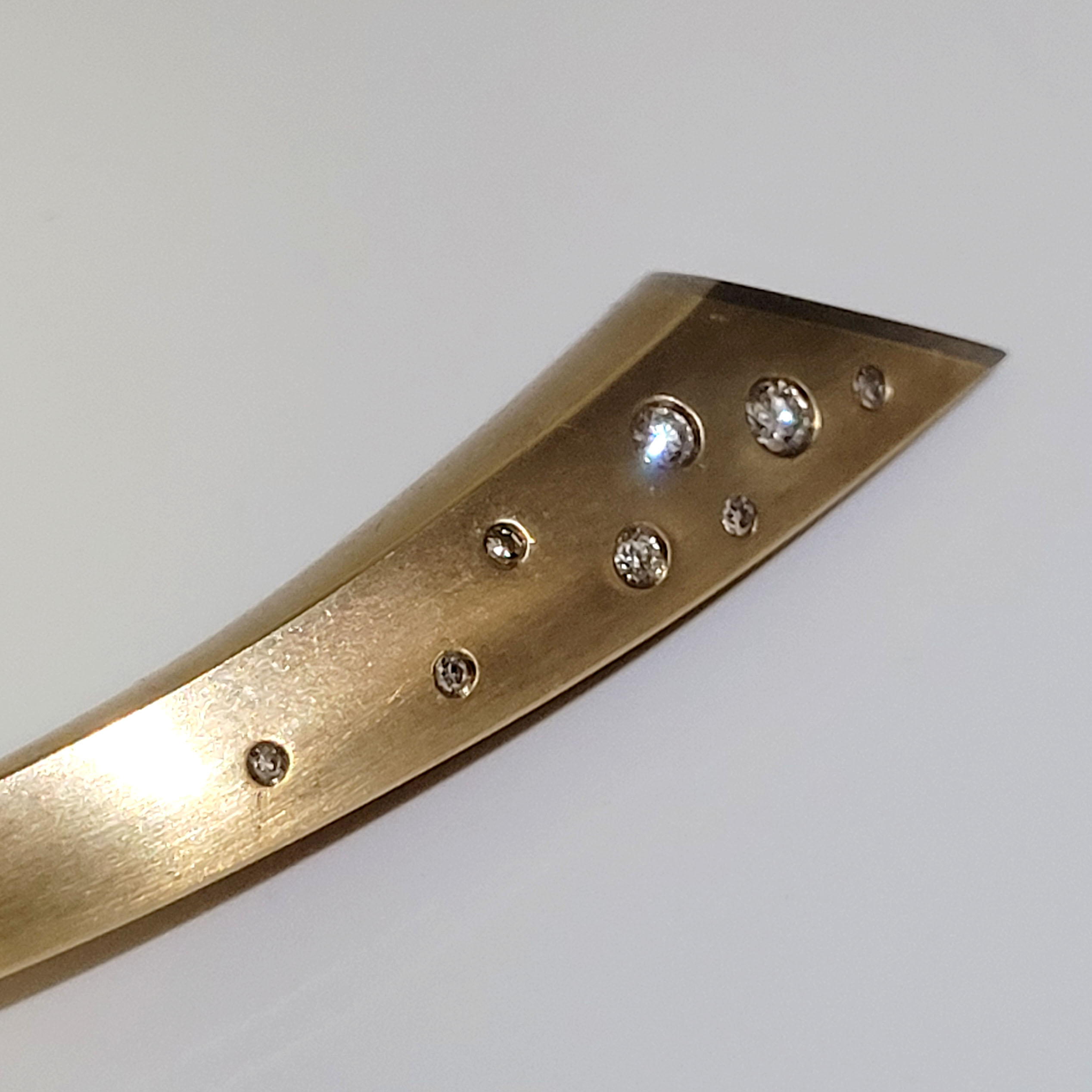 Brosche750er Gelbgold, vorderer Abschluss 950er Platin, 9 Brillanten (zusammen ca. 0,25 ct), Länge 11 cm, Gewicht ca. 13,5g
