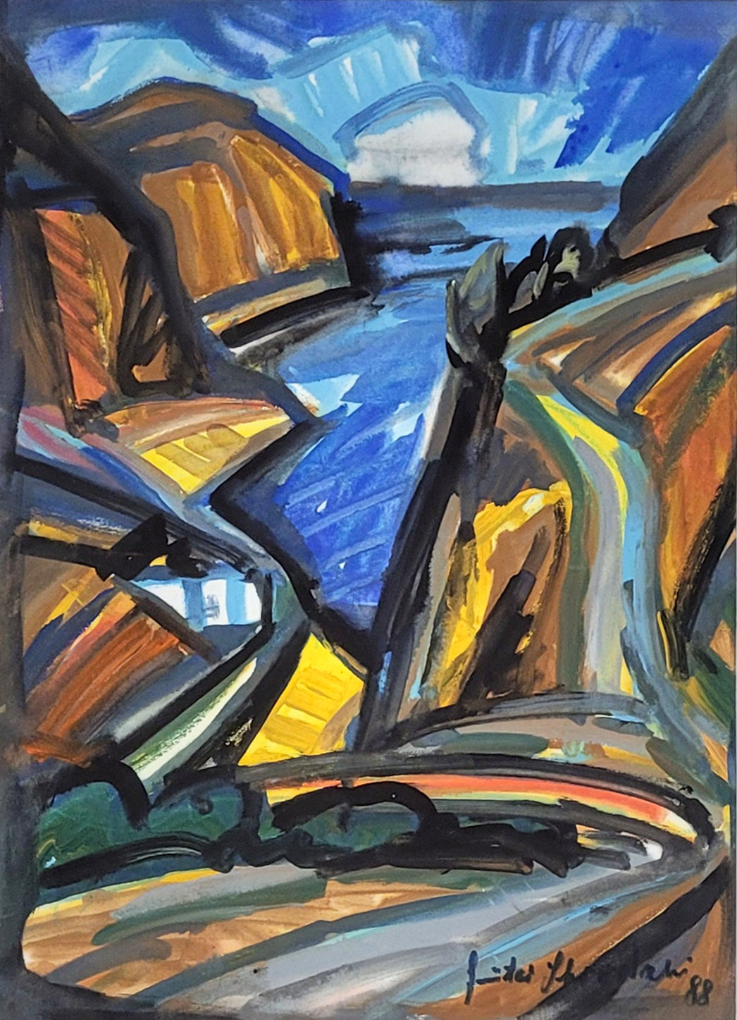 Aquarell auf Papier, signiert und datiert (19)88 unten rechts, 63,5 x 45 cm, gerahmt unter Glas und Passepartout
