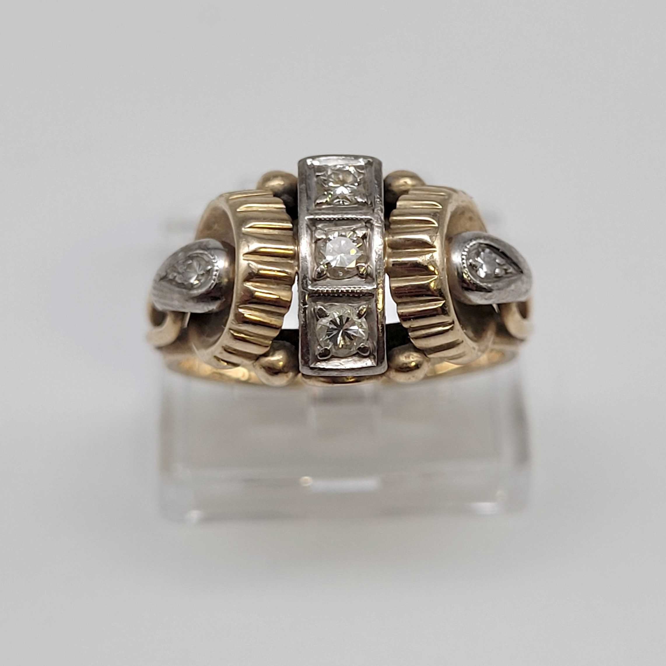 Damenring585er Gelb- und Weißgold, 5 kleine Diamanten, Ringgröße 53-54, Gewicht ca. 7g