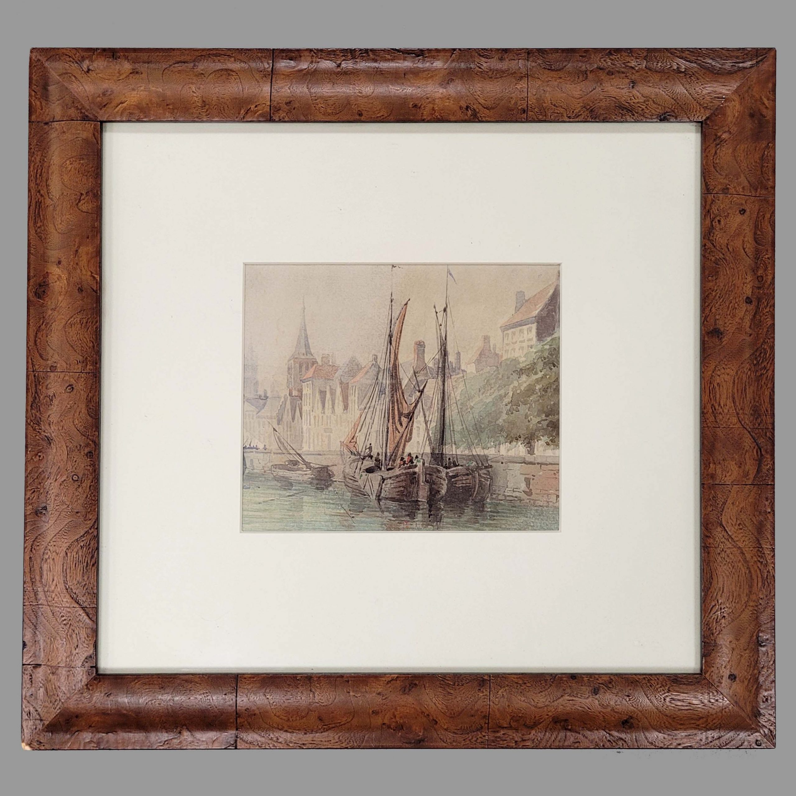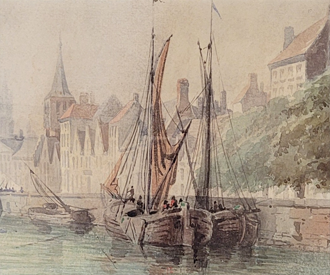 DEUTSCHER MEISTER (18. Jh.): Ansicht auf den Turm von St. KunibertAquarell auf Papier, 14 x 17 cm, gerahmt unter Glas und Passepartout