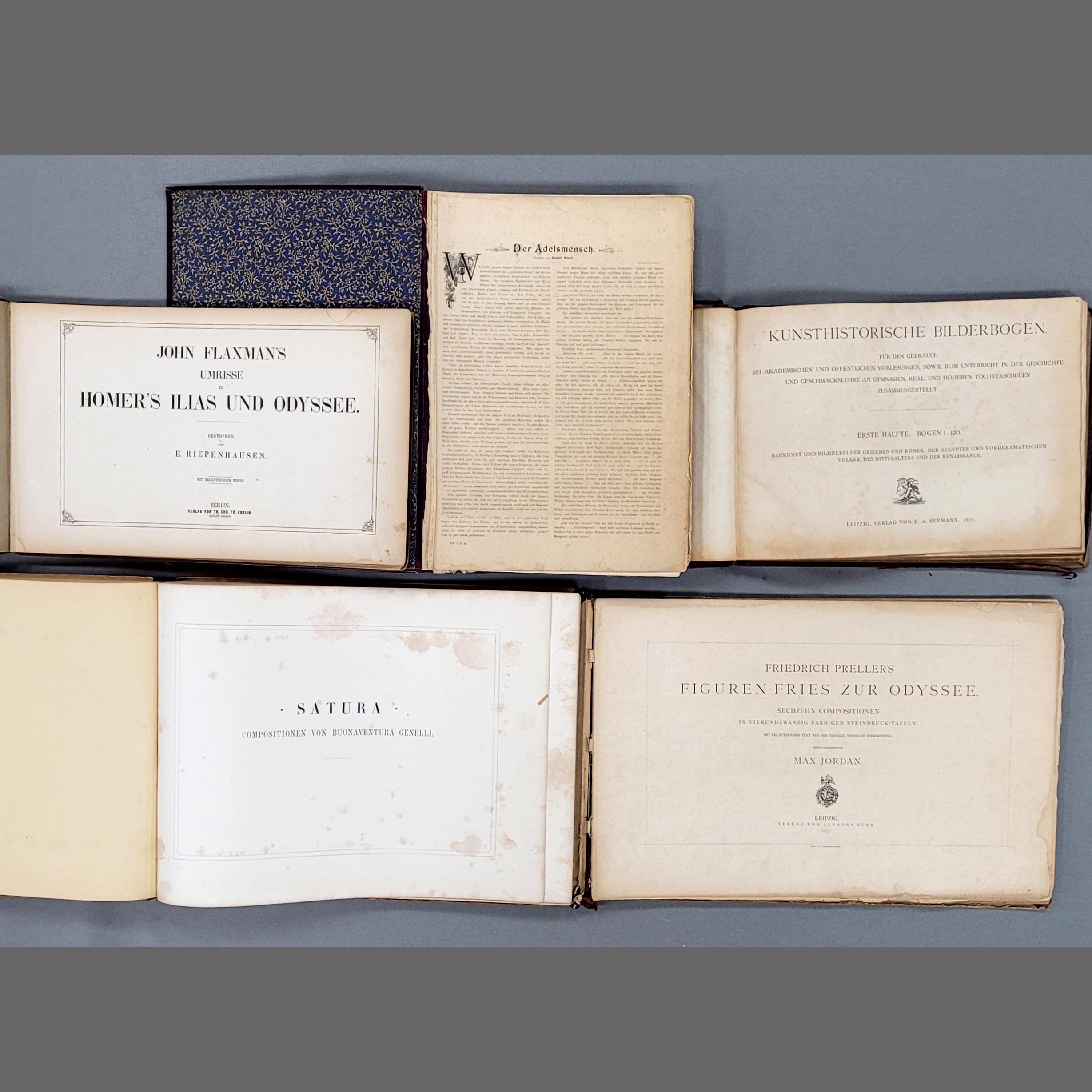 Leipzig (Alphons Dürr) 1875 JORDAN, Max, Satura – Compositionen von Bonaventura Genelli, Leipzig (Alphons Dürr) 1871 beigelegt RIEPENHAUSEN, E., John Flaxman’s Umrisse zu Homer’s Ilias und Odyssee, Berlin (Enslin) o. J. Kunsthistorischer Bilderbogen, Erste Hälfte, Bogen 1-120, Leipzig (Seemann) 1877 Moderne Kunst in Meister-Holzschnitten (ohne Titelblatt)
