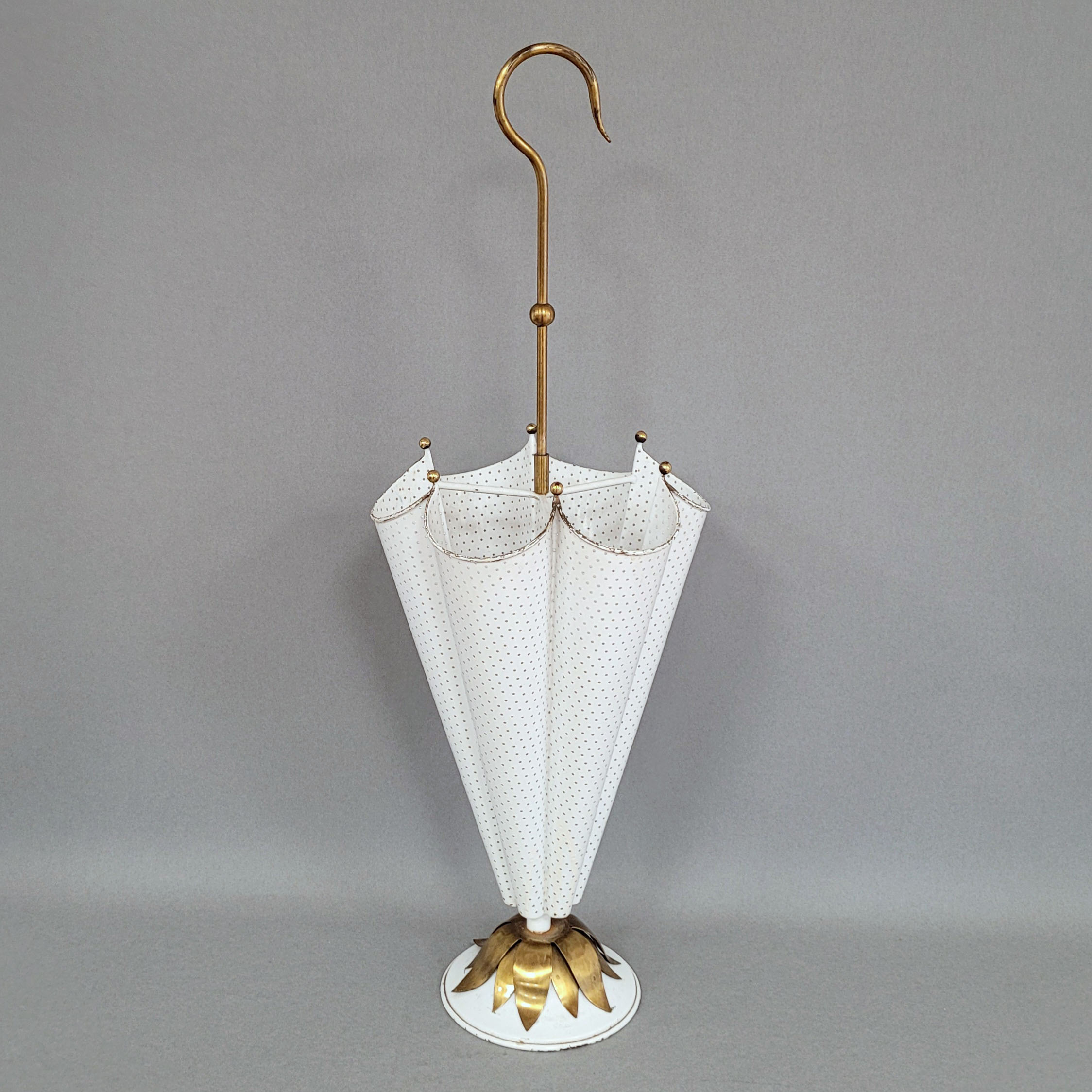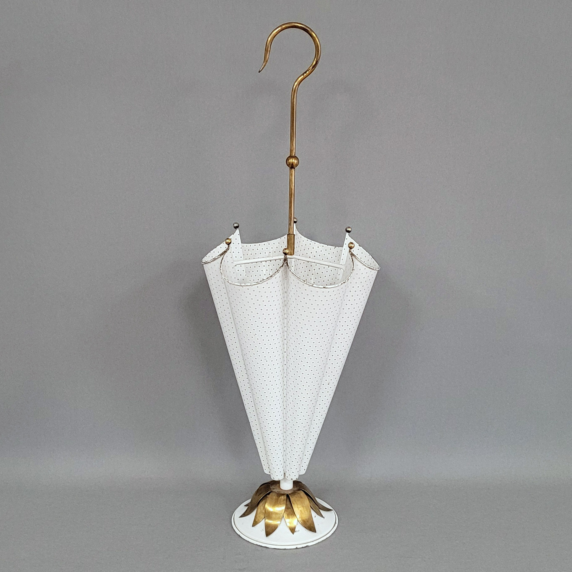 Messing, Messingblech, gelocht, weiß gefasst, partiell vergoldet, um 1950-60 im Stil von Mathieu Mategot, Höhe 79 cm