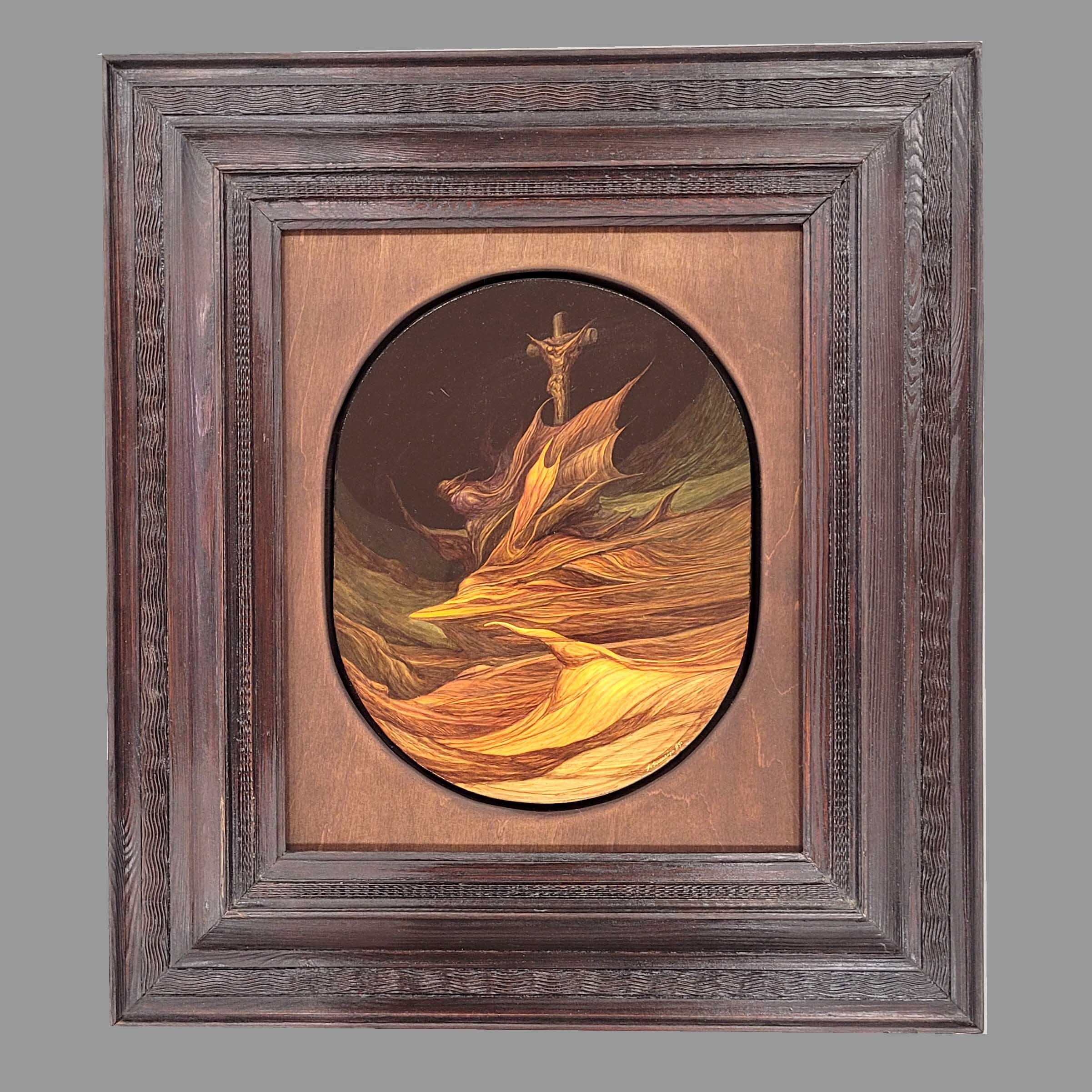 SUMIGA, Jan (1944-2005): Ohne TitelÖl auf Leinwand, auf Holz gezogen, signiert und datiert (19)85, 29 x 23 cm, Rahmen