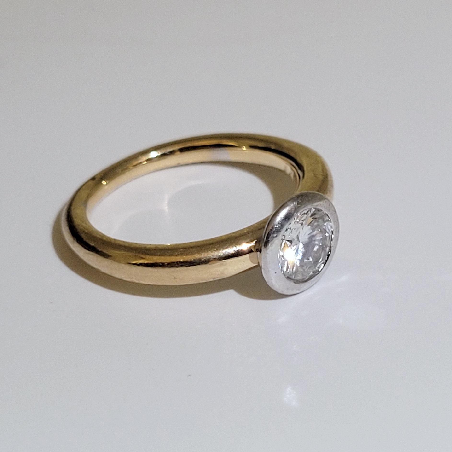 Damenring750er Gelb- und Weißgold, Brillant (ca. 0,50 ct), Richarz, Bonn, Ringgröße 52-53, Gewicht ca. 6g