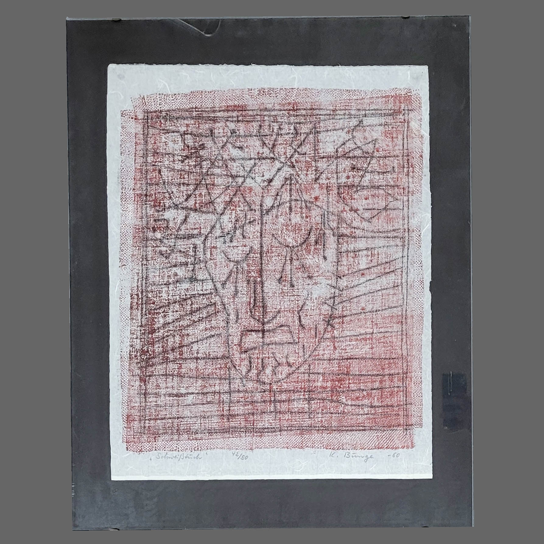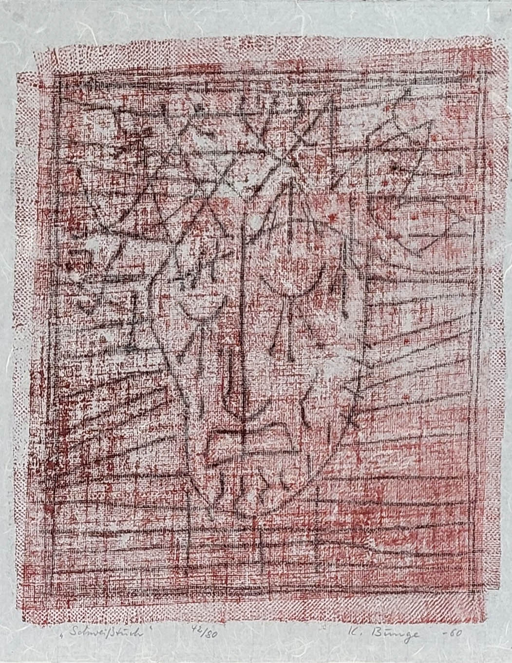 BUNGE, Kurt (1911-1998): SchweißtuchFarbholzschnitt auf Japanpapier, signiert und datiert (19)60 unten rechts, betitelt unten links, nummeriert 42/80 unten Mitte, 61,5 x 48 cm