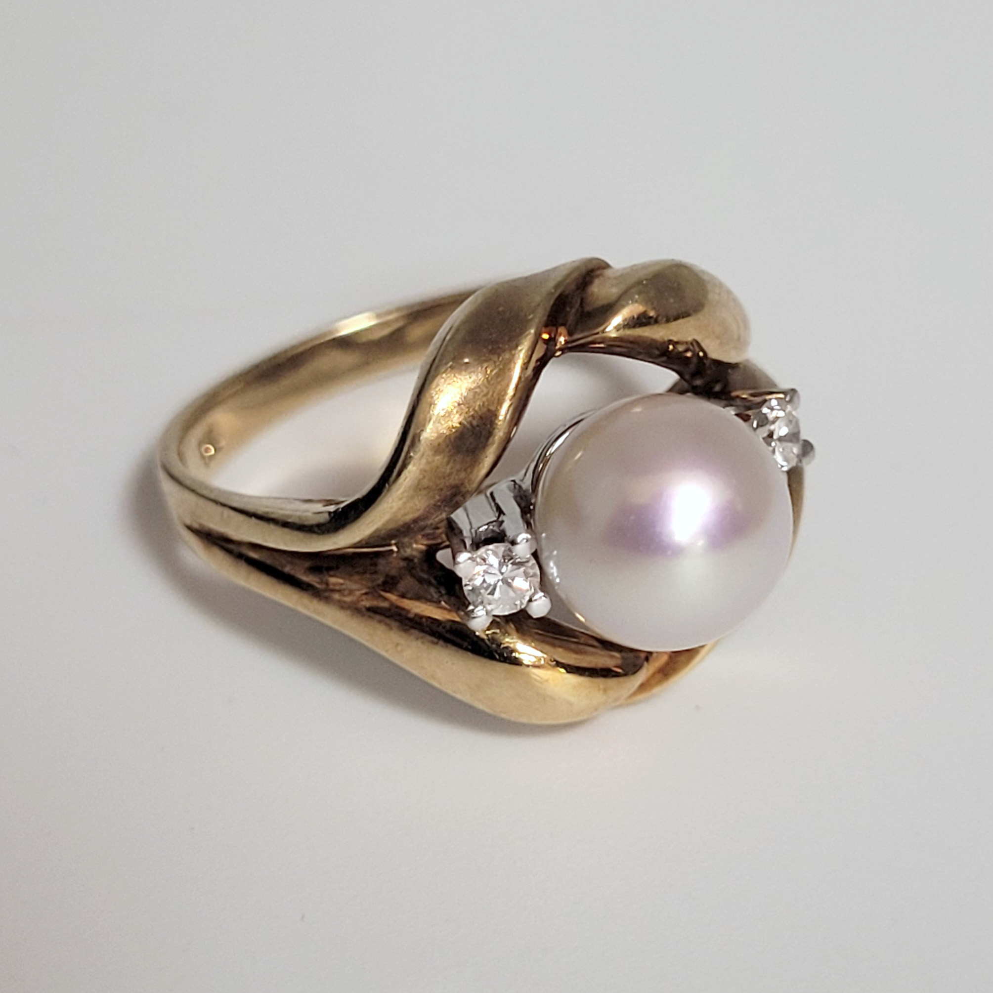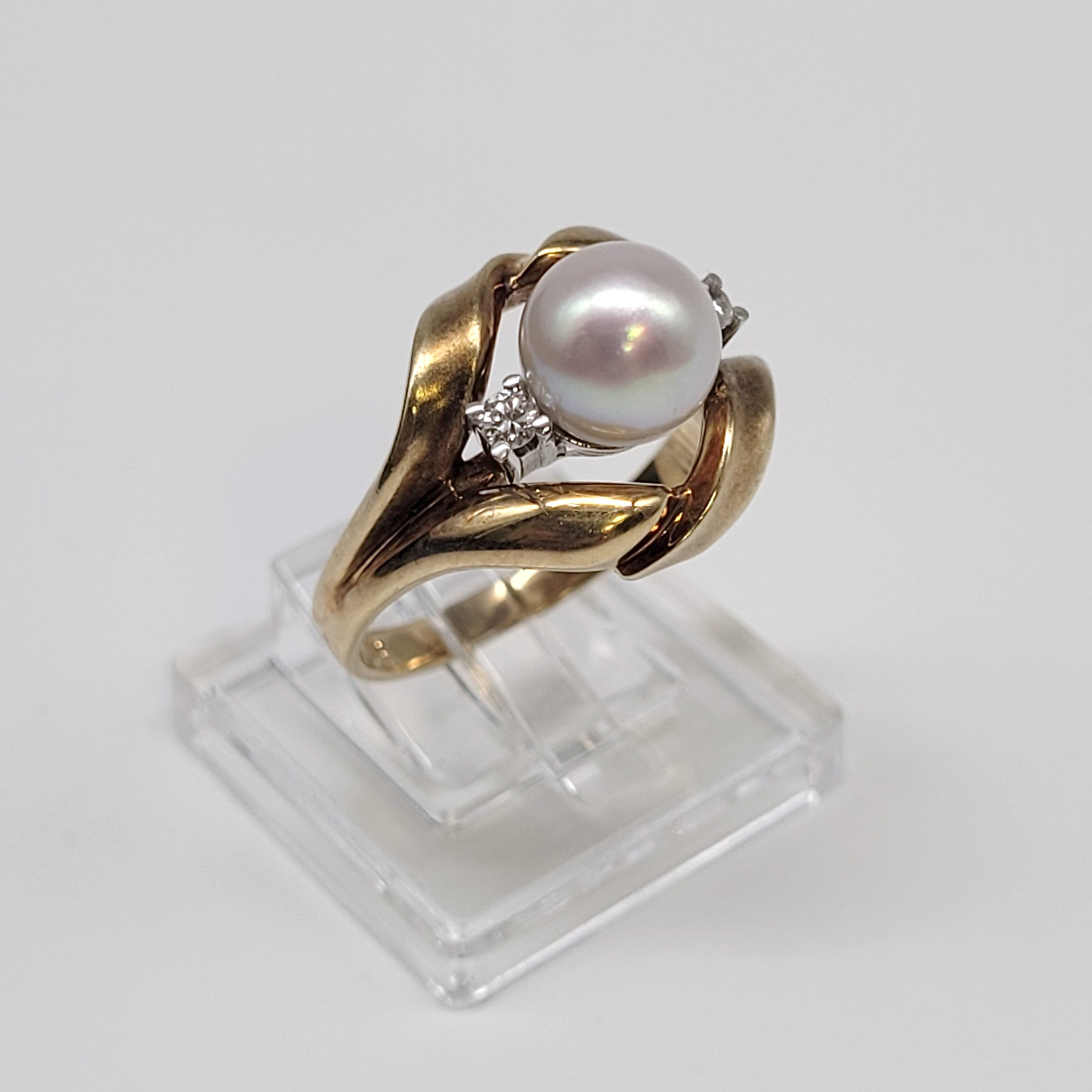 Damenring585er Gelbgold, 2 kleine Brillanten, Zuchtperle, Ringgröße 53, Gewicht ca. 5,5g