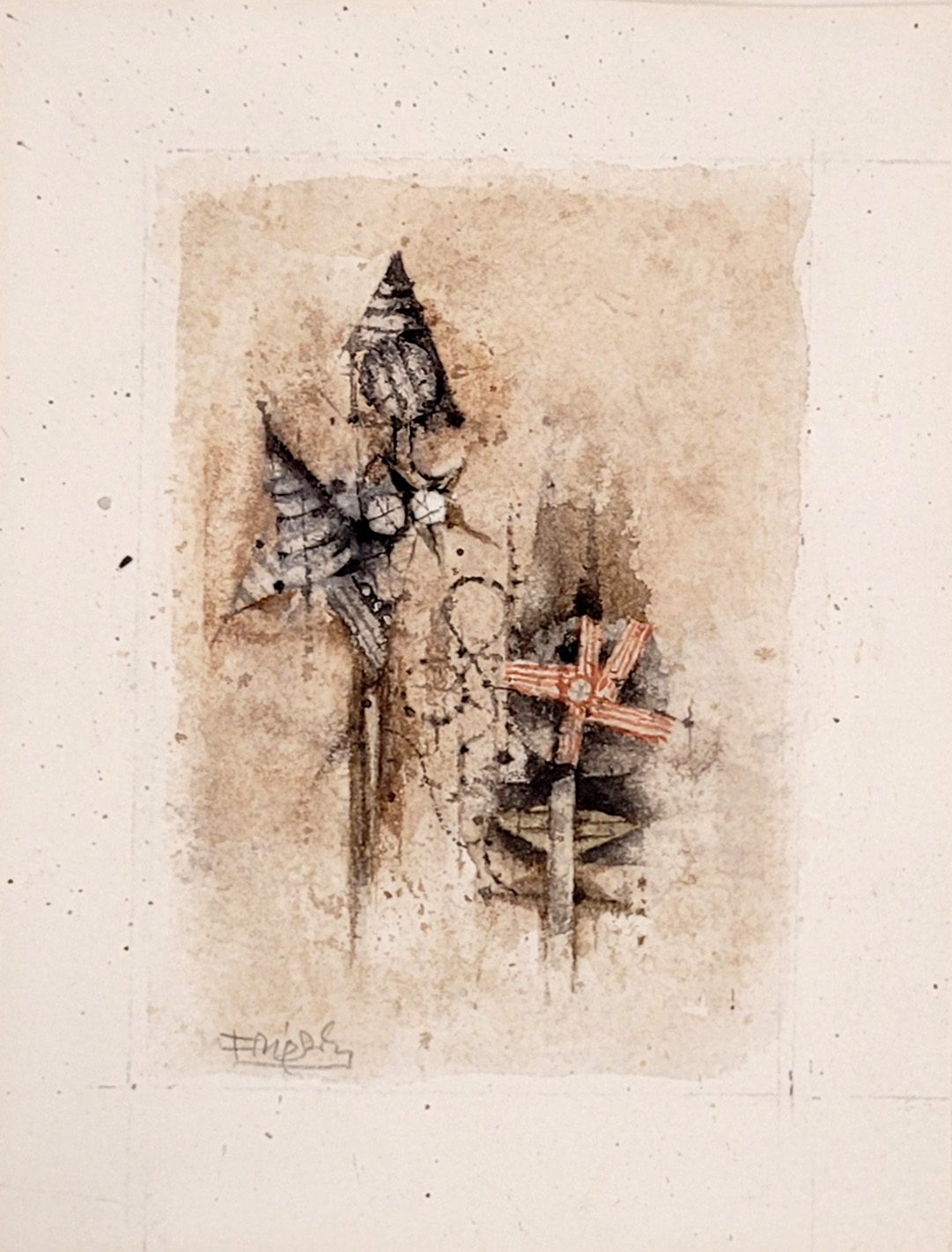 Aquarell auf Papier, signiert unten links, verso auf der Rahmenpappe datierte Widmung mit Signatur vom 4.10.1980, 18 x 13,5 cm, gerahmt unter Glas und Passepartout