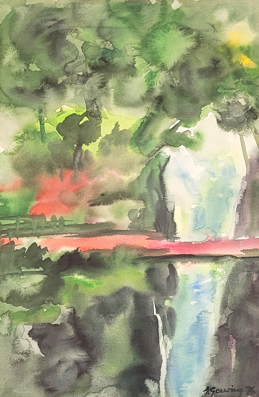 GOWING, Lawrence (1918-1991): LandschaftAquarell auf Papier, signiert und datiert (19)76 unten rechts, 53,5 x 34,5 cm, gerahmt unter Glas und Passepartout**) Bei einem Zuschlag über 400€ werden 2% für VG Bild gemäß §26 UrHG erhoben