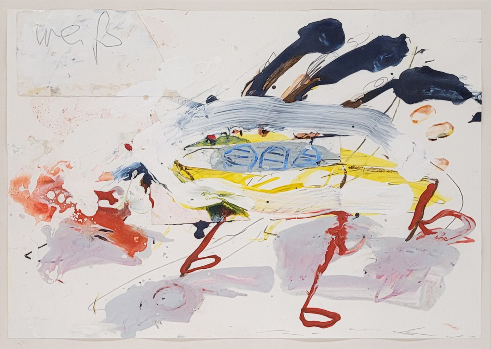 REIMNITZ-WOHRMANN, Susanne (*1961): weißMischtechnik mit Collage auf Papier, signiert unten rechts, 32,5 x 47 cm, gerahmt unter Glas und Passepartout**) Bei einem Zuschlag über 400€ werden 2% für VG Bild gemäß §26 UrHG erhoben