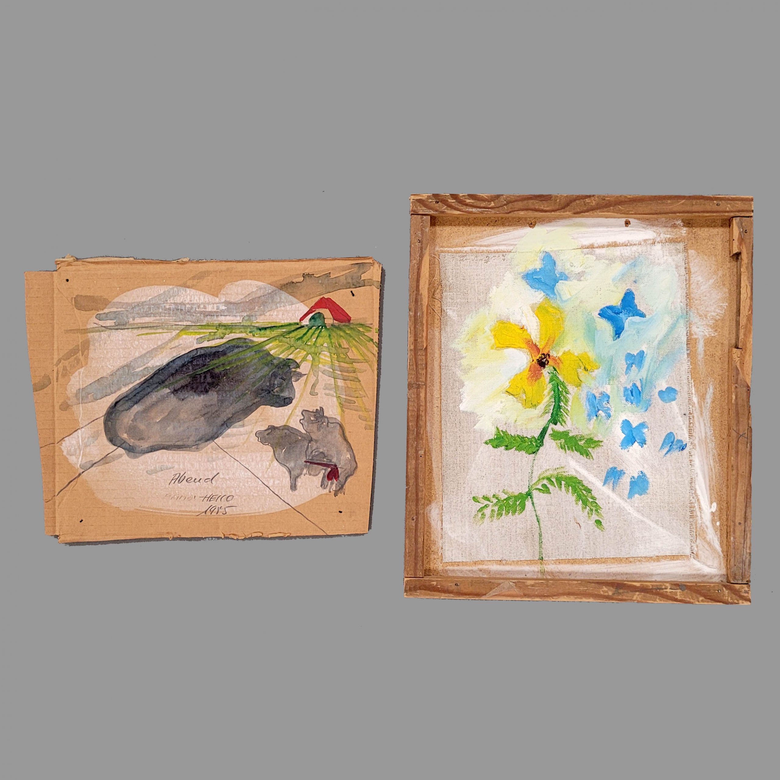 HERZFELD, Anatol (1931-2019): 2 ArbeitenAquarell über Bleistift auf Pappe, betitelt Abend, datiert 1985, 28 x 24 cm Blumen, Öl auf Leinwand in Holzrahmen geklebt, 34 x 29 cm