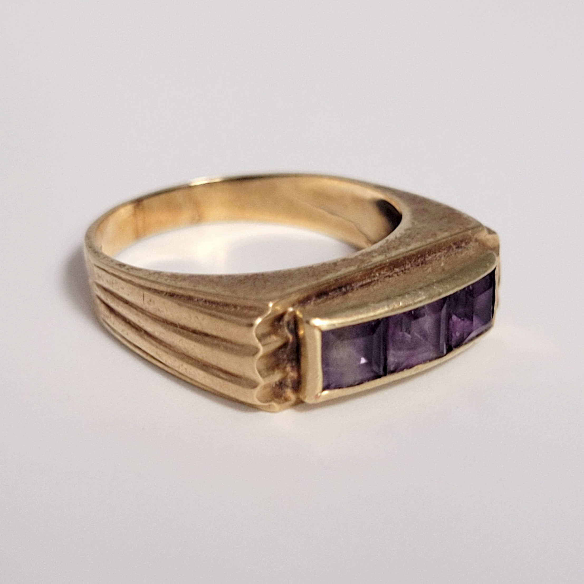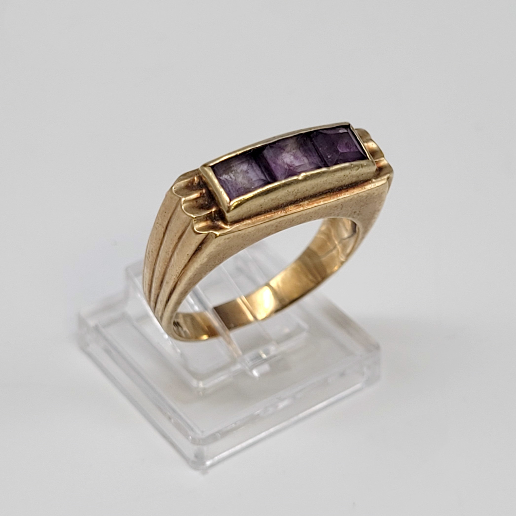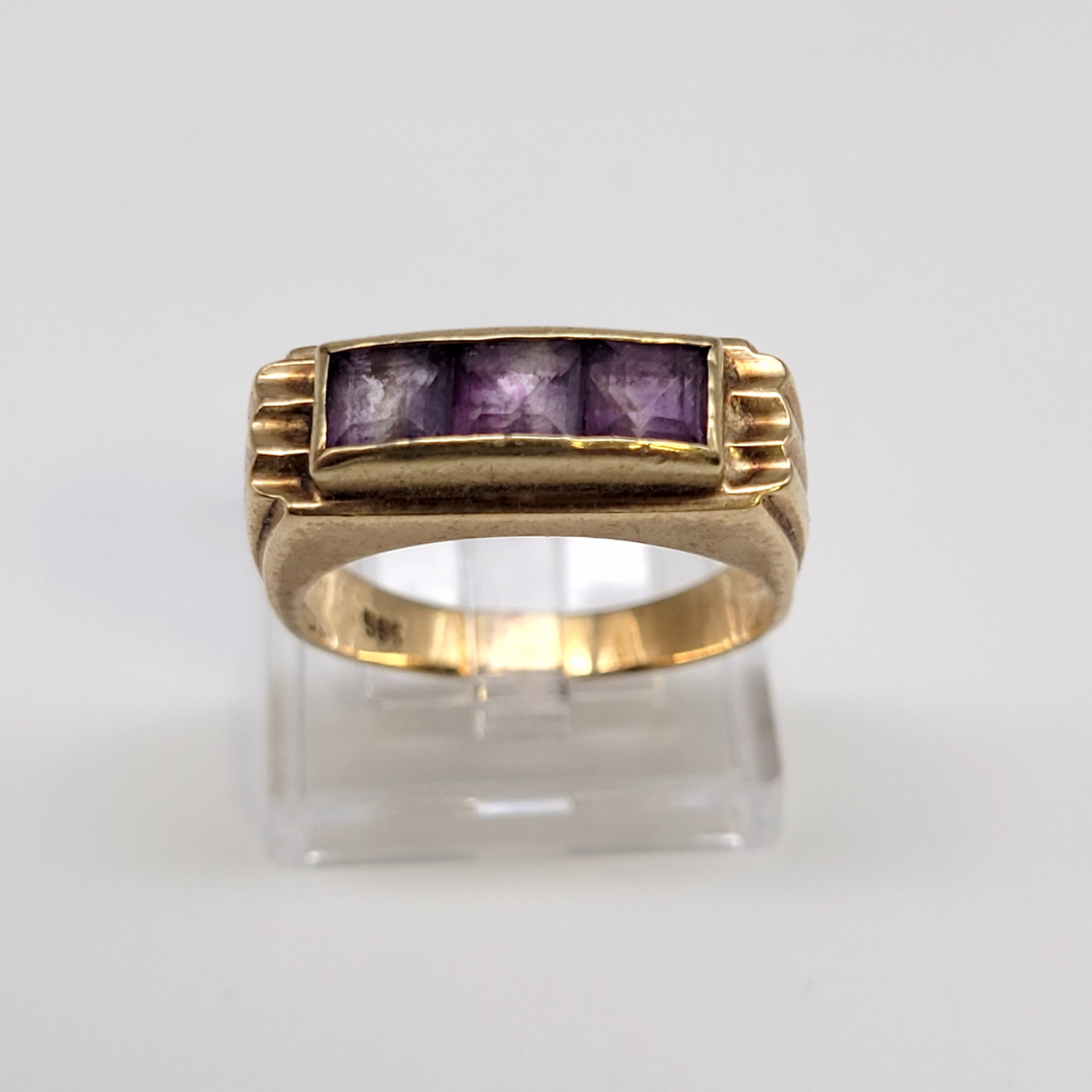 585er Gelbgold, 3 Amethyste, Ringgröße 56, Gewicht ca. 6g