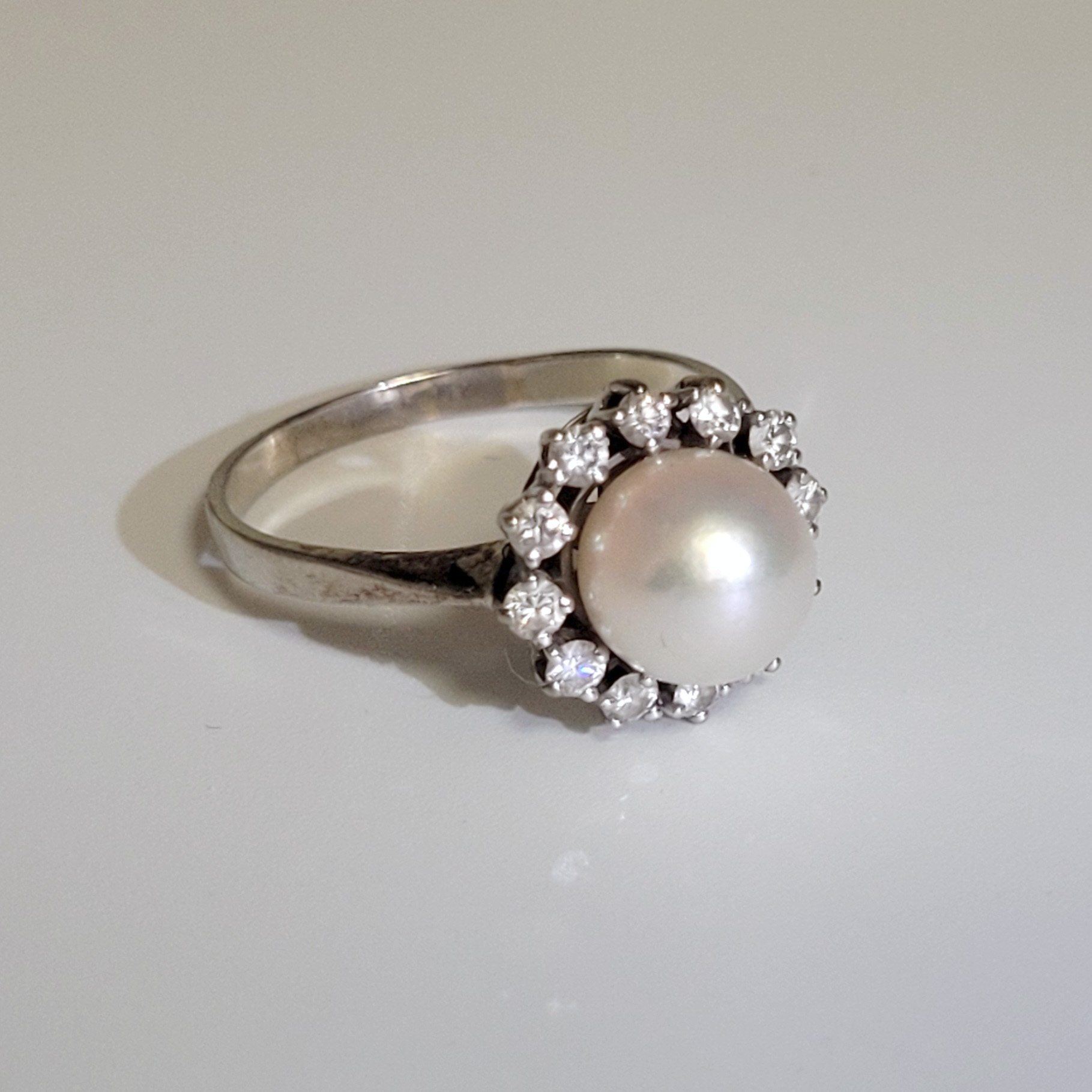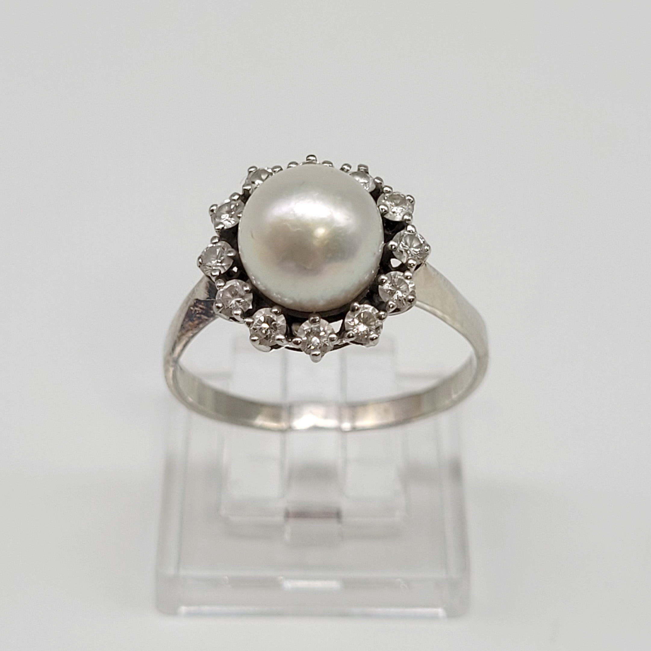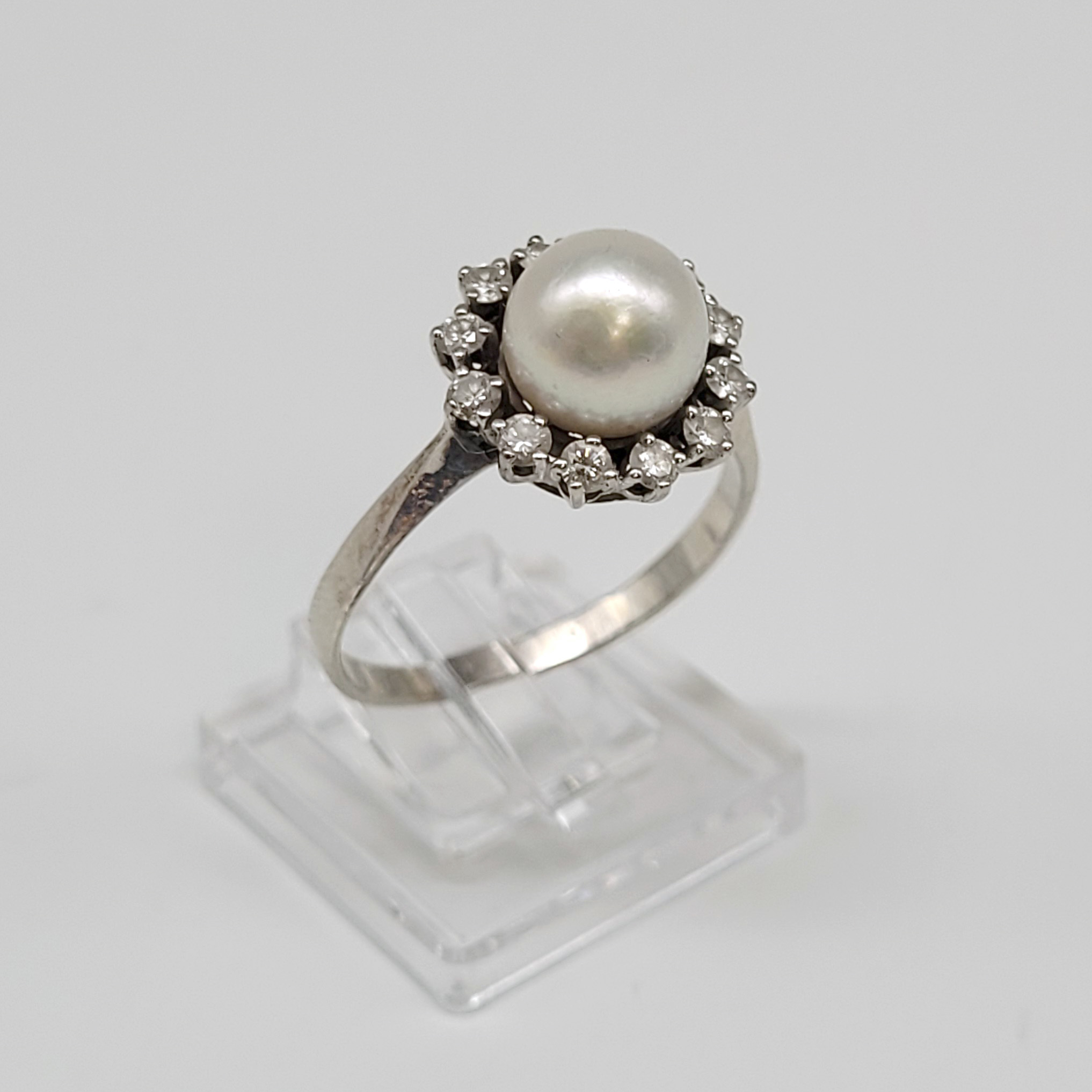Damenring750er Weißgold, Perle, 12 Brillanten (ca. 0,45 ct), Ringgröße 62, Gewicht 5g
