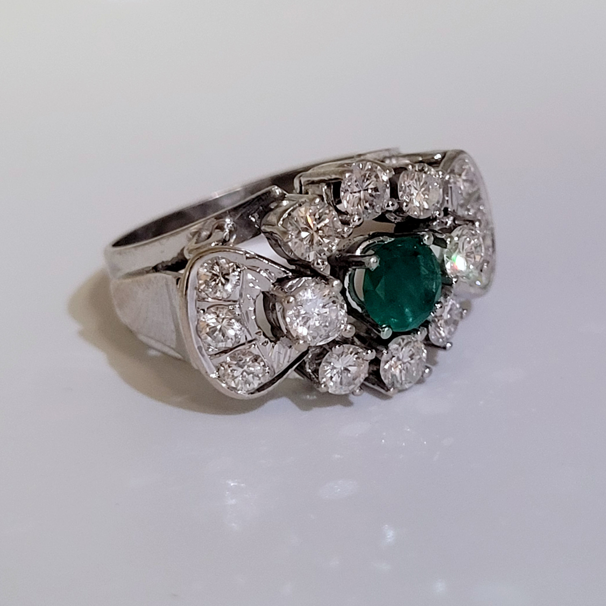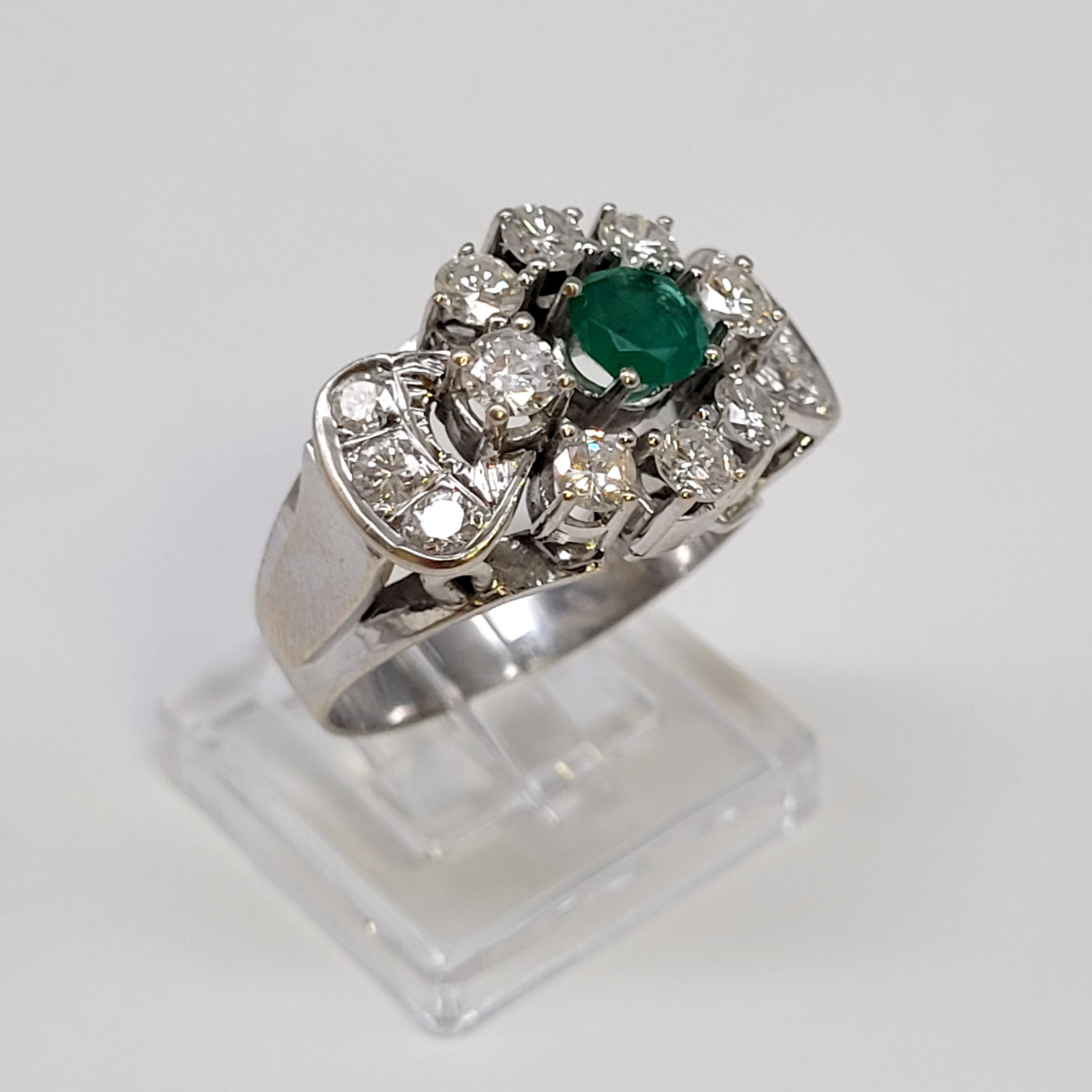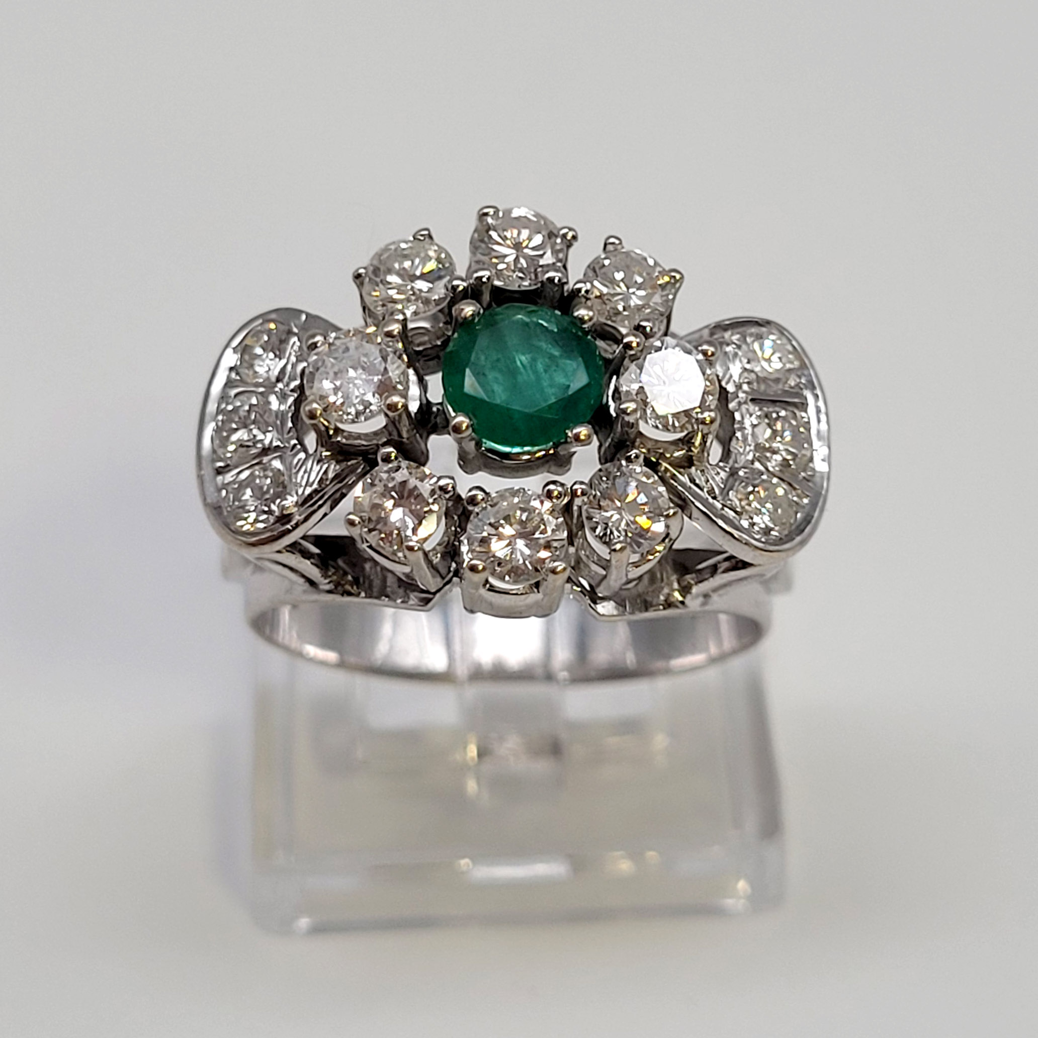 Damenring585er Weißgold, grüner Farbstein, 14 Brillanten (zusammen ca. 1,0 ct), Ringgröße 58