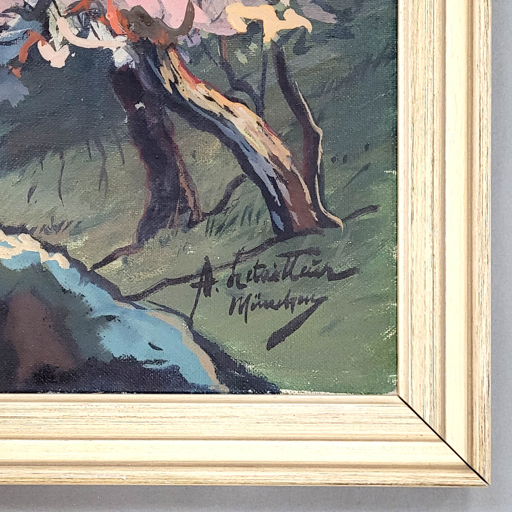 LETAILLEUR, Alfons (1876-1954): Blick auf einen Gebirgsort im FrühlingÖl auf Leinwand, signiert unten rechts, bezeichnet „München“, 73 x 73 cm, Rahmen (kleine Fehlstellen, Kratzer)