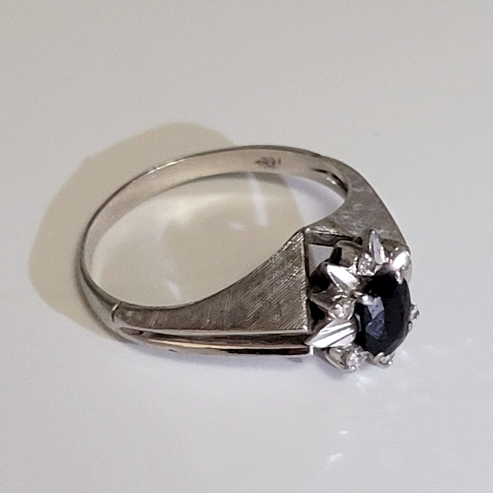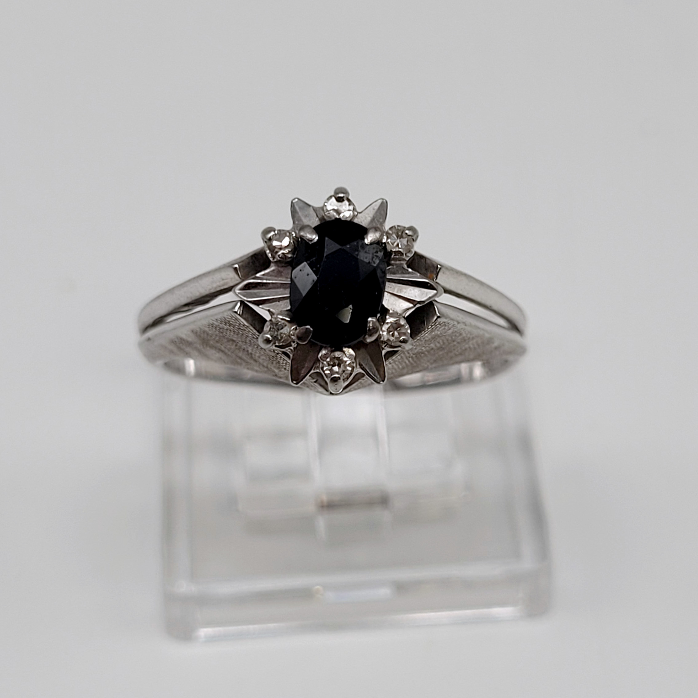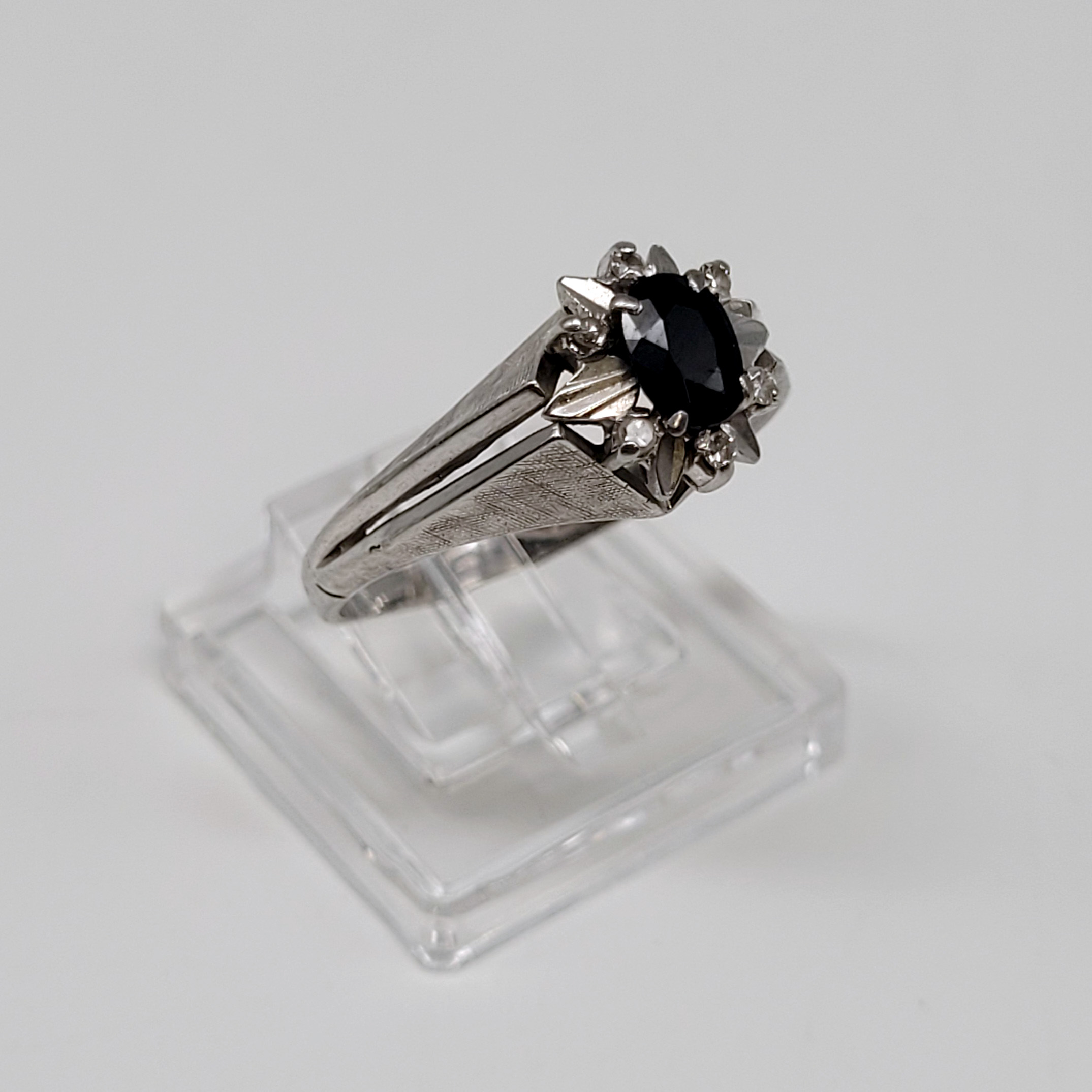 Damenring750er Weißgold, partiell guillochiert, Saphir und 6 kleine Diamanten, Ringgröße 55, Gewicht 4g