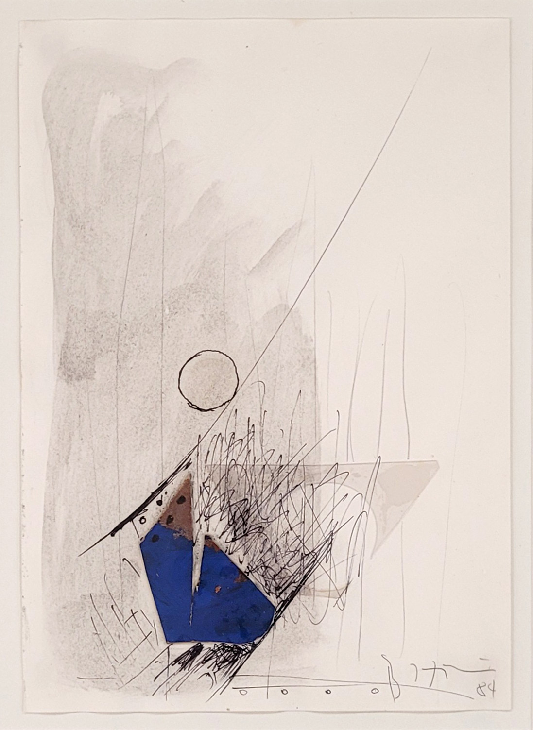 Mischtechnik mit Collage auf Papier, signiert und datiert (19)84 unten rechts, 29,5 x 20,5 cm, gerahmt unter Glas und Passepartout