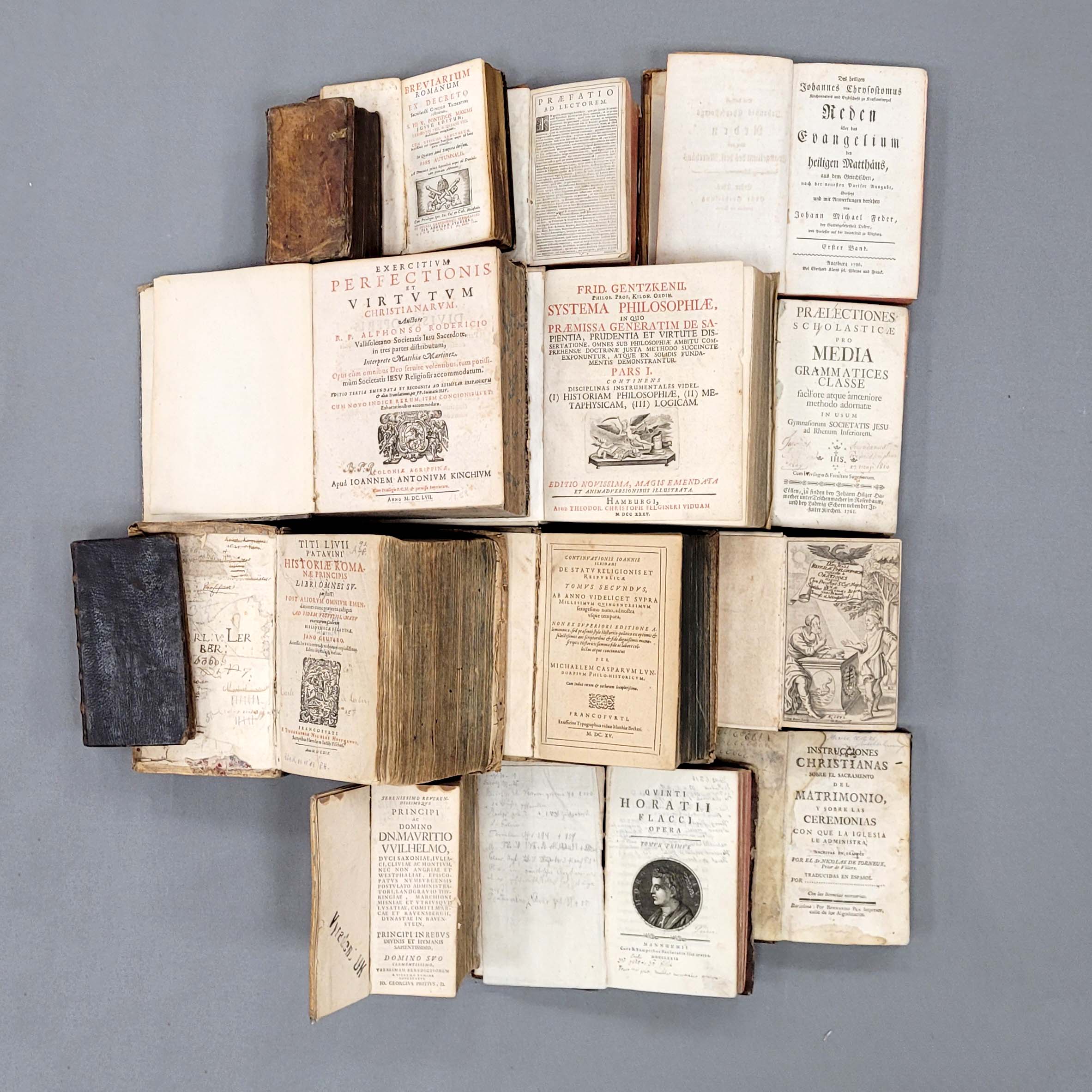 Großes Konvolut Bücher 17.-18. Jahrhundertreligiöse Literatur, klassische Literatur, verschiedene Zustände, insgesamt 14 BücherWir weisen darauf hin, dass die Bücher nicht kollationiert sind