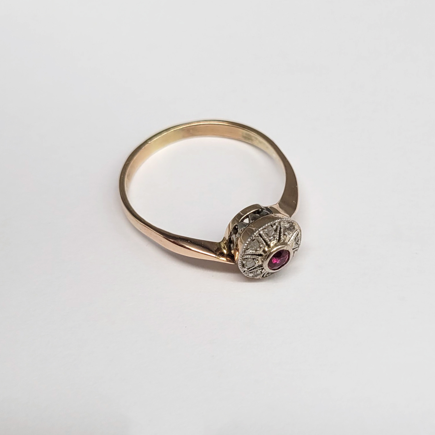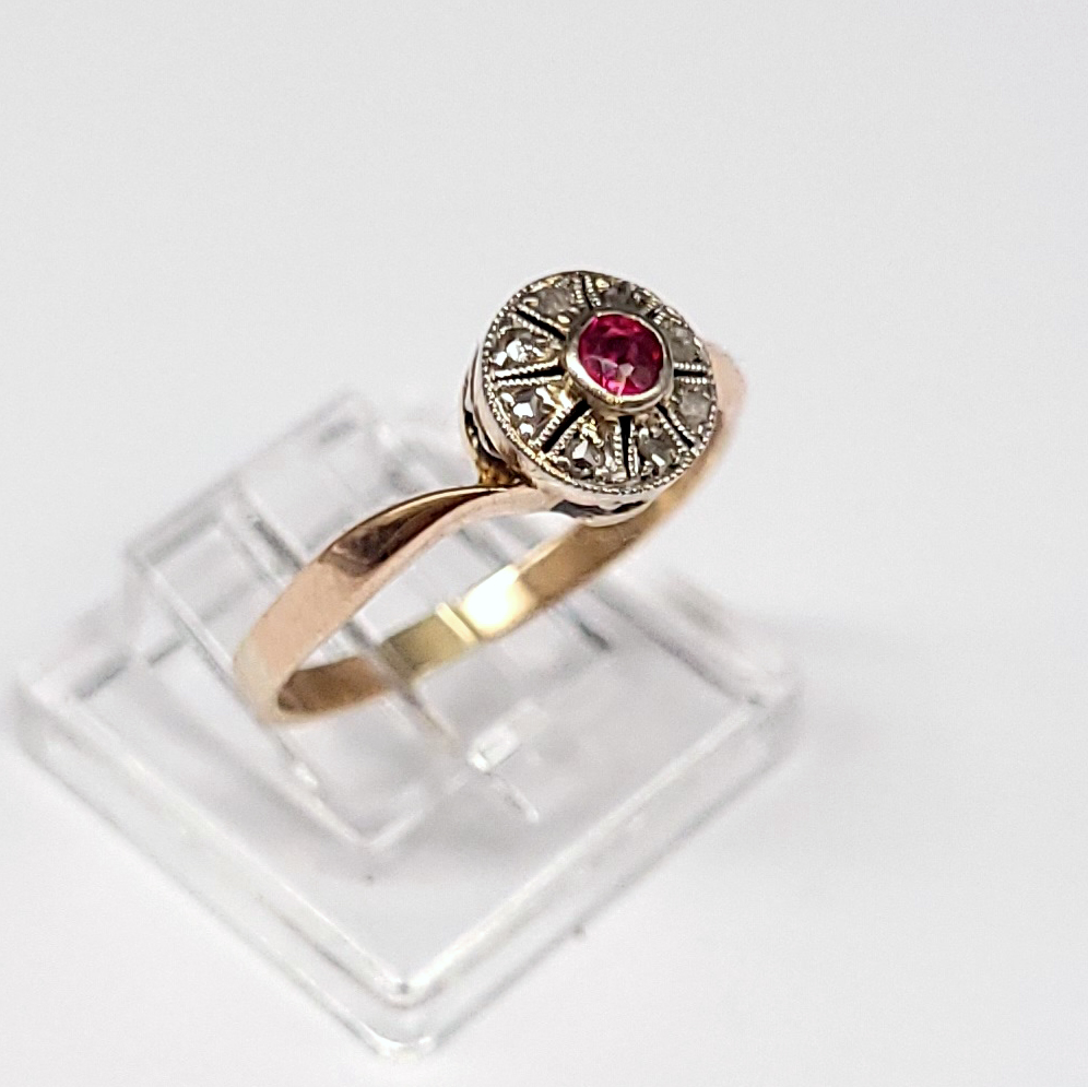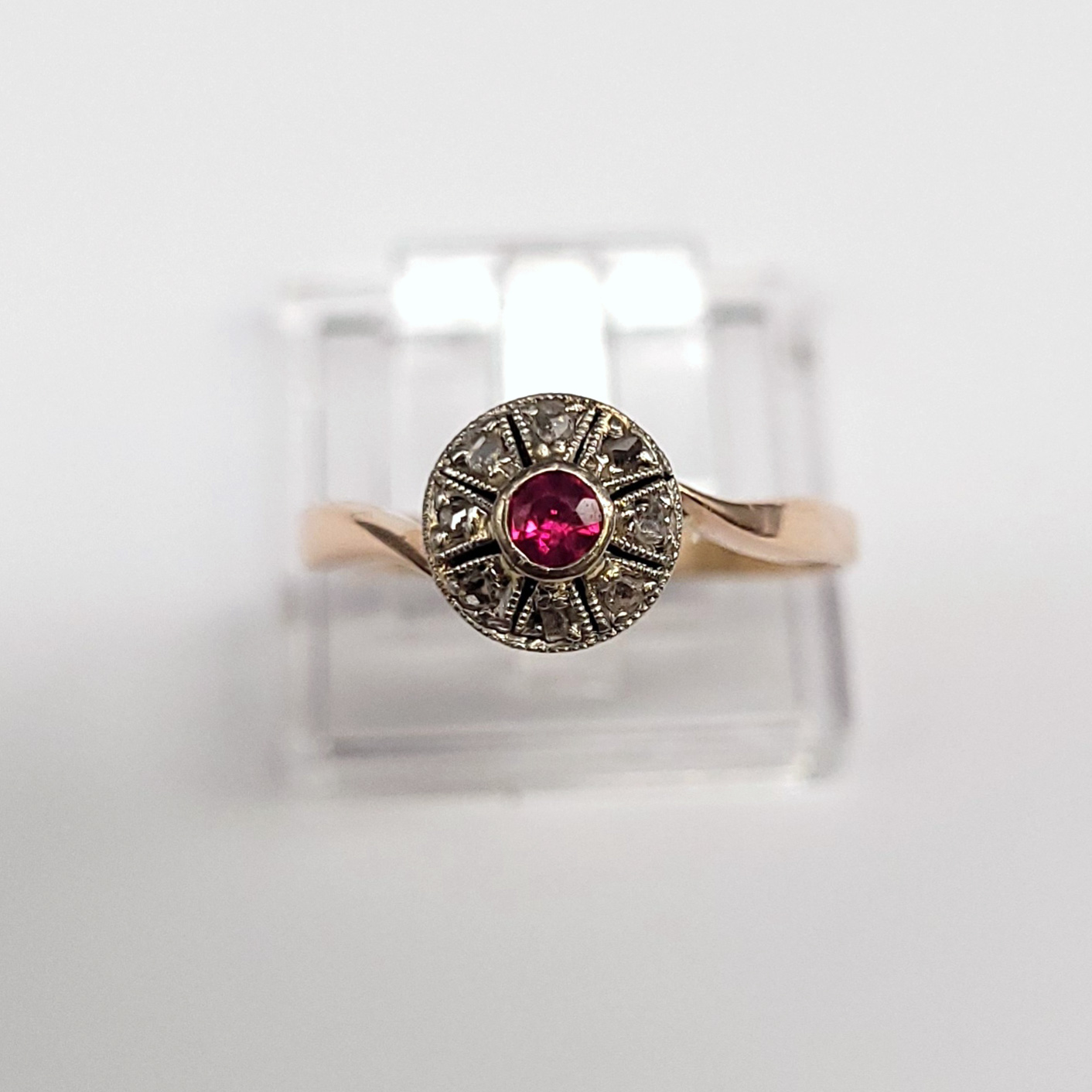 Damenring585er Rosé-Gold, Rubin, 8 kleine Diamanten, Ringgröße 55, Gewicht 3g