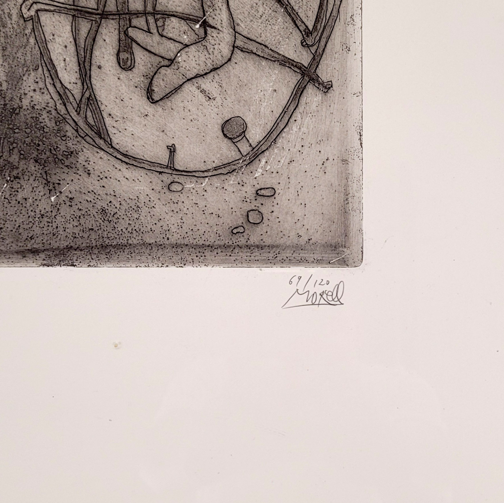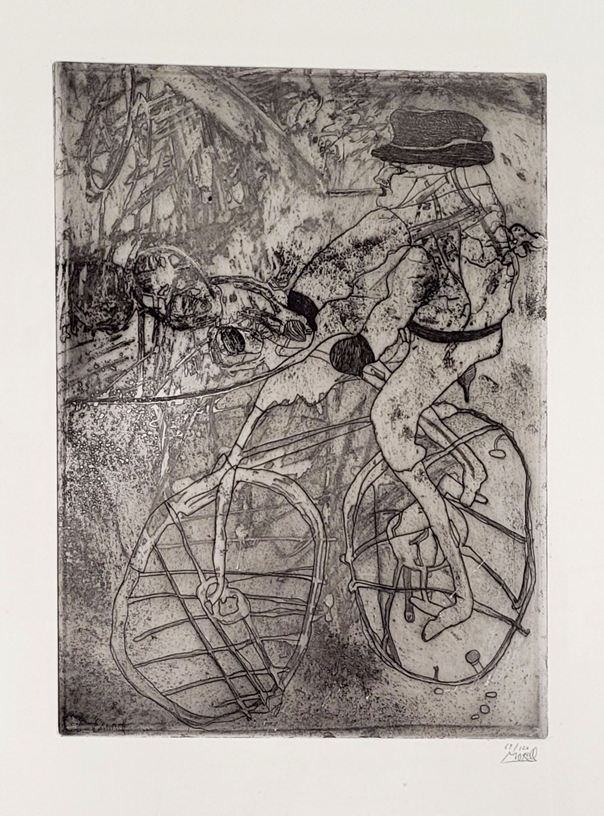 MORELL, Pit (*1939): Ringelnatz, an der deutschen Nordseeküste nachts radfahrendRadierung, 1974, signiert und nummeriert 69/120 unten rechts, 76 x 53,5 cm, gerahmt unter Glas