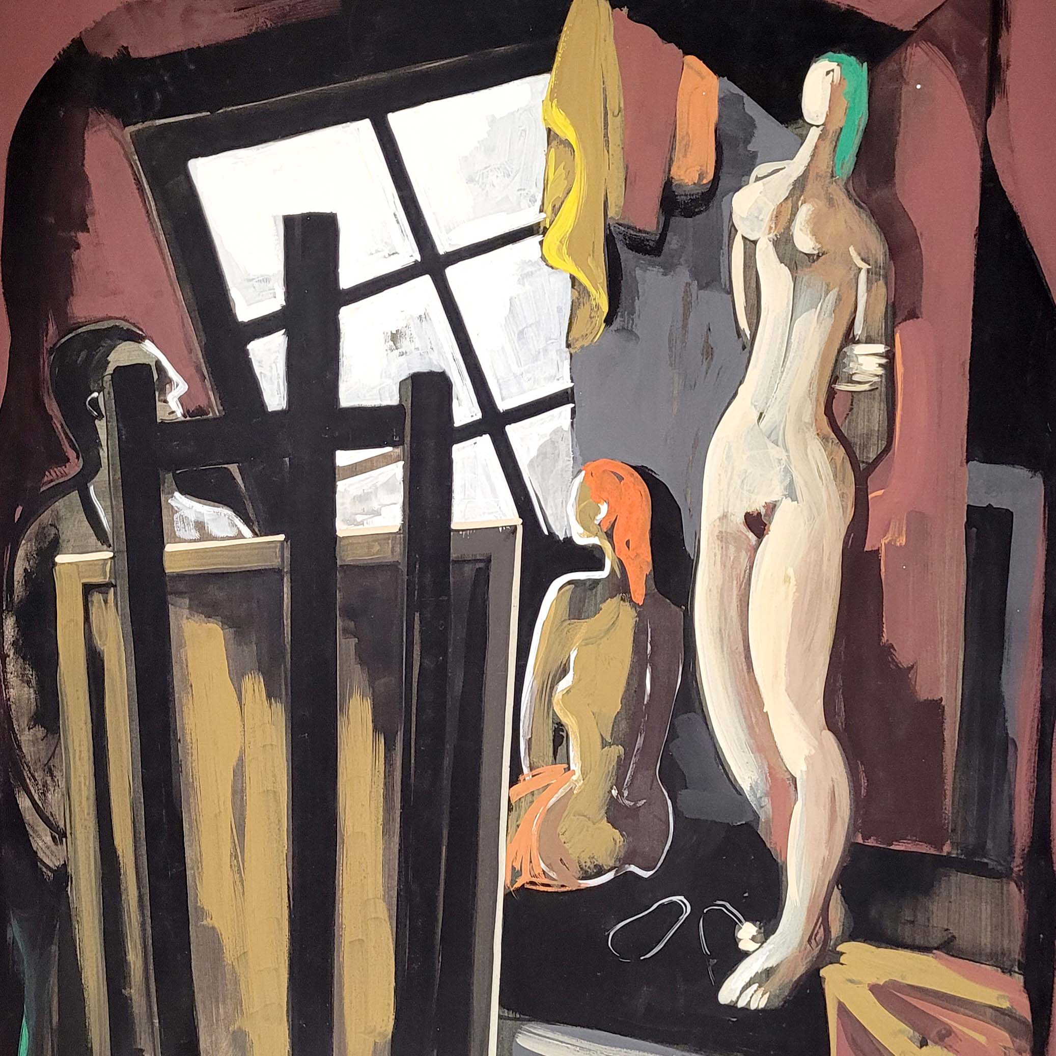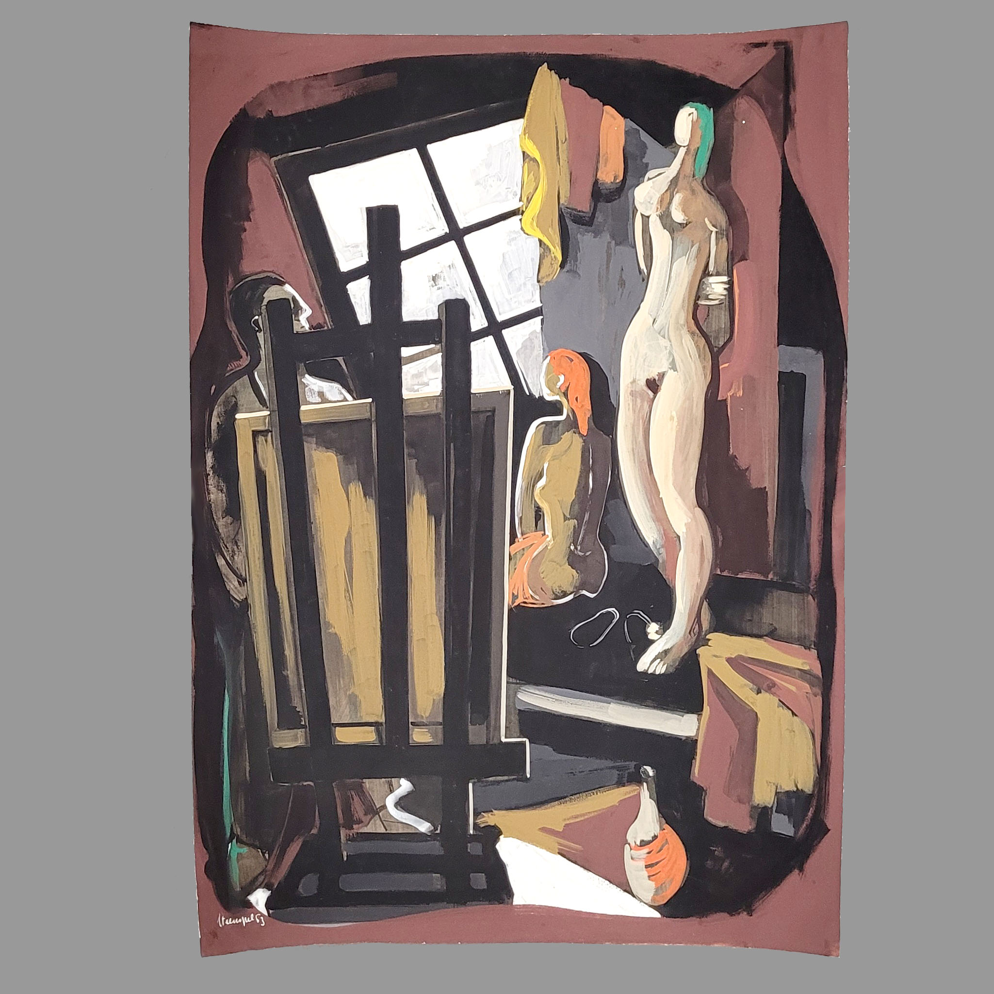 STÜMPEL, Klaus (1941-2015): Im AtelierGouache, Mischtechnik auf Papier, signiert datiert (19)83 unten links, 65 x 47,5 cm** ) Bei einem Zuschlag über 400 € werden 2 % für VG Bild gemäß §26 UrHG erhoben