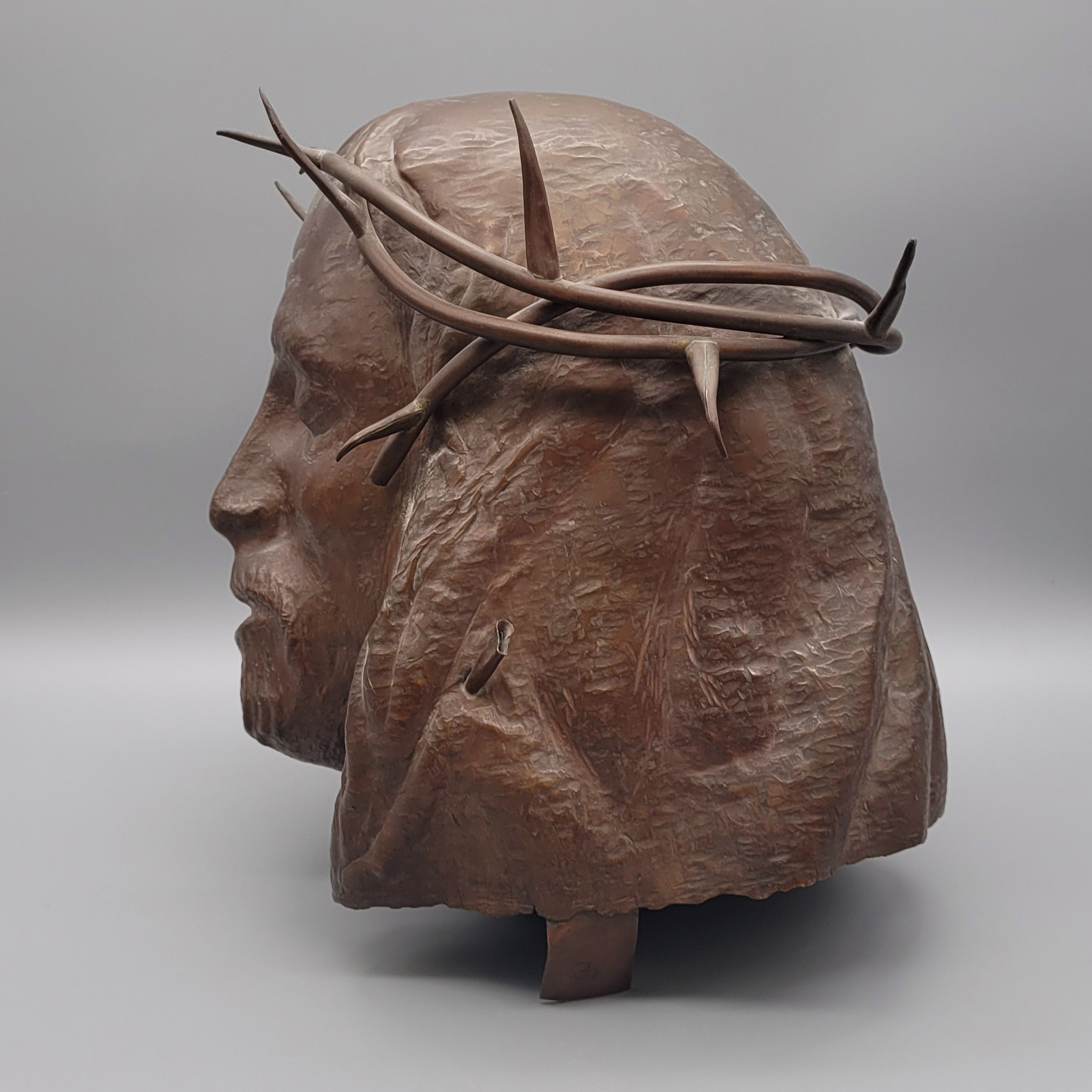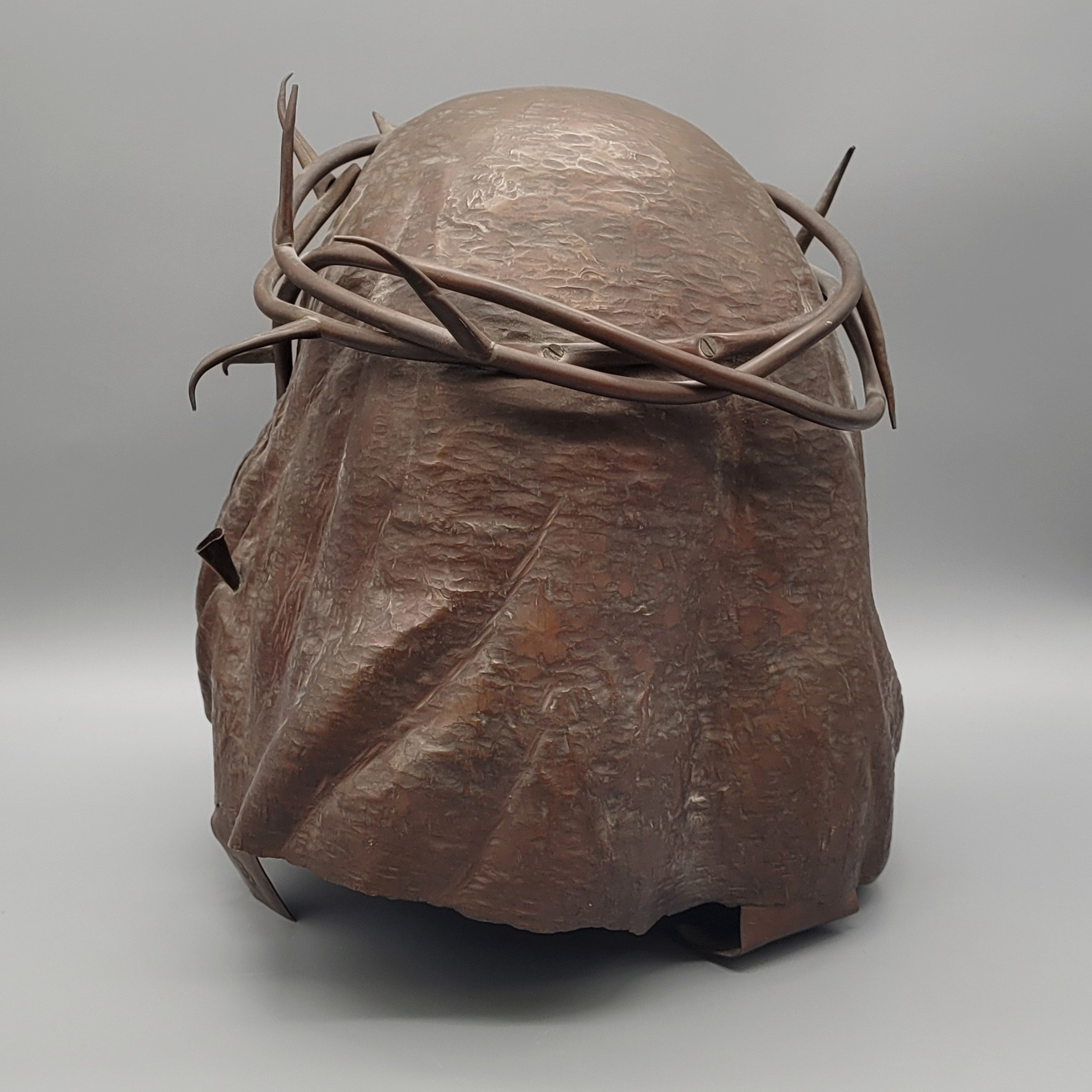 JAEKEL, Joseph (1907-1985): ChristuskopfKupfer, getrieben, monogrammiert auf der seitlichen Lasche, Höhe 28 cm