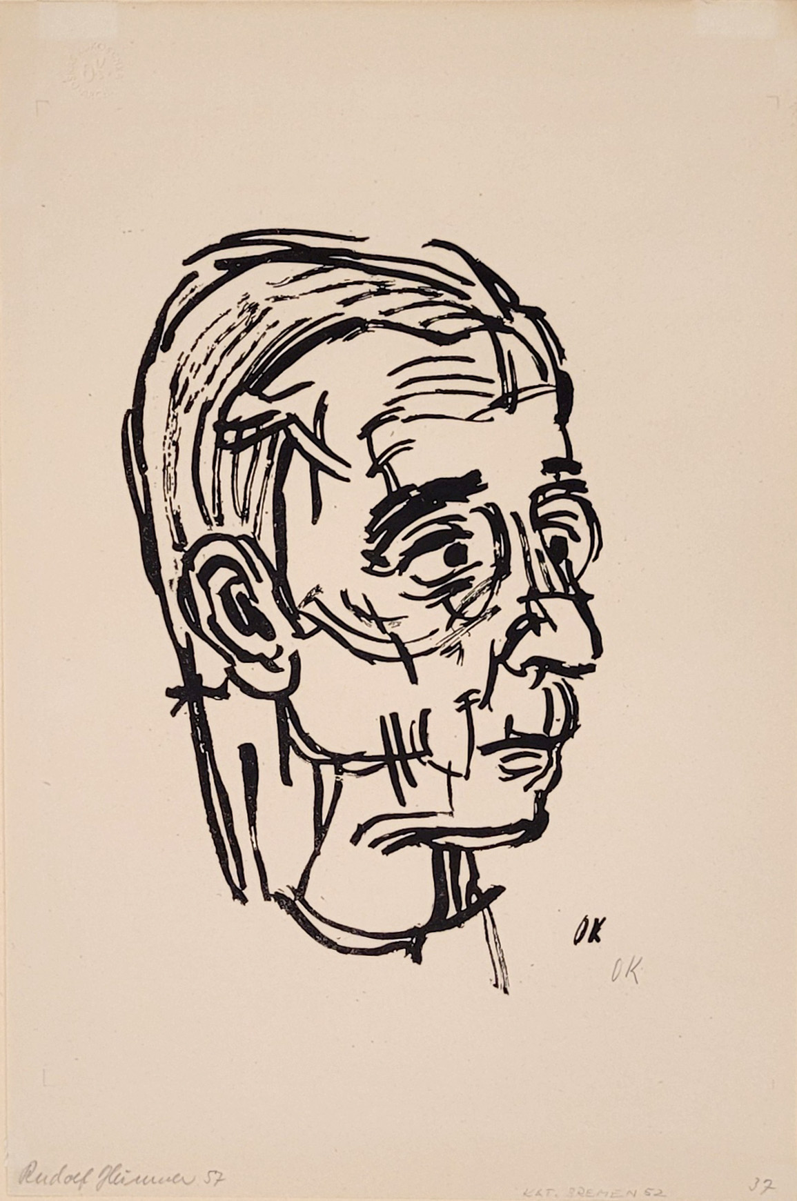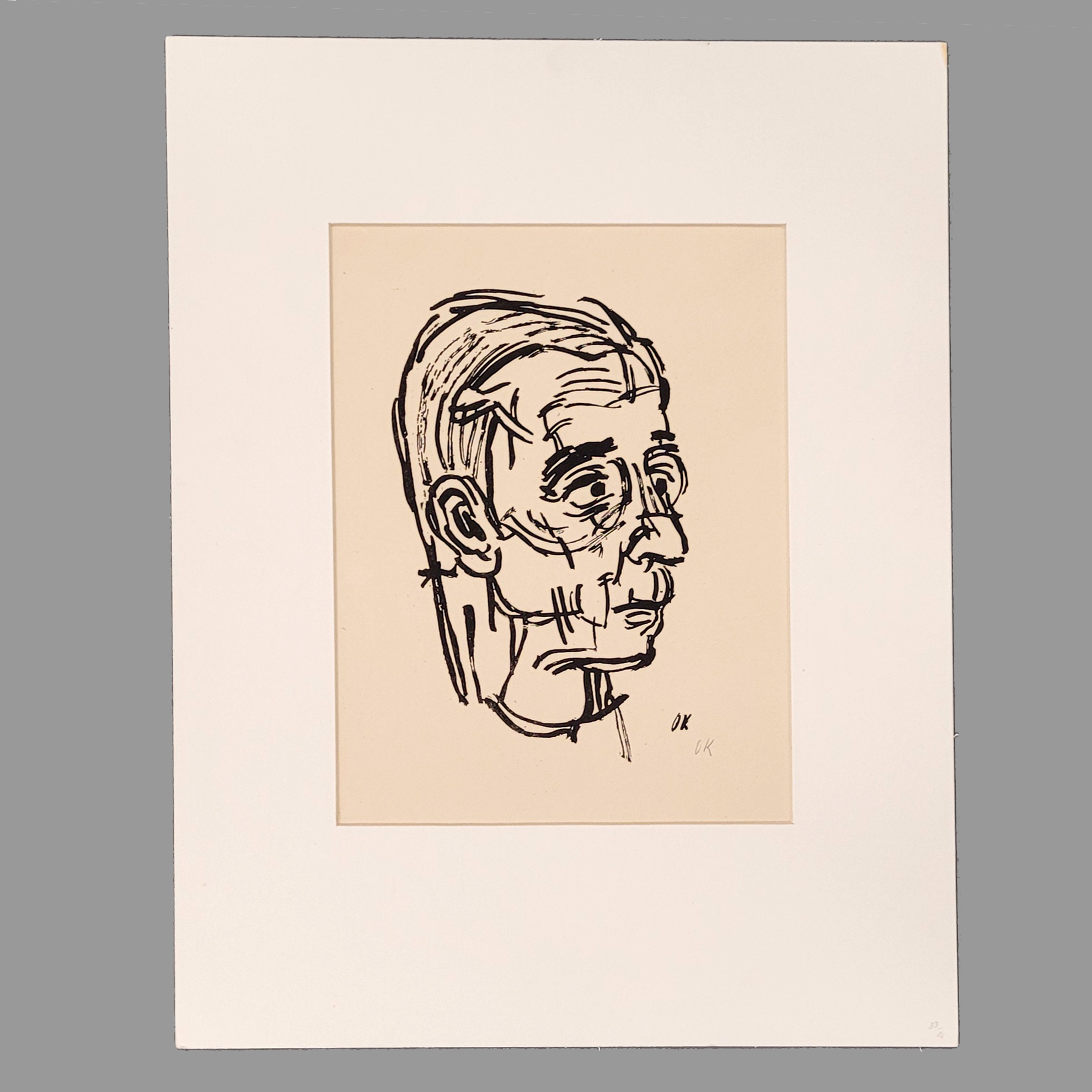 Lithographie, 1916, aus dem Album Menschenköpfe, monogrammiert in Bleistift unten rechts, Prägestempel „Oskar Kokoschka Archiv“ oben links, 47 x 31 cm, montiert im Klapp-Passepartout