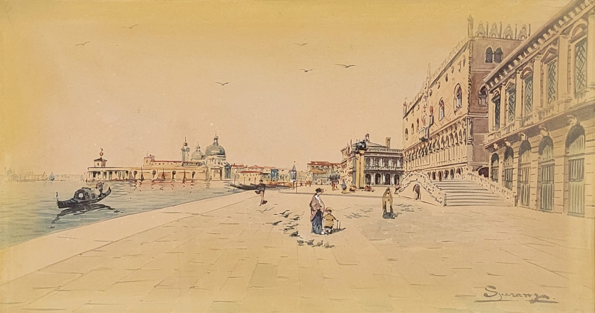 ITALIENISCHER MEISTER (um 1900): Canale Grande mit S. Maria della SaluteAquarell auf Papier, unleserlich signiert unten rechts, 22 x 41 cm, gerahmt unter Glas