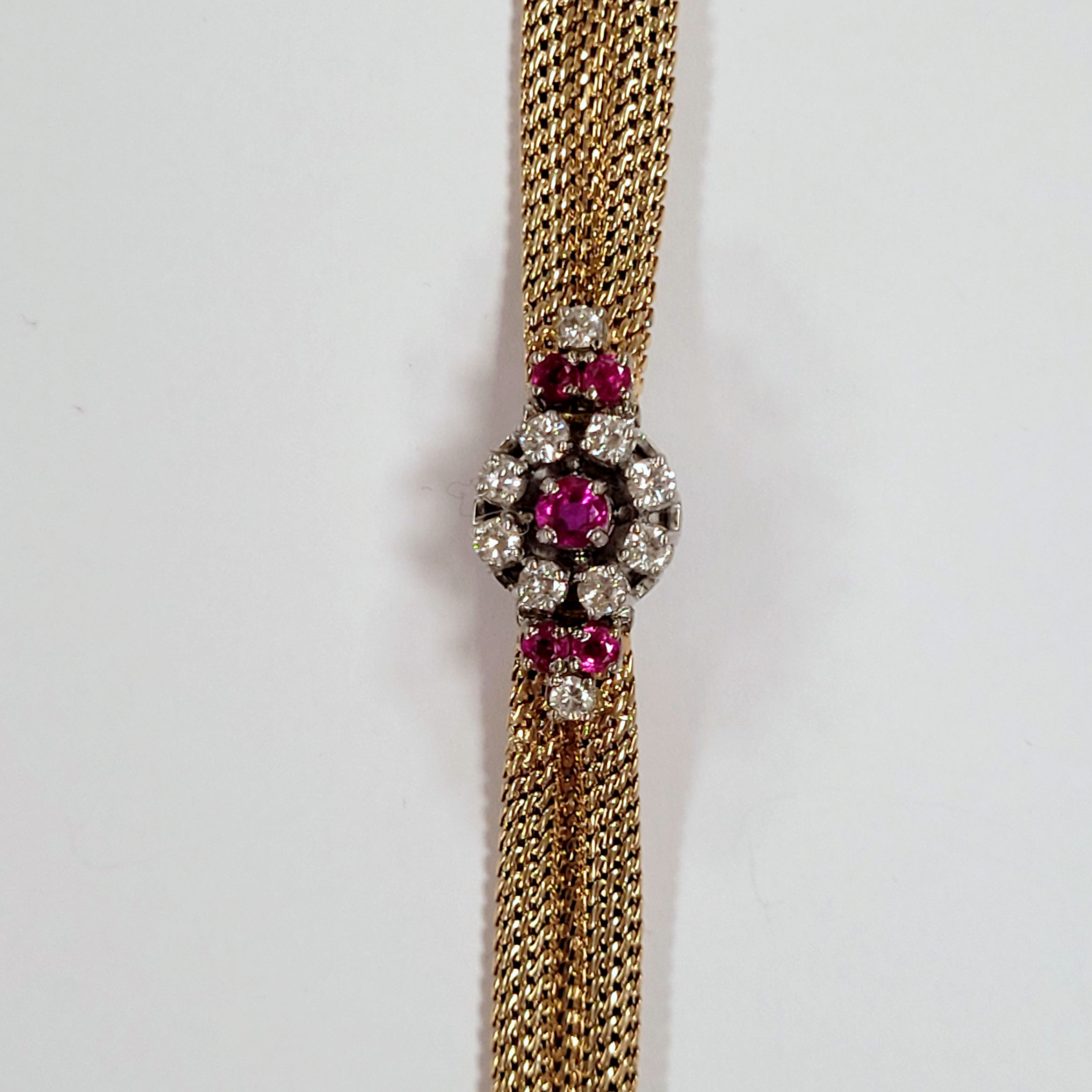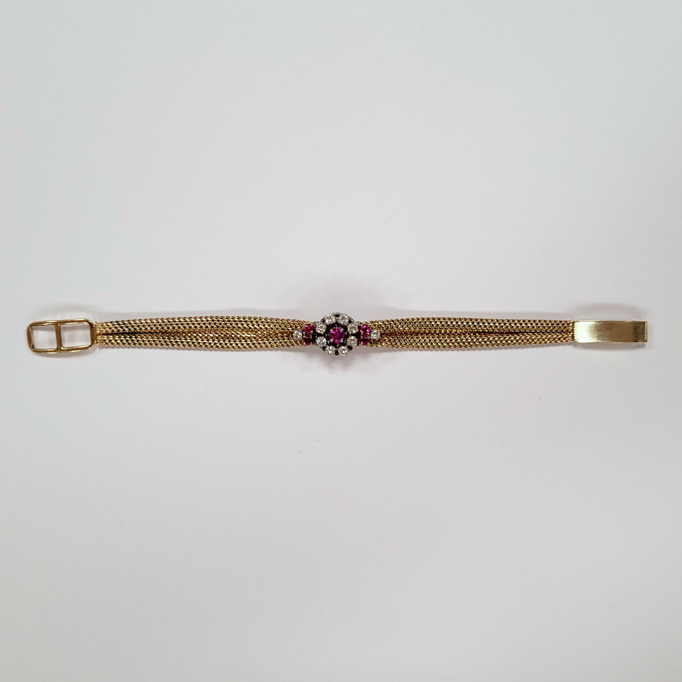 Armband585er Gelbgold, blütenförmiger Besatz aus 5 Rubinen und 10 Brillanten, Klappverschluss, Länge 16 cm, Gewicht ca. 16g