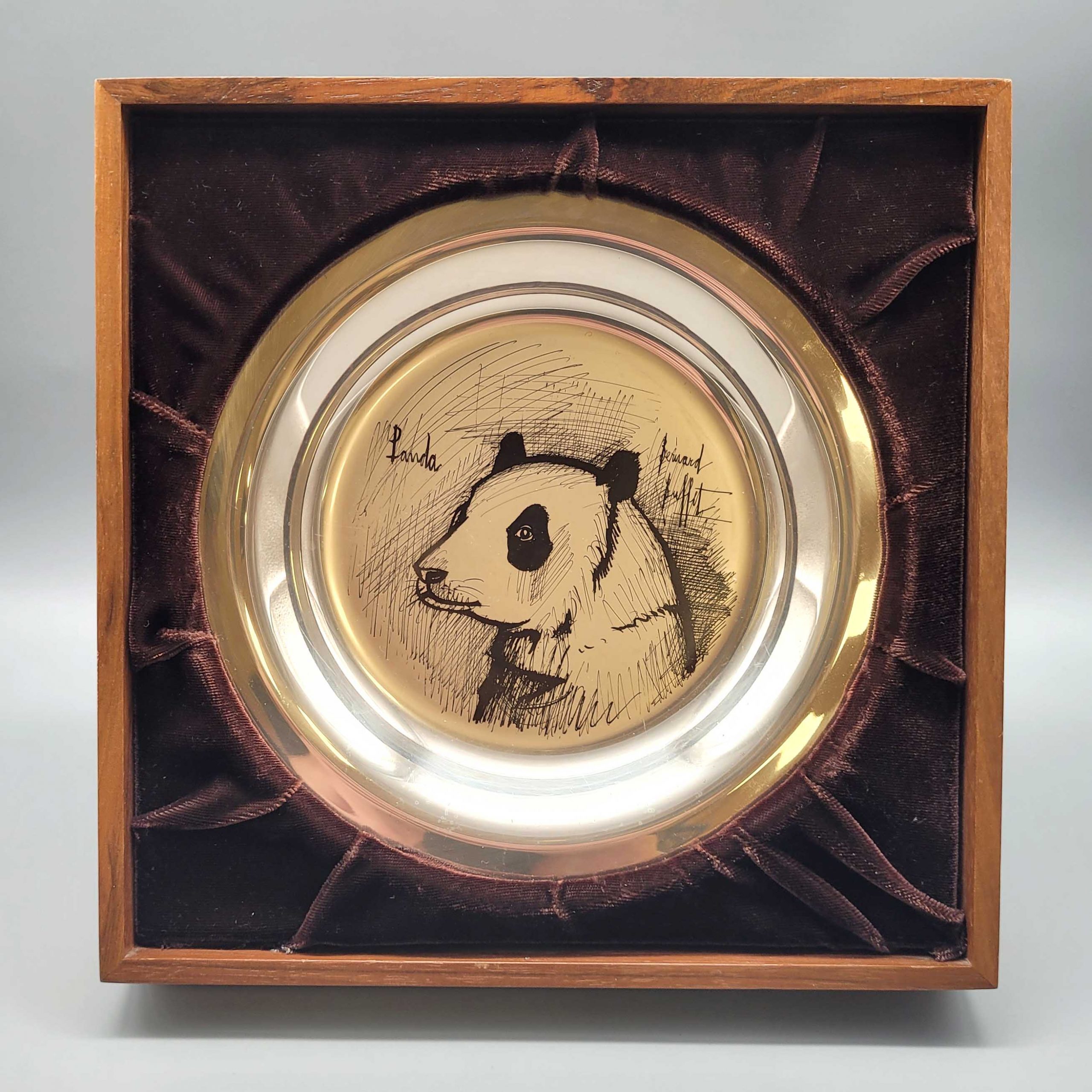 BUFFET, Bernard (1928-1999): PandaÄtzgravur auf 925er Silber, Ex. 733, Rahmenaufsteller mit Samt, Durchmesser 20 cm, Gewicht 214g (Zertifikat beiliegend)**) Bei einem Zuschlag über 400€ werden 2% für VG Bild gemäß §26 UrHG erhoben
