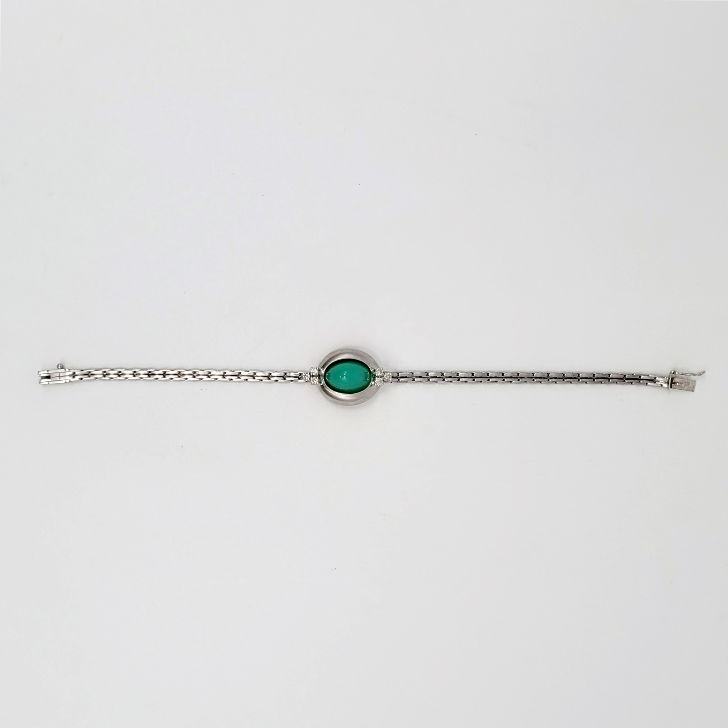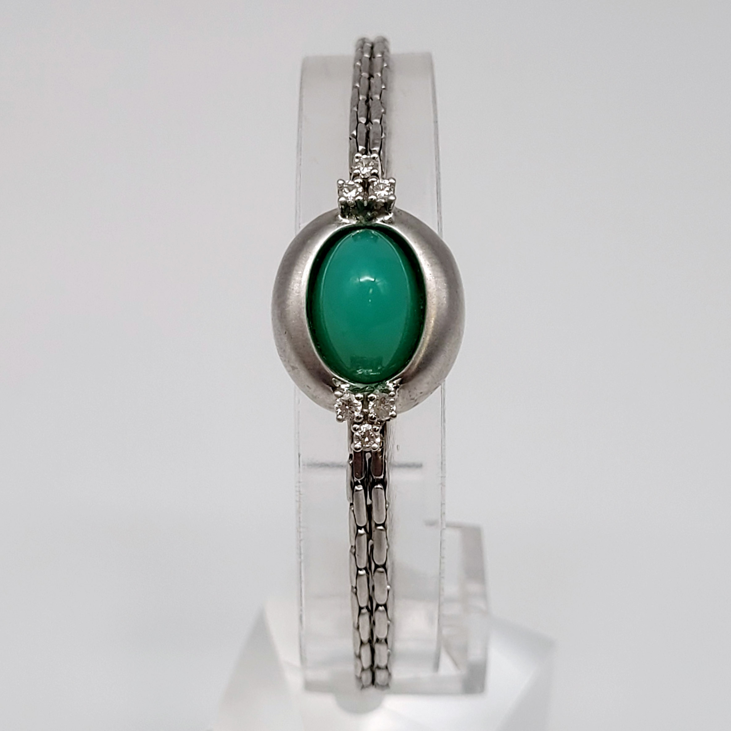 Armband585er Weißgold, Chrysopas und 6 Brillanten (ca. 0,26 ct), Kastenschloss mit Sicherheitsbügel, Länge 17,5 cm, Gewicht 14g