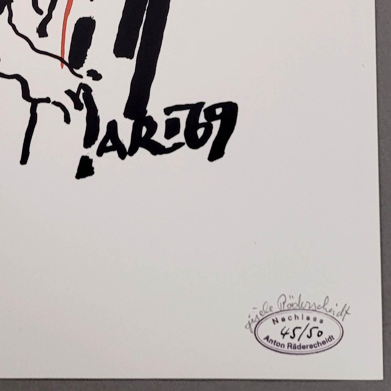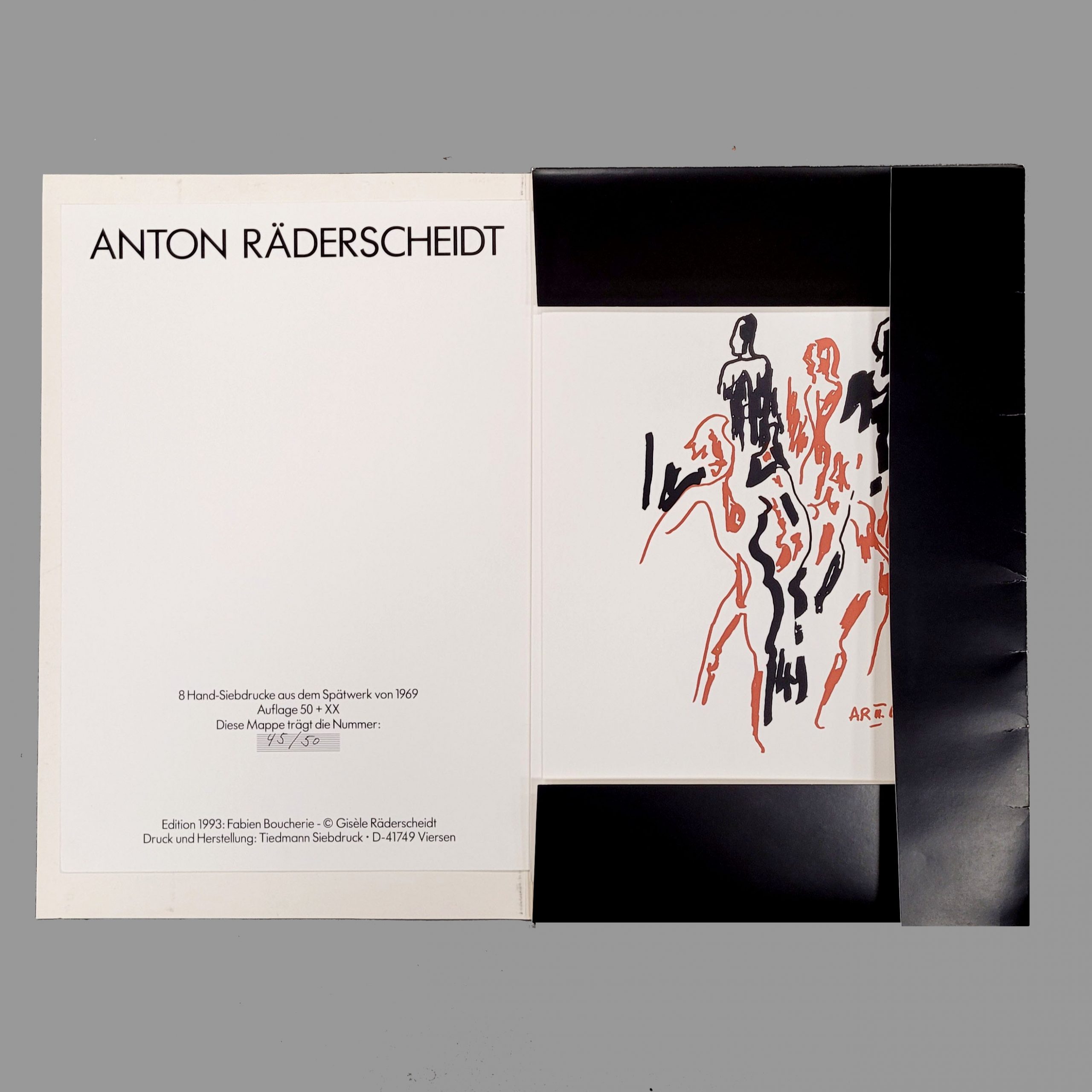 Mappe mit 8 Farbsiebdrucken aus dem Spätwerk von 1969, Nachlass-Stempel und signiert von G. Räderscheidt, nummeriert 45/50, 54 x 38,5 cm, Viersen (Tiedmann) 1993