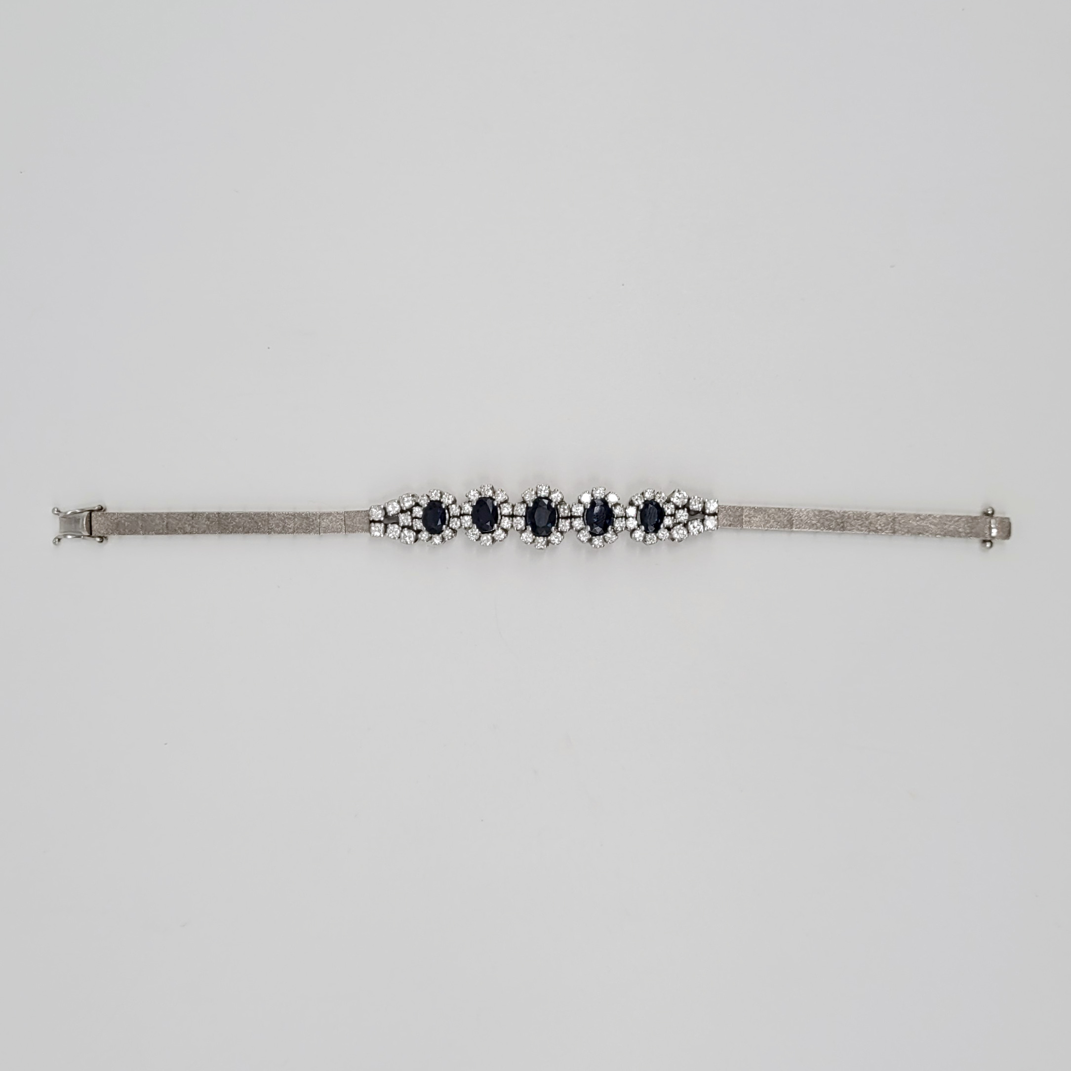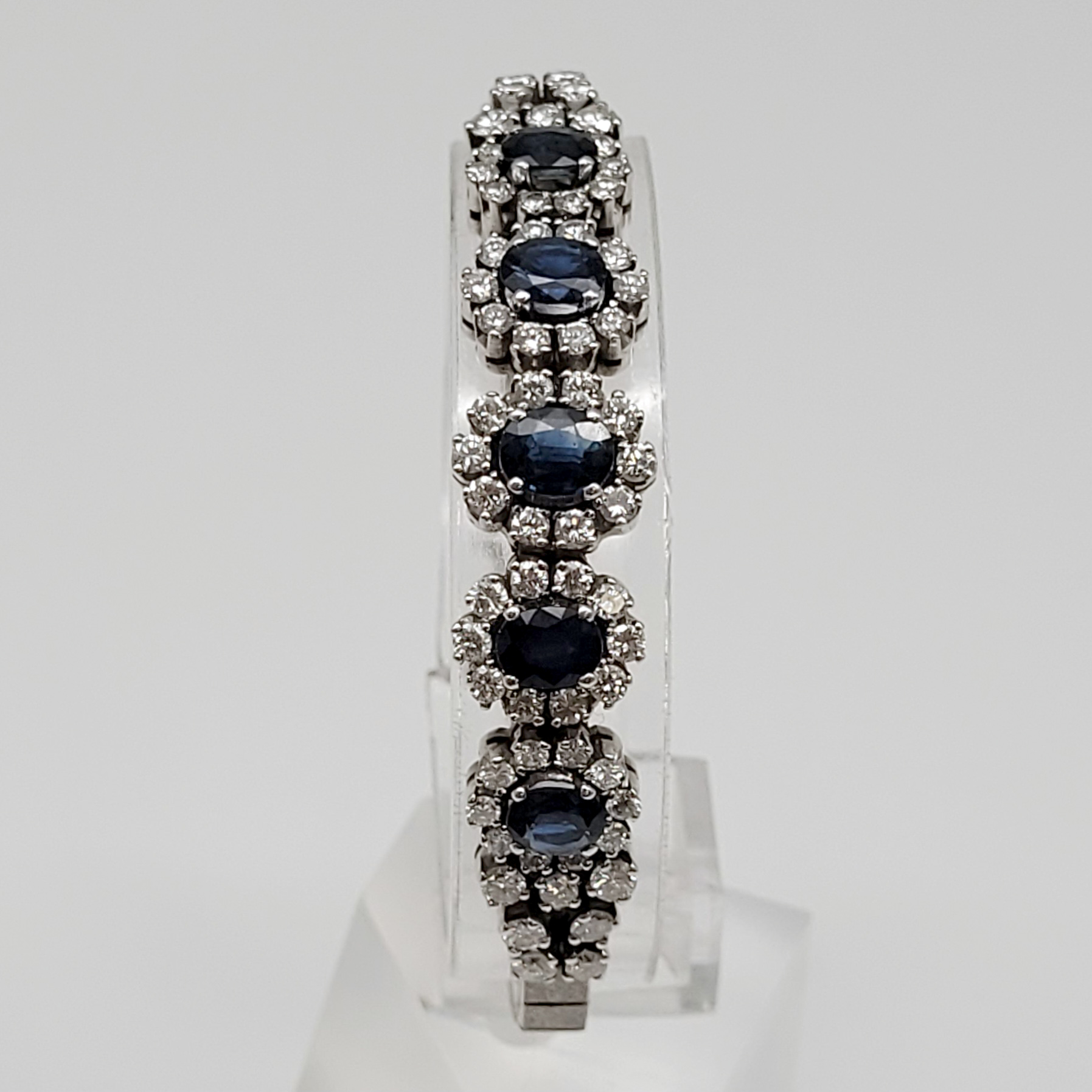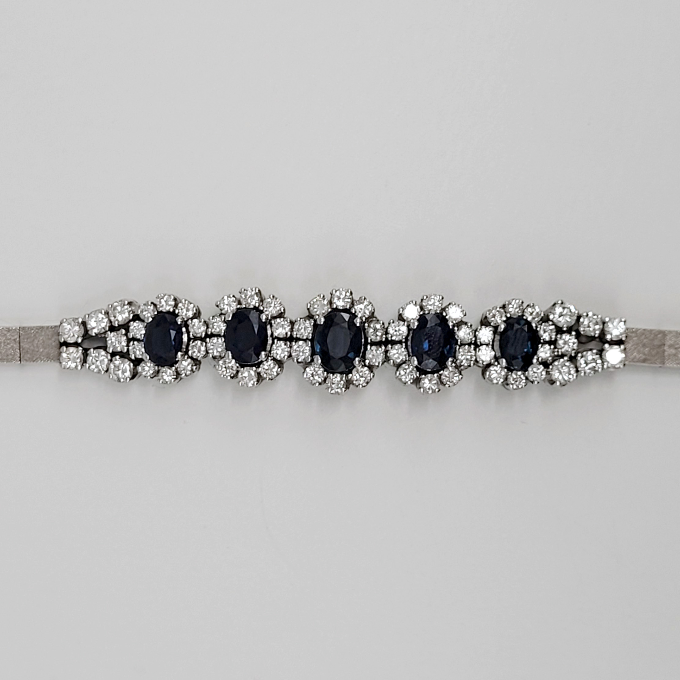 Armband585er Weißgold, 5 Saphire, 64 Brillanten (ca. 1,20 ct), Kastenschloss mit Sicherheitsbügeln, Länge 17 cm, Gewicht ca. 25g