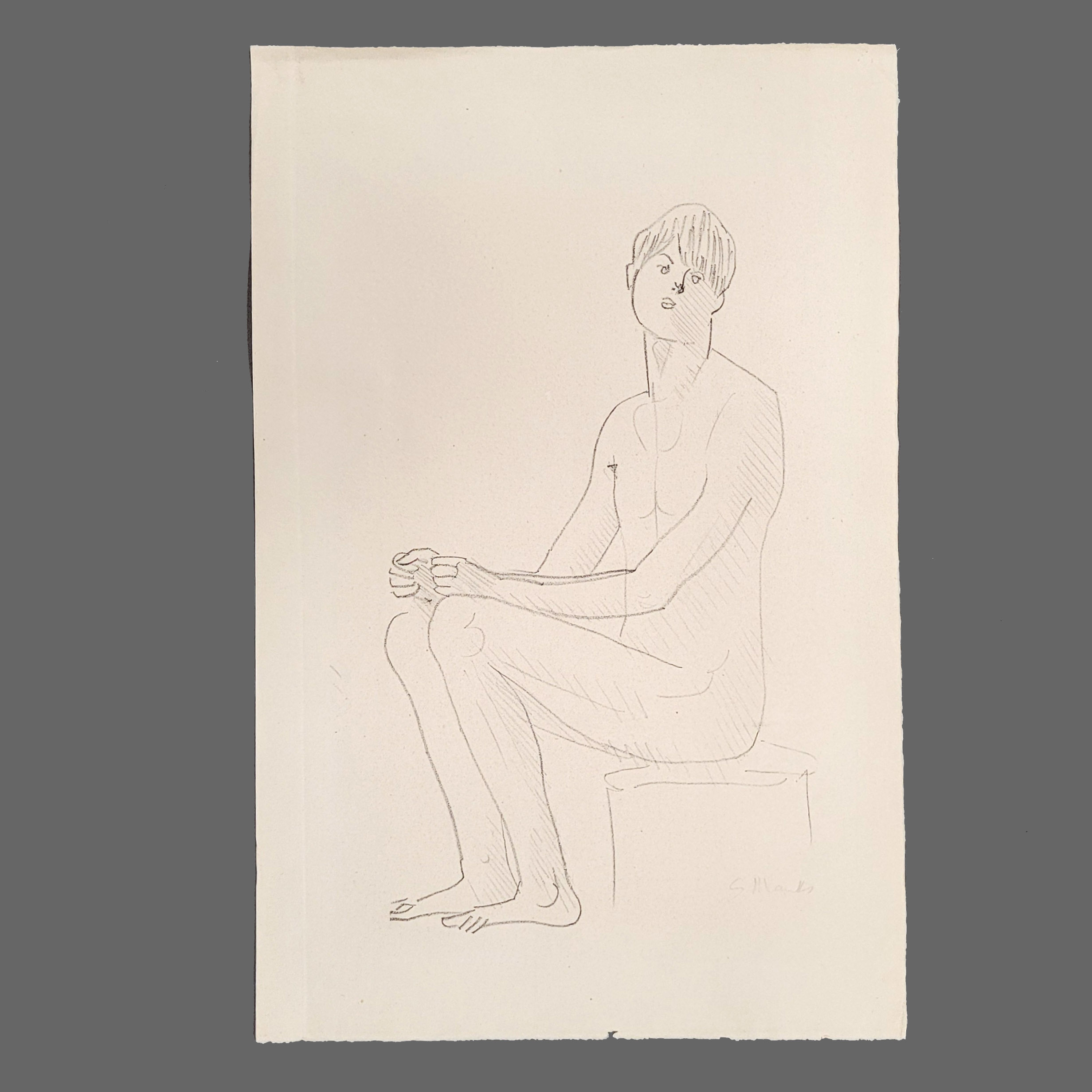 MARCKS, Gerhard (1889-1981): Sitzender JünglingsaktLithographie, 1948, signiert unten rechts, 48 x 31 cm (Stauchfalten, kleine Randläsuren)** ) Bei einem Zuschlag über 400 € werden 2 % für VG Bild gemäß §26 UrHG erhoben