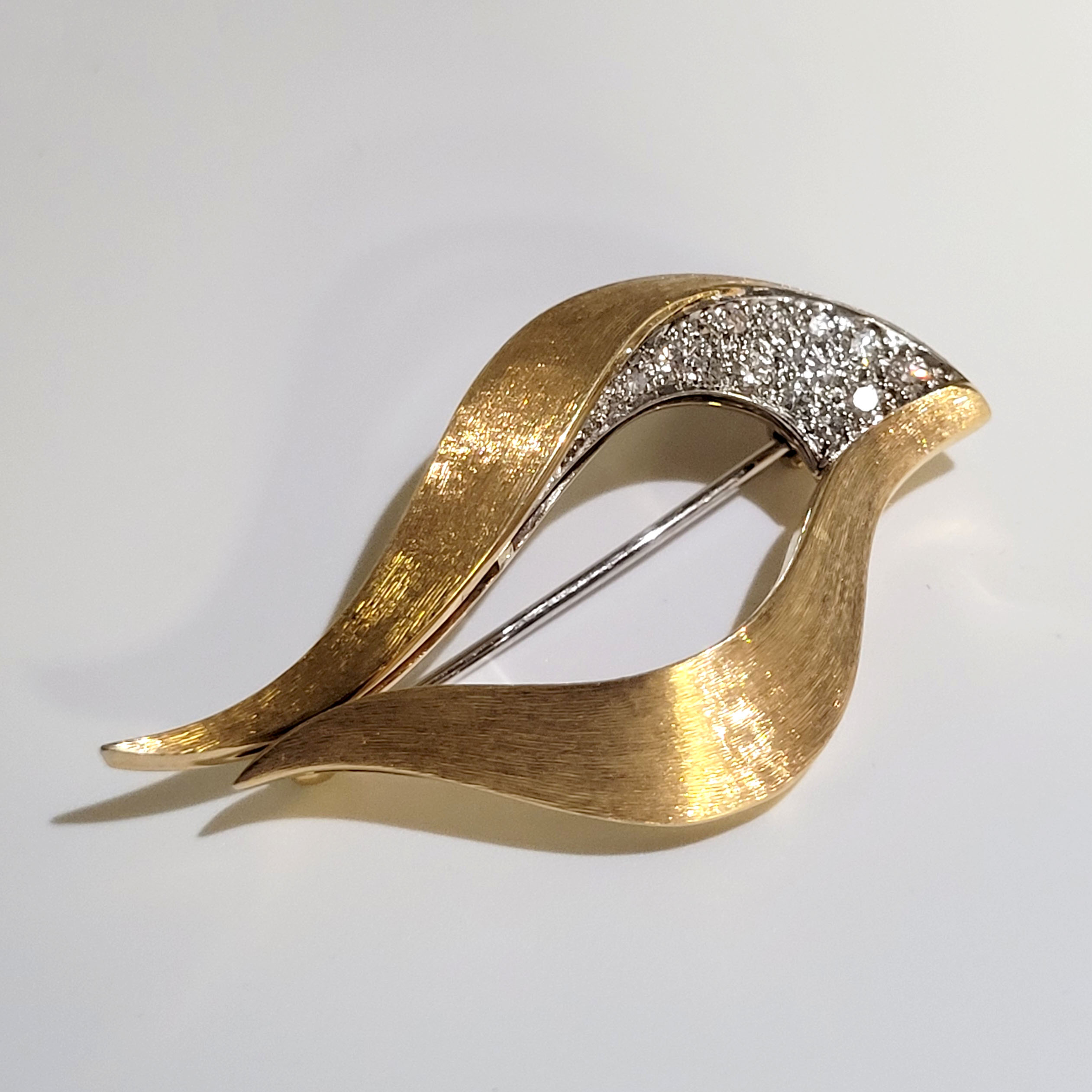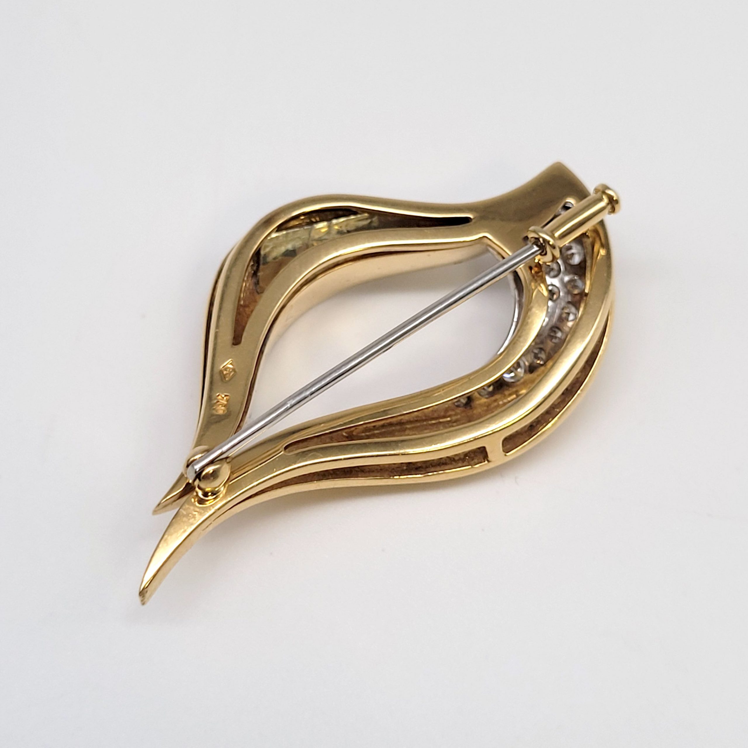 Brosche750er Gelbgold, guillochiert, Brillantbesatz, 4,5 x 2,5 cm, Gewicht ca. 11g