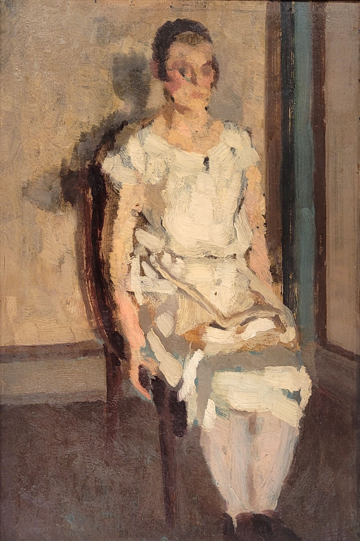 ABELEN, Peter (1884-1962): Porträt der sitzenden Frau AbelenÖl auf Holz, verso bezeichnet „aus dem Nachlass des Künstlers 1963 erworben“, 46 x 31 cm, Rahmen