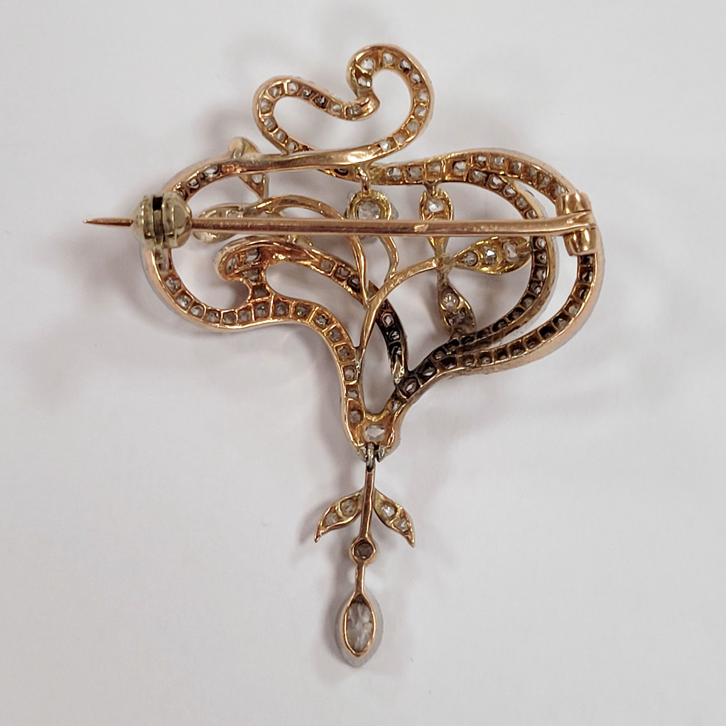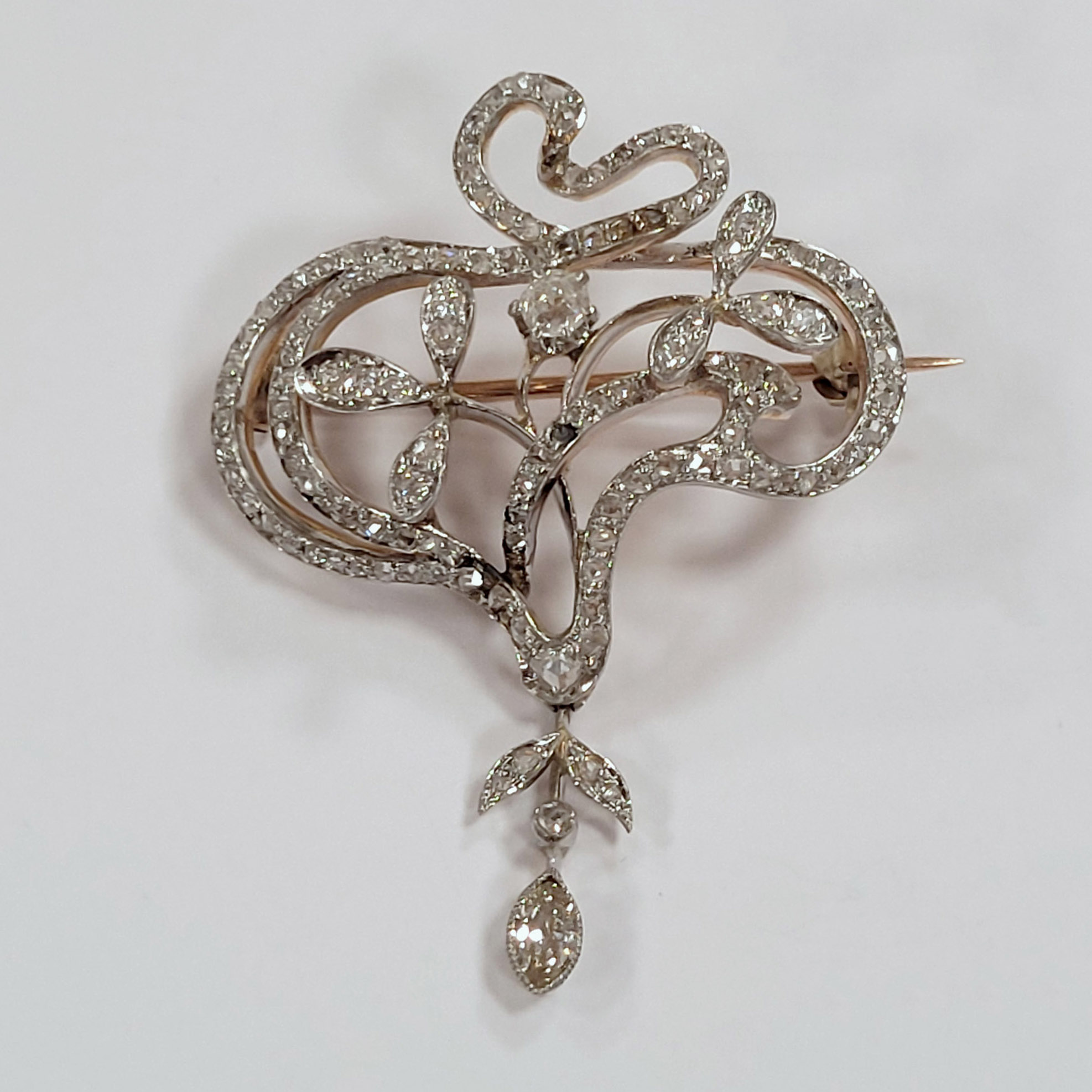 BroscheRosé-Gold, Silber, reicher Diamantbesatz, 4,5 x 3,5 cm, Gewicht 10g