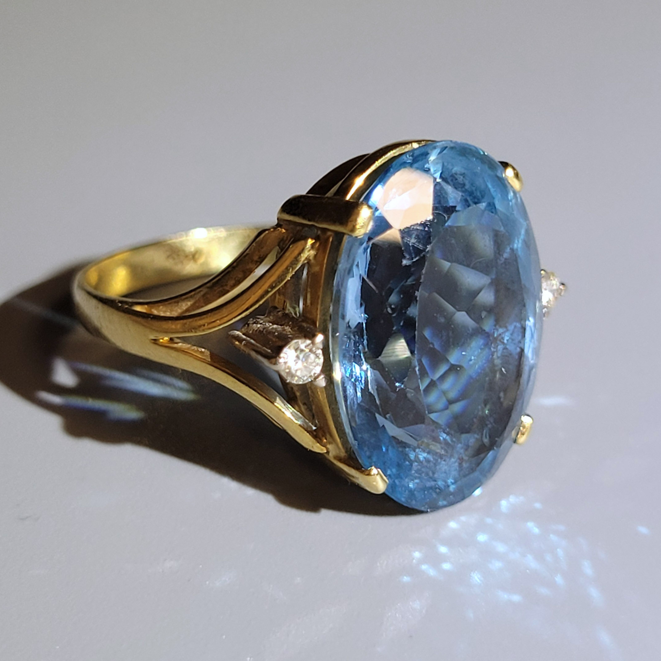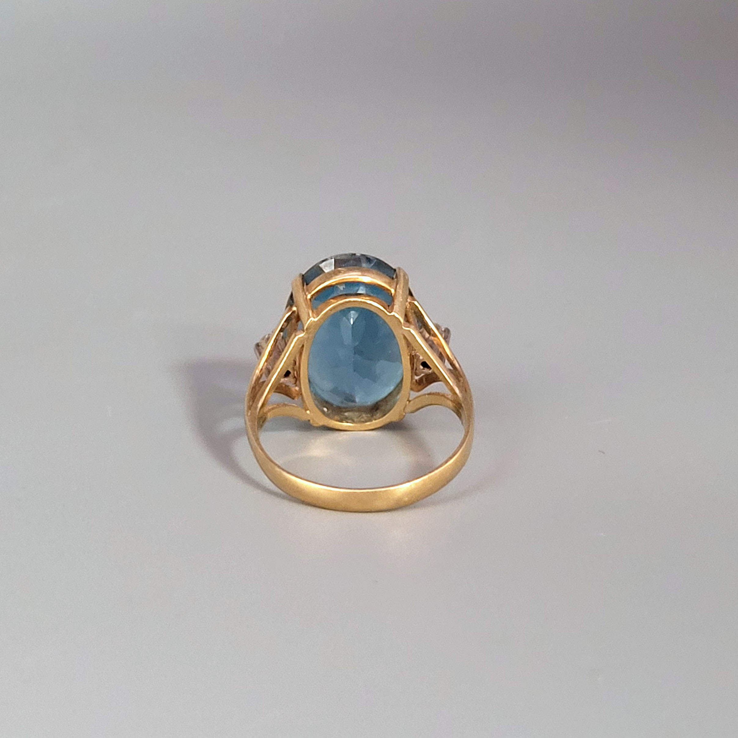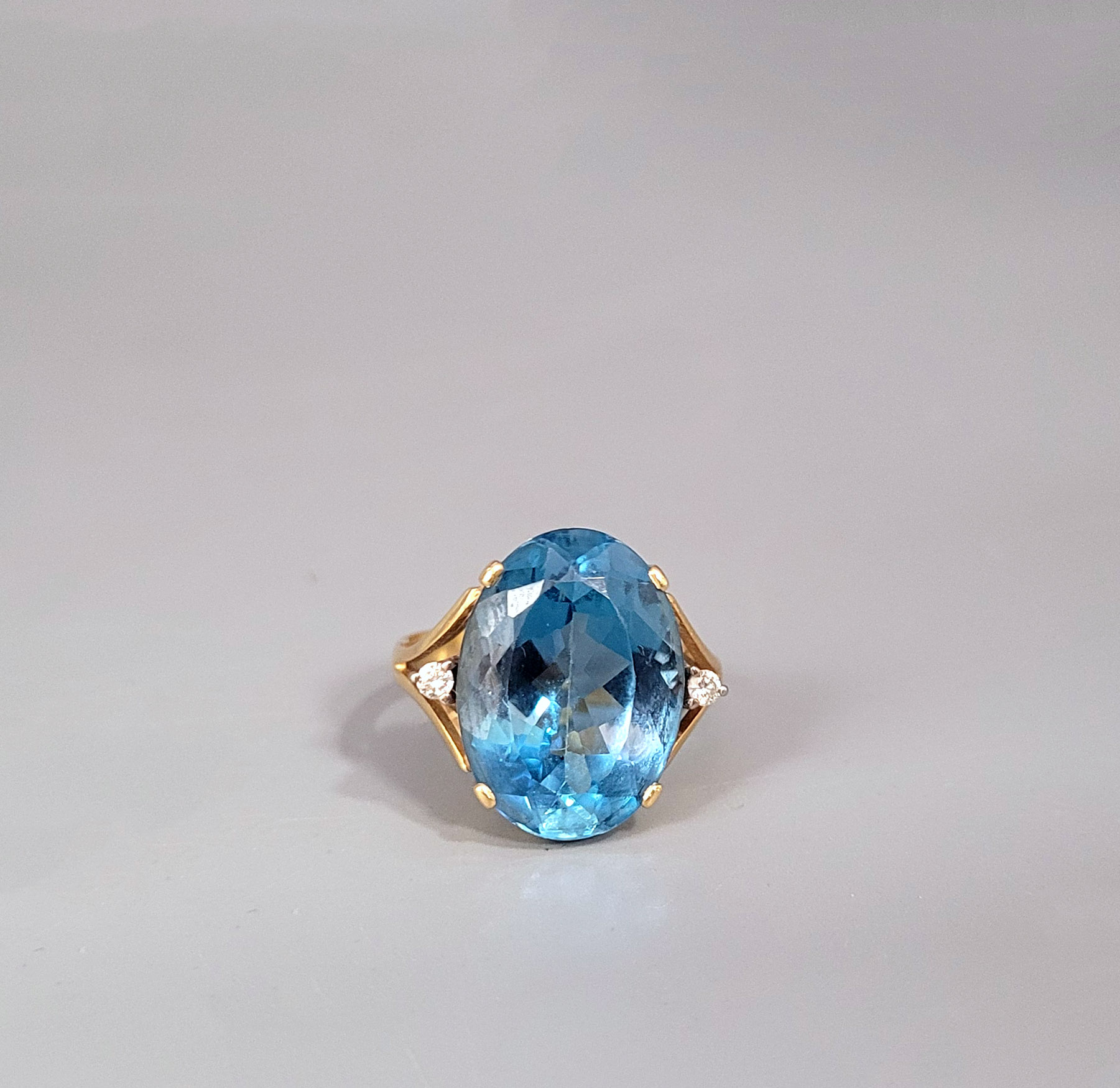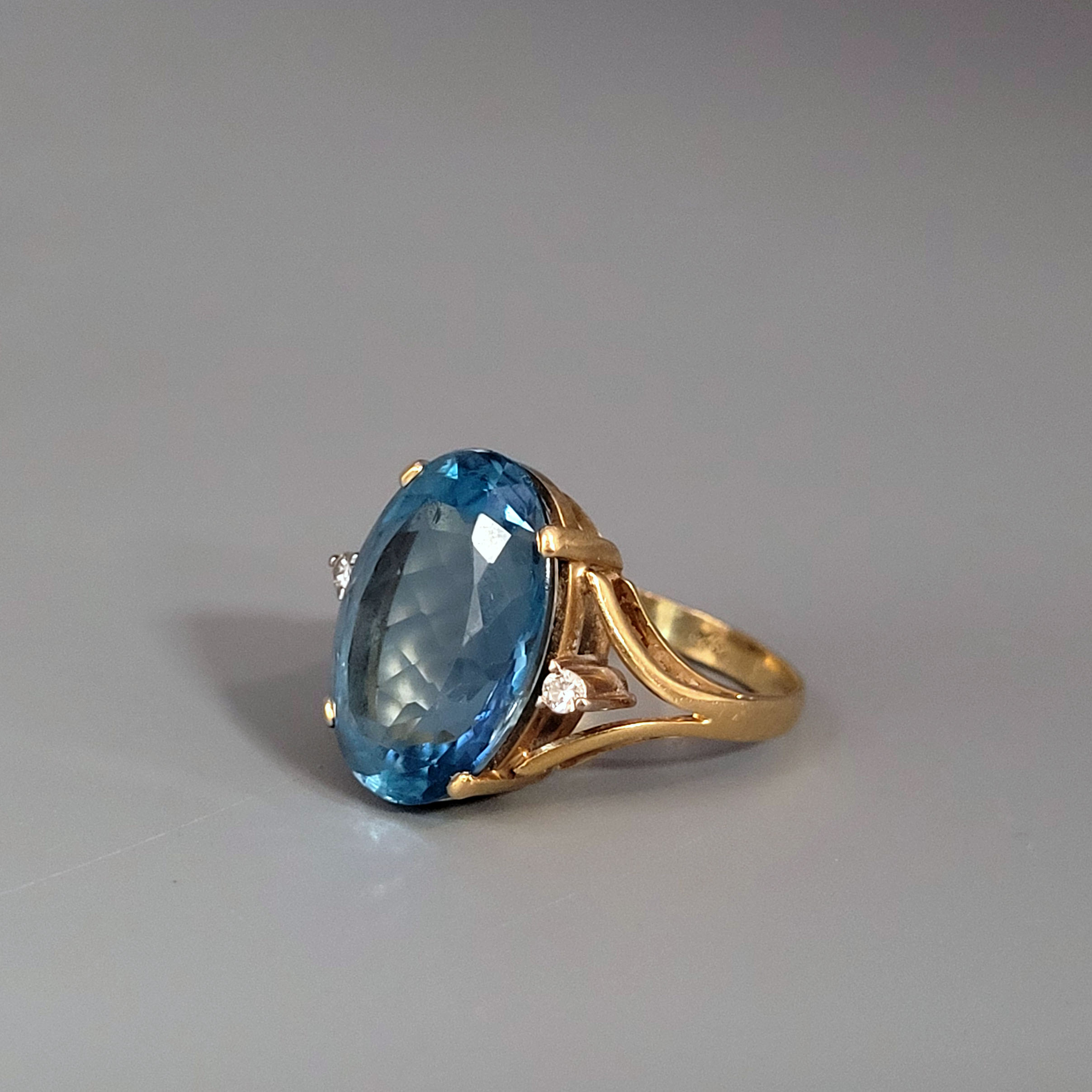 750er Gelb- und Weißgold, Topas (minimal bestoßen), zwei kleine Brillanten, Ringgröße 57, Gewicht ca. 7g