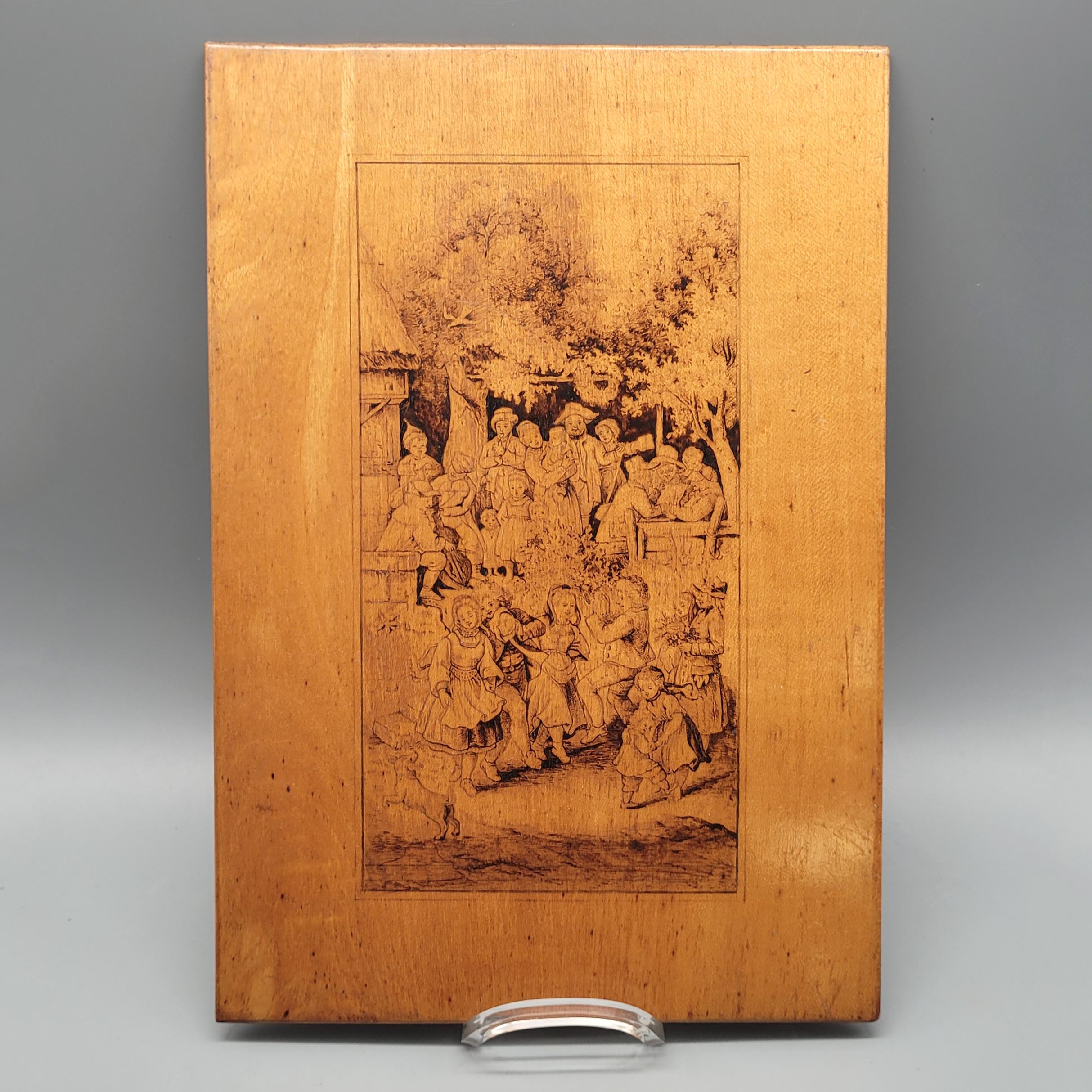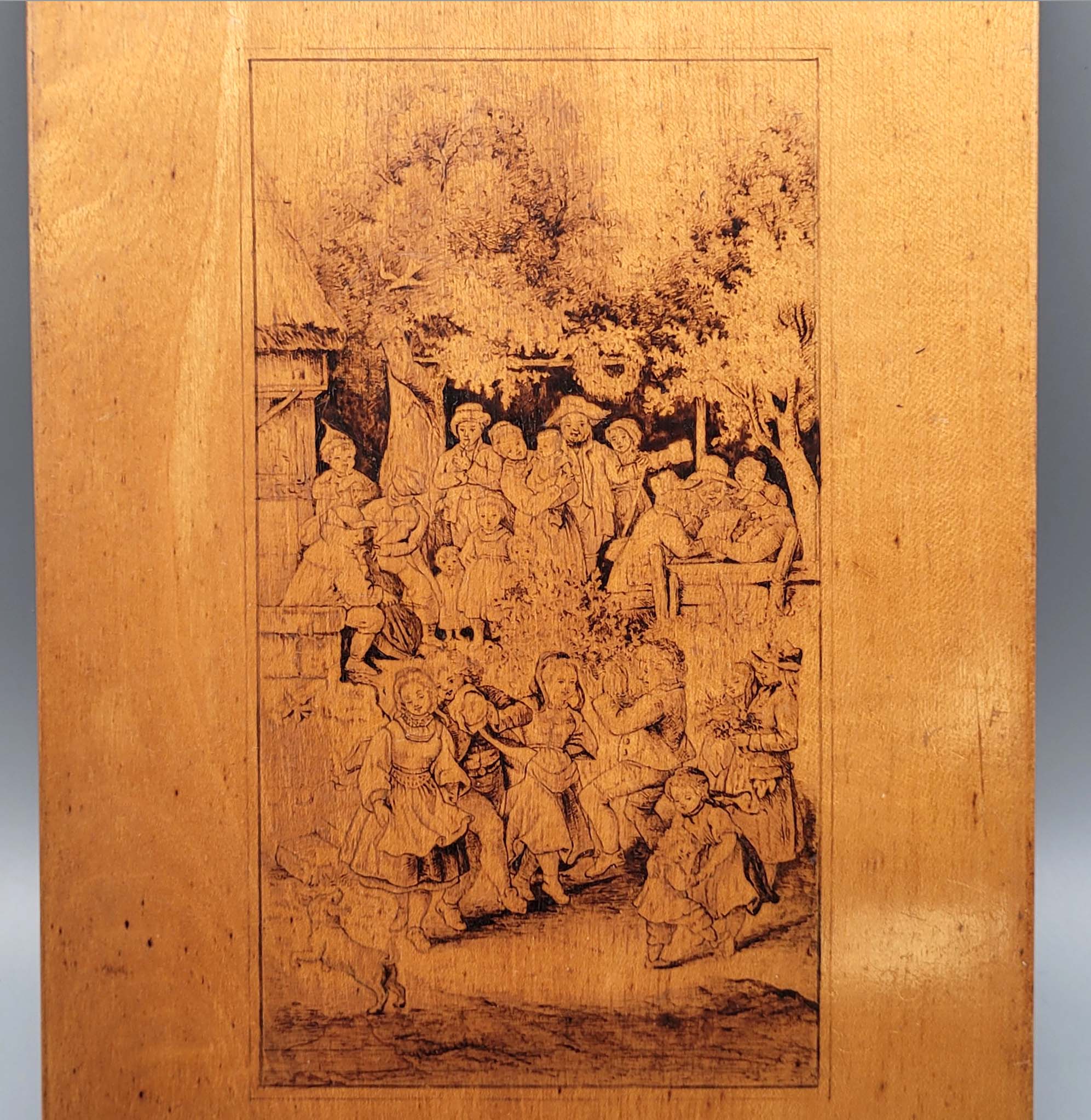 DEUTSCHER MEISTER (19. Jh.): MaifestSepia auf dünner Obstholzplatte, 26,5 x 18,5 cm (die sehr fein ausgeführte Platte erinnert stilistisch stark an das zeichnerische Werk von Adrian Ludwig Richter [1803-1884])