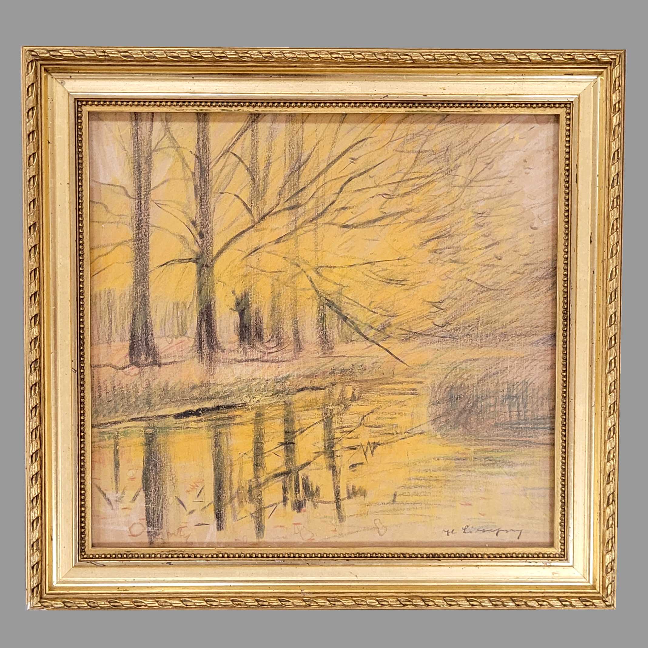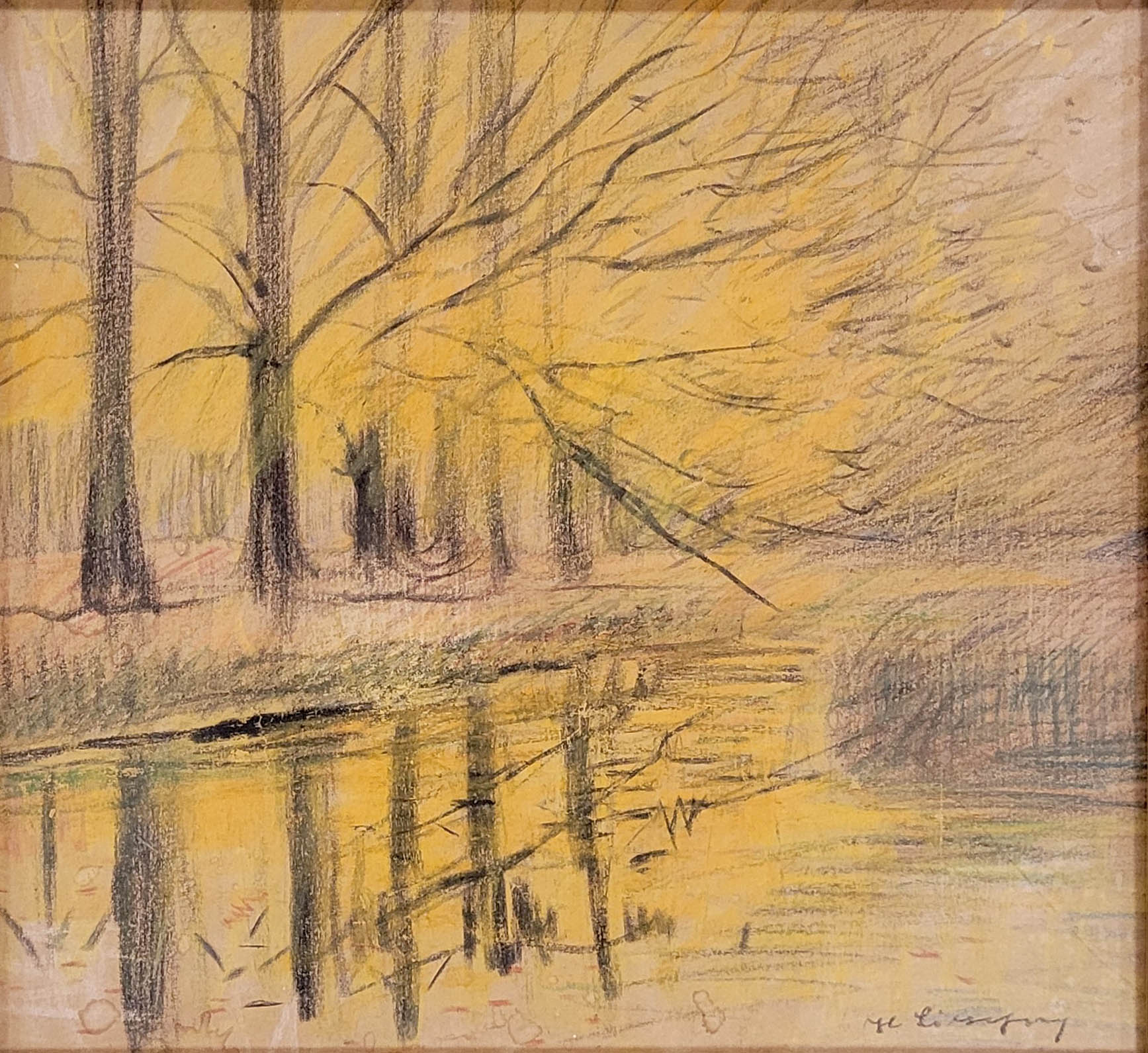 LIESEGANG, Helmut (1858-1945): Bachlauf im HerbstFarbkreide auf Papier, signiert unten rechts, 27,5 x 30 cm, gerahmt unter Glas (kleine Feuchtigkeitsflecken unten)