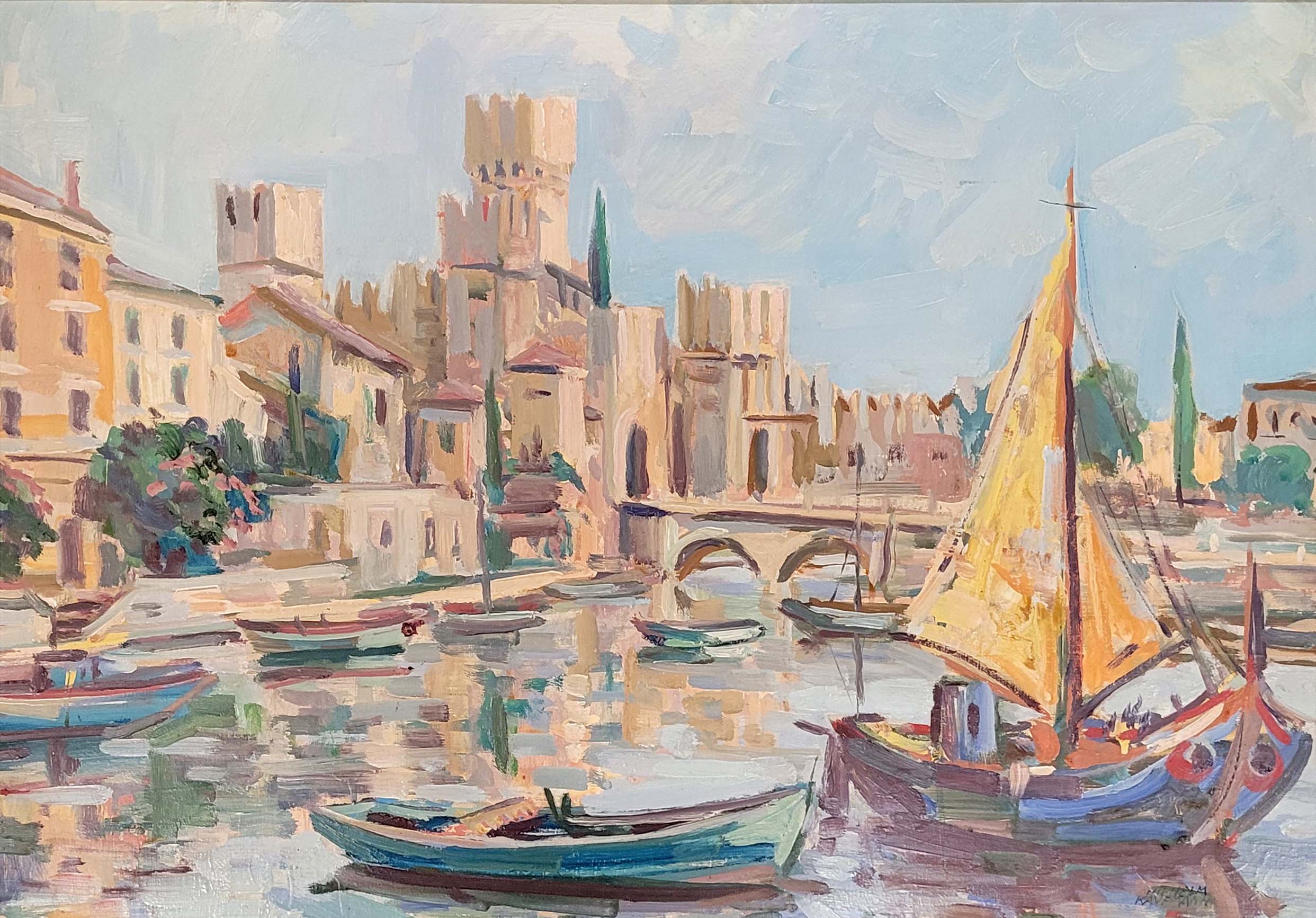 KAUFMANN, Wilhelm (1895-1975): Sirmione am GardaseeÖl auf Malplatte, signiert unten rechts, 48 x 68 cm, Rahmen