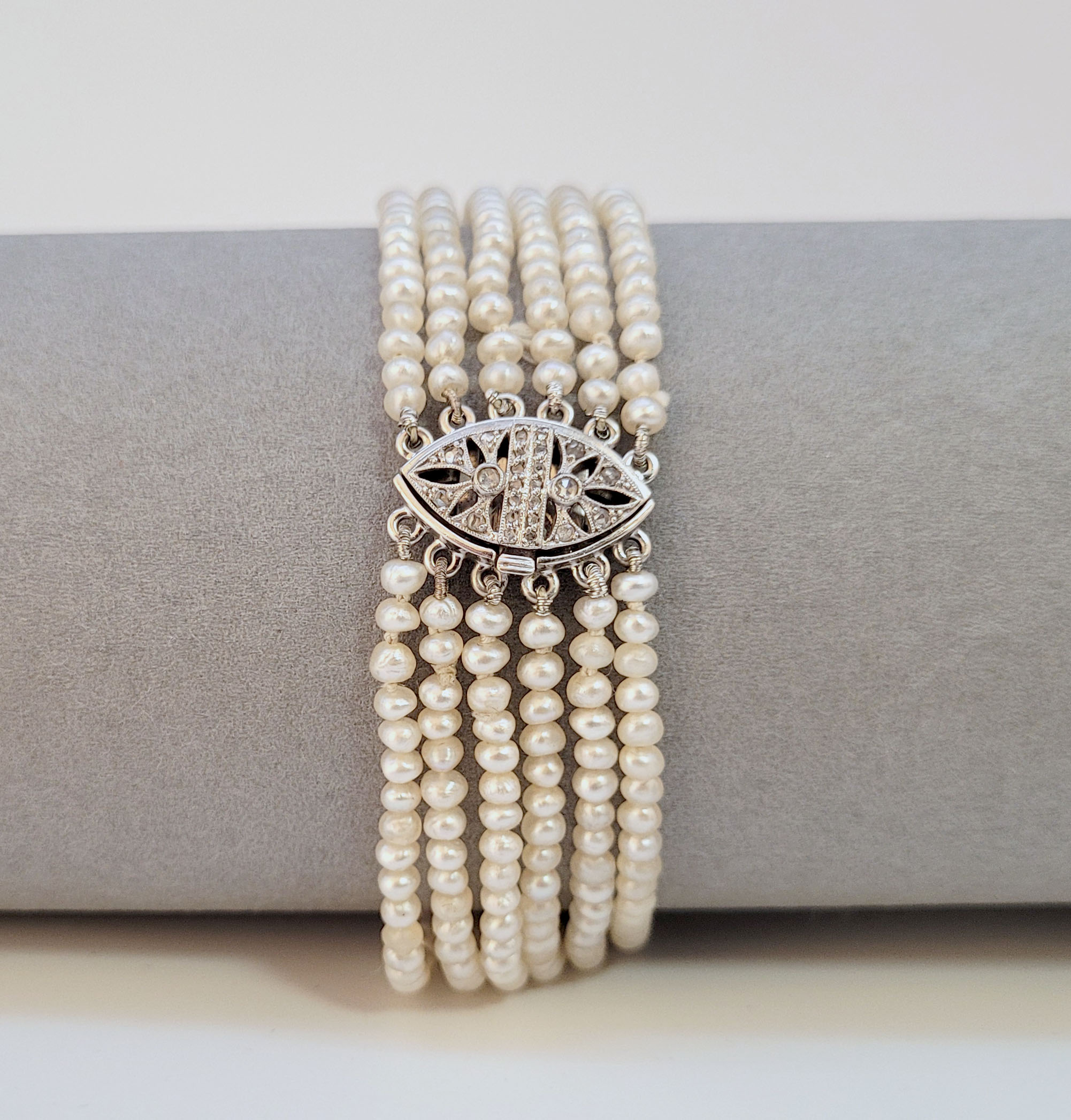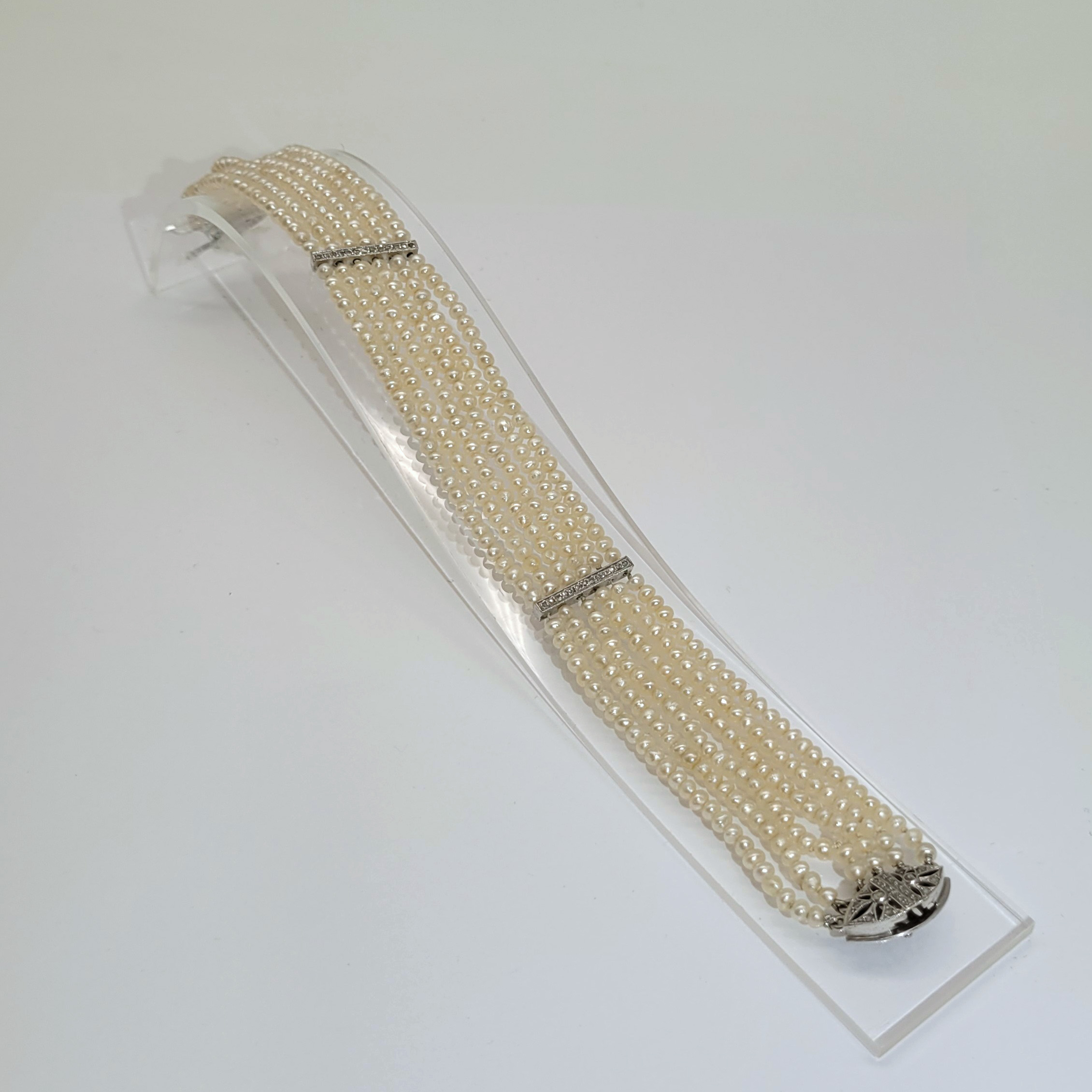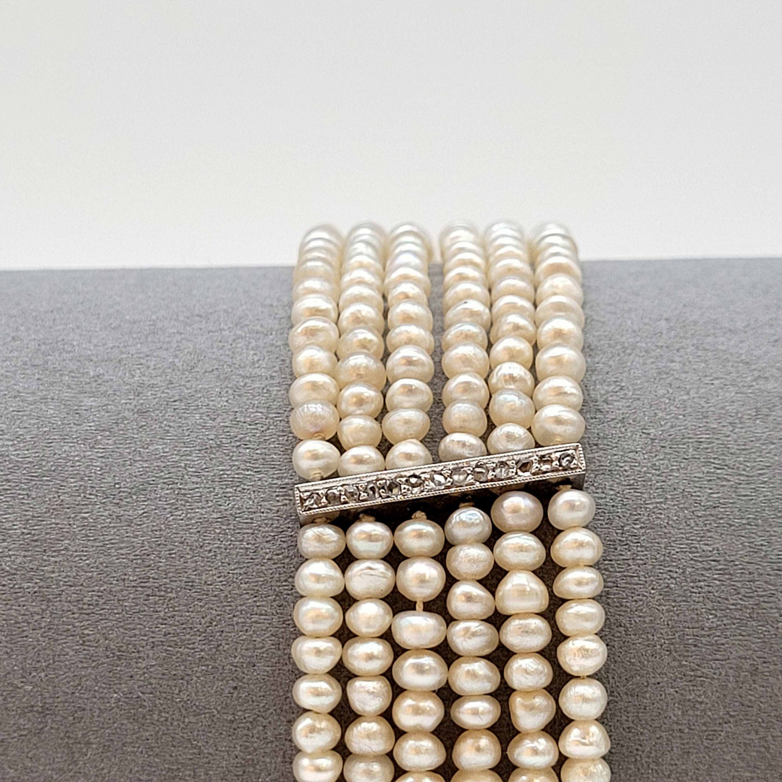ArmbandFlussperlen, 333er Weißgoldverschluss mit Altschliffdiamanten, Länge 22 cm