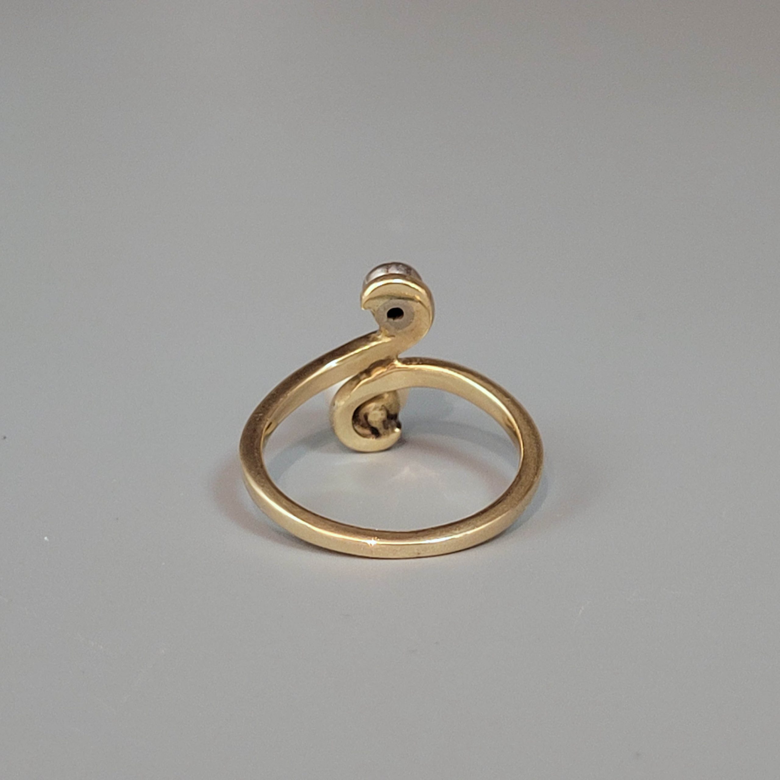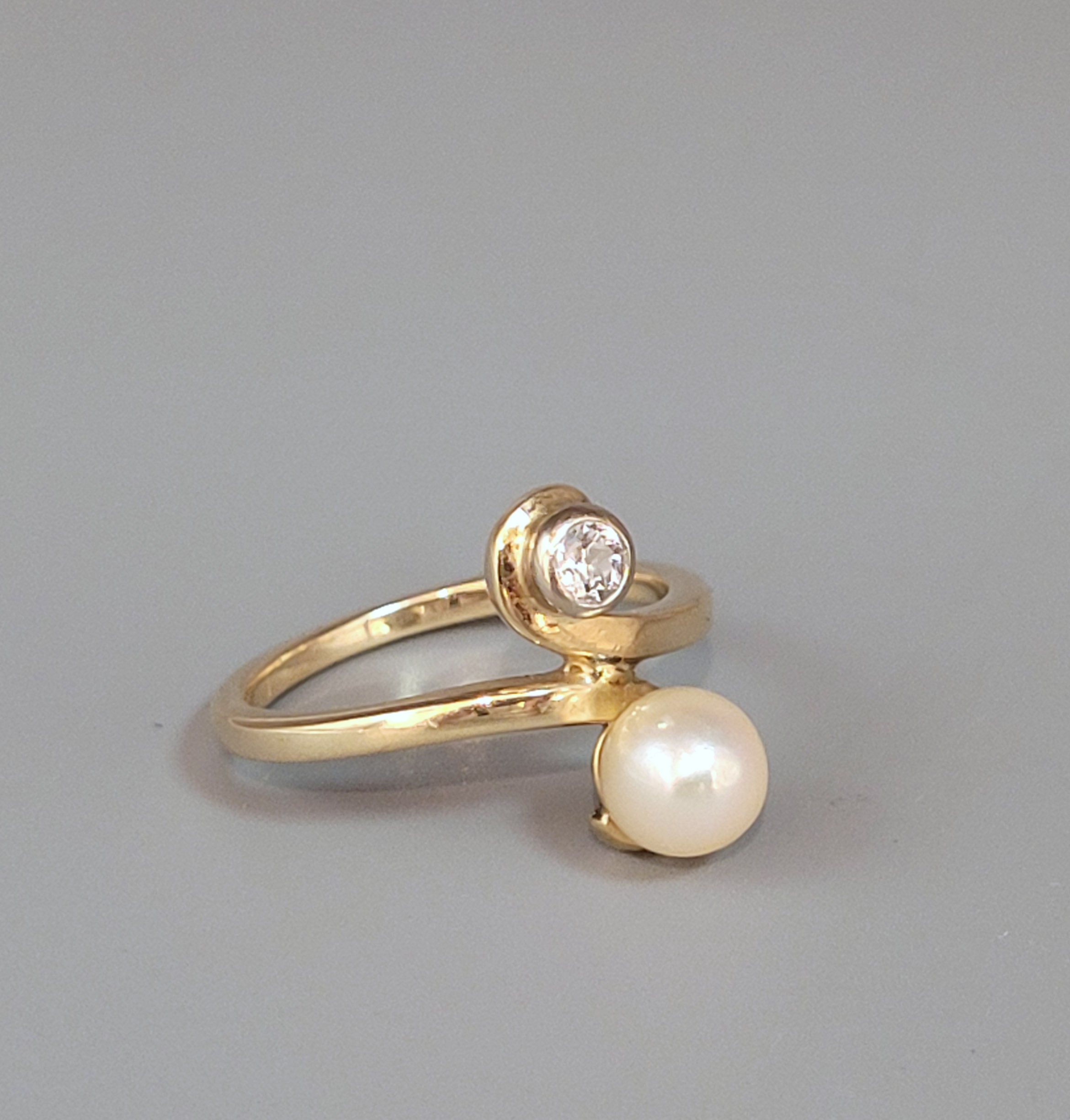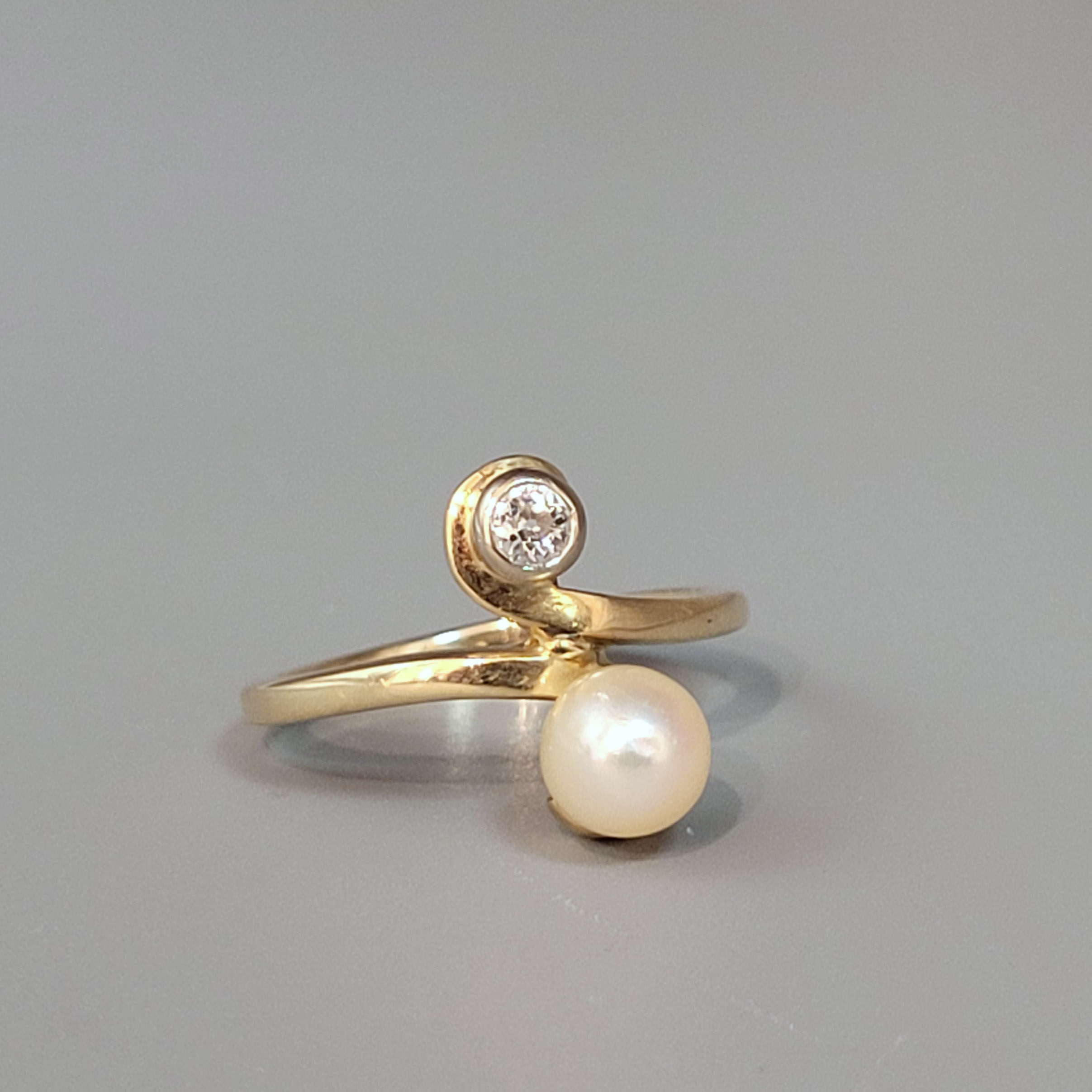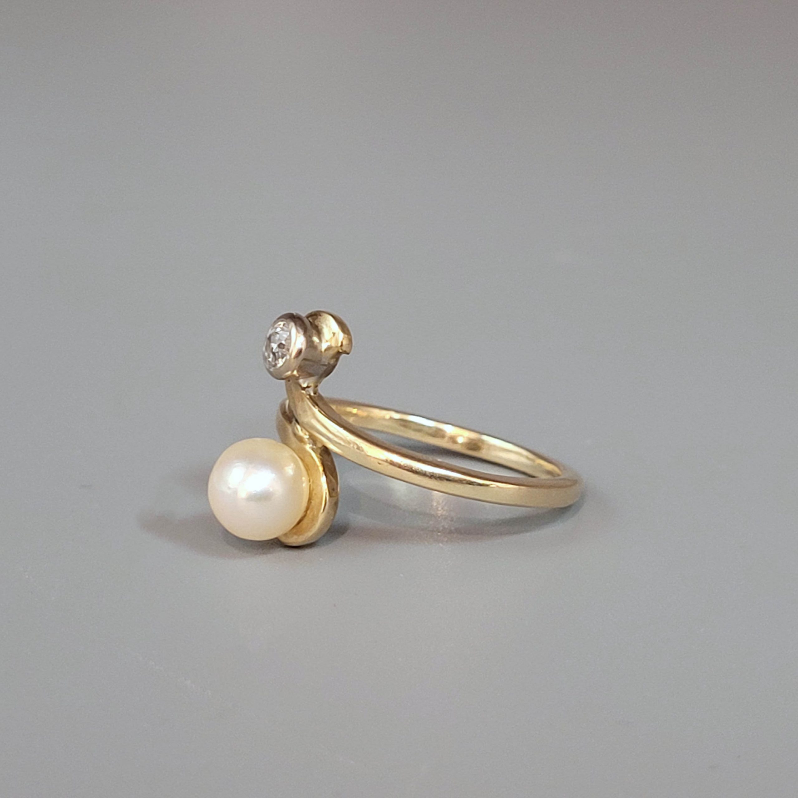 585er Gelbgold, Altschliffdiamant (ca. 0,10 ct), Zuchtperle, Ringgröße 55, Gewicht ca. 4g