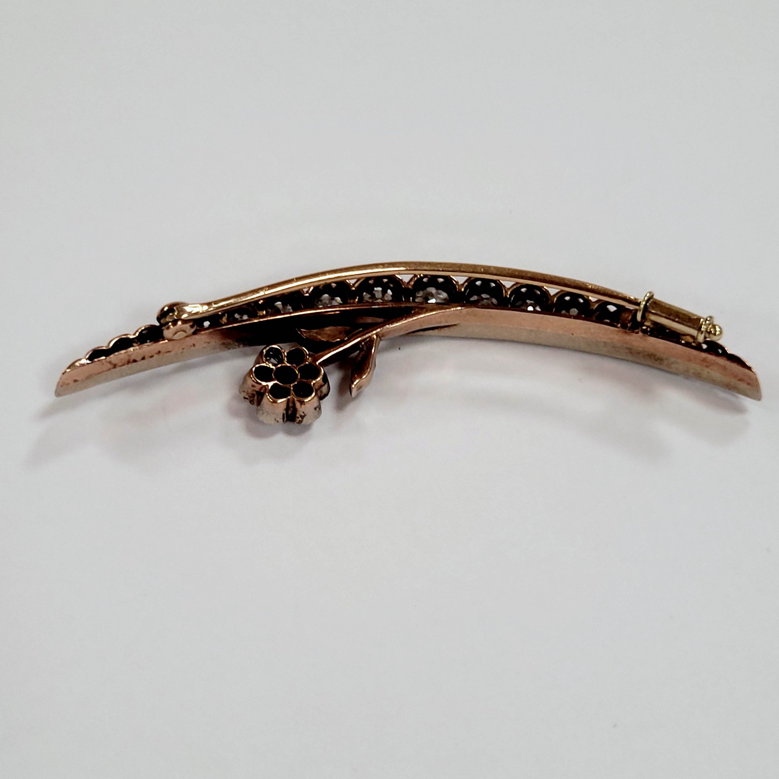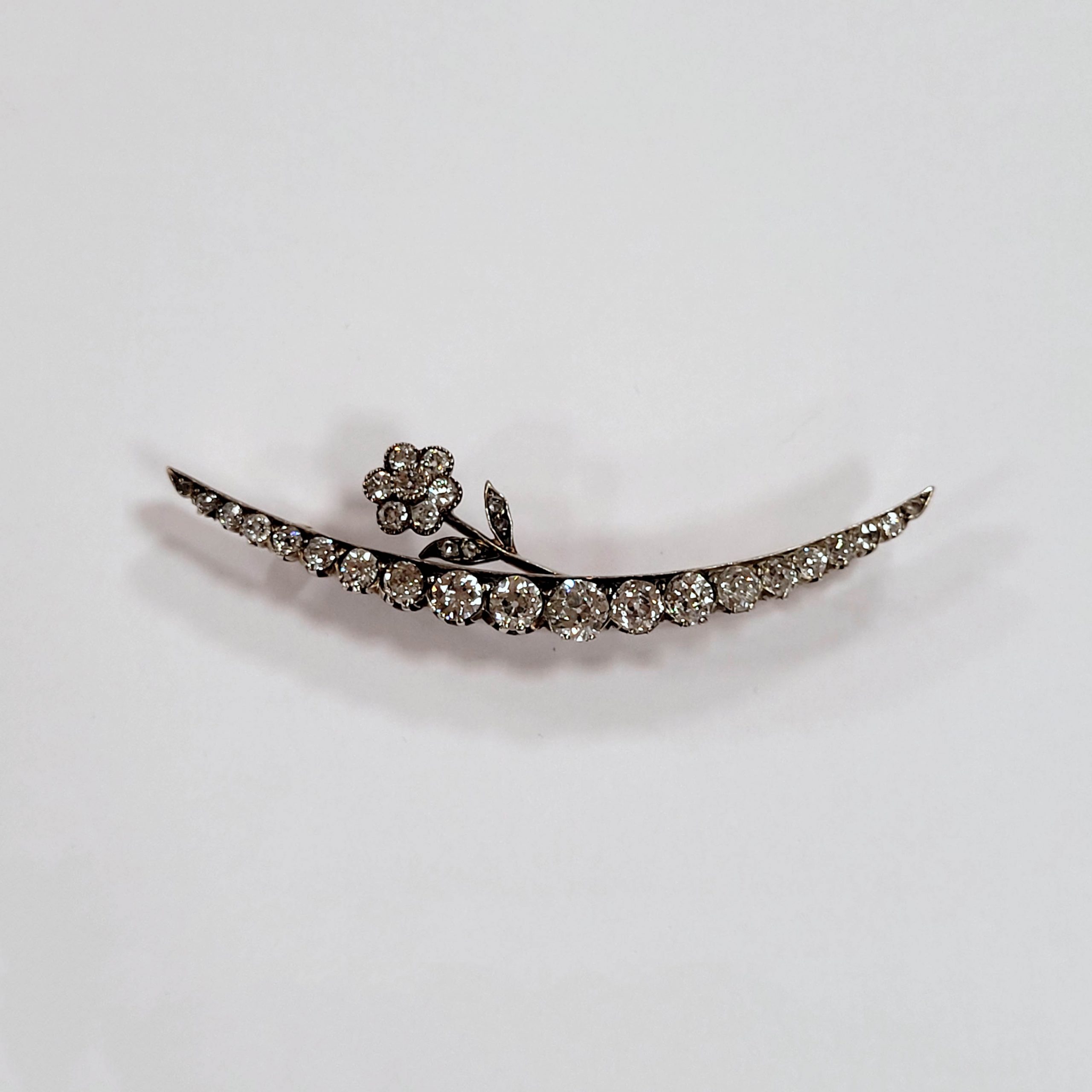 Brosche585er Bicolor-Gold, Silber, reicher Diamantbesatz (ca. 1ct), Länge 6 cm, Gewicht 6g