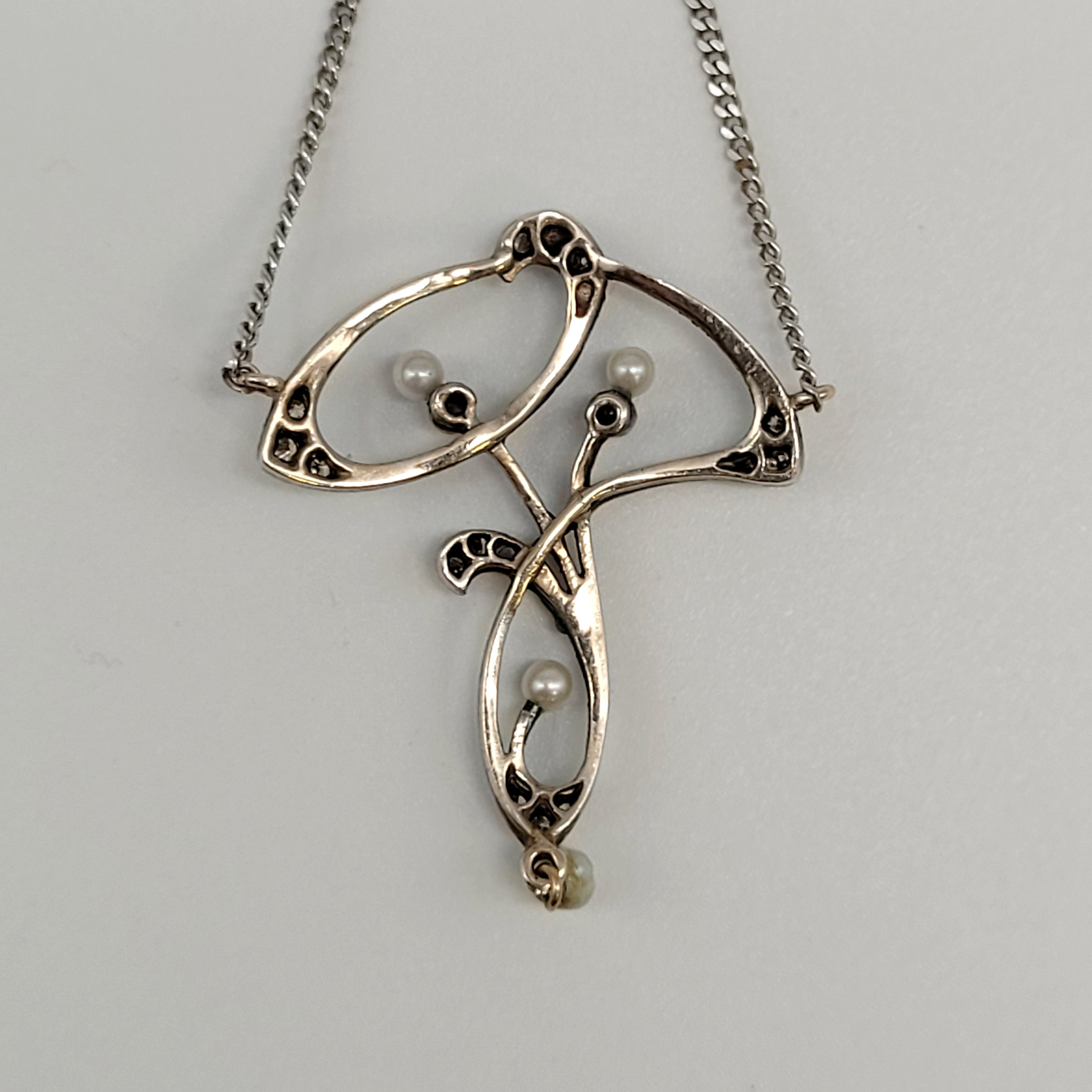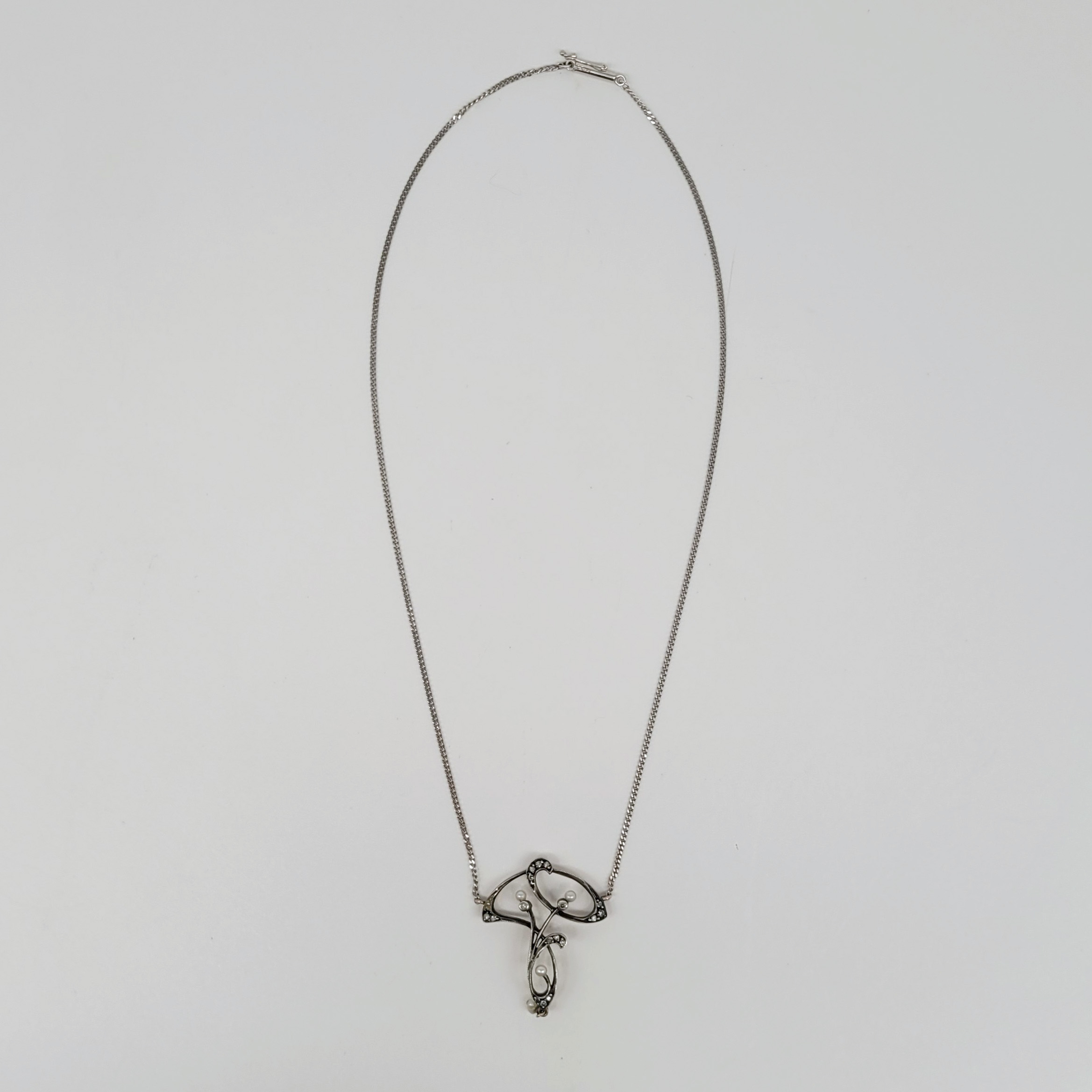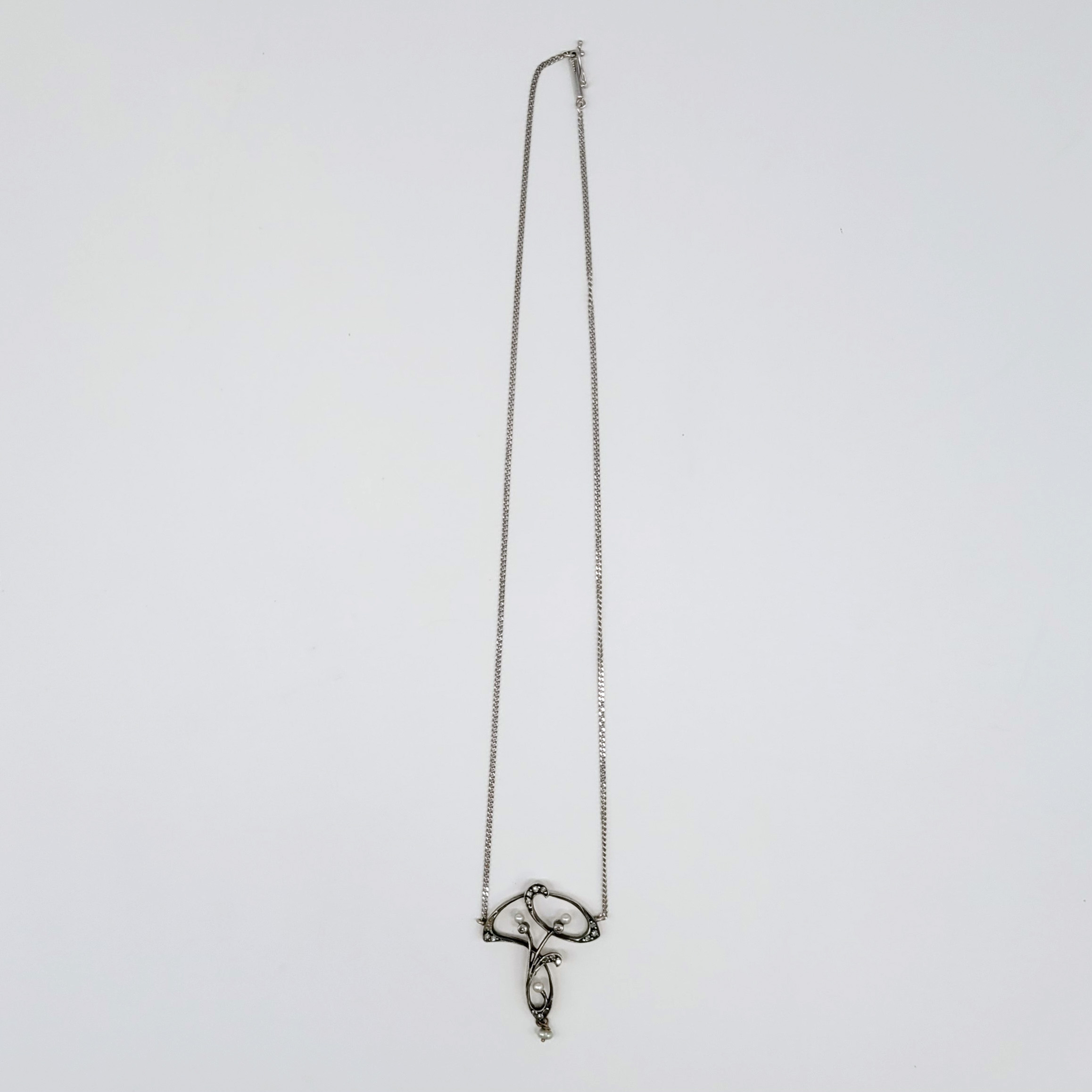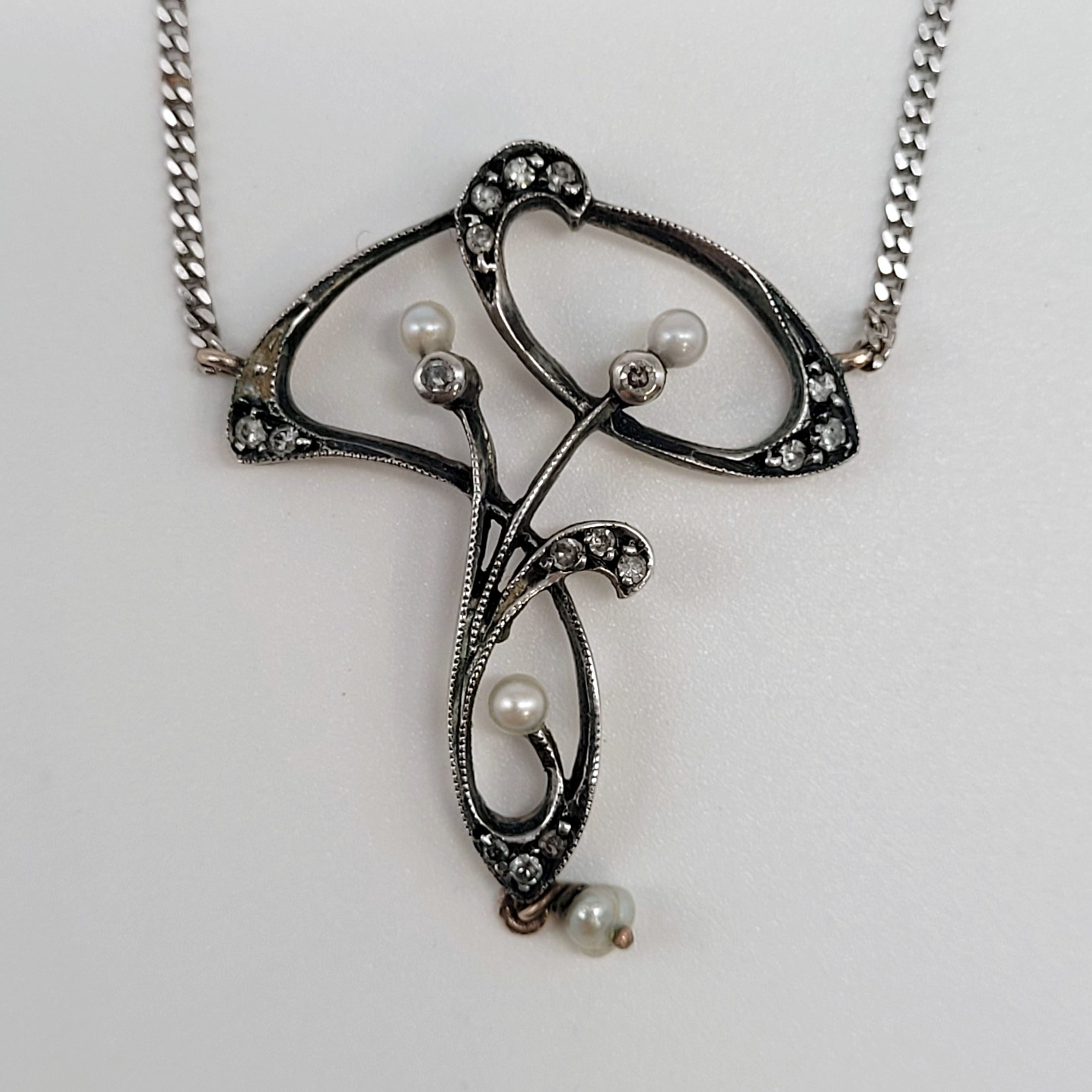 CollierGelbgold, Silber, Saatperlen, kleine Diamanten, Kette 585er Weißgold, Länge Kette 39 cm, Gewicht 5g